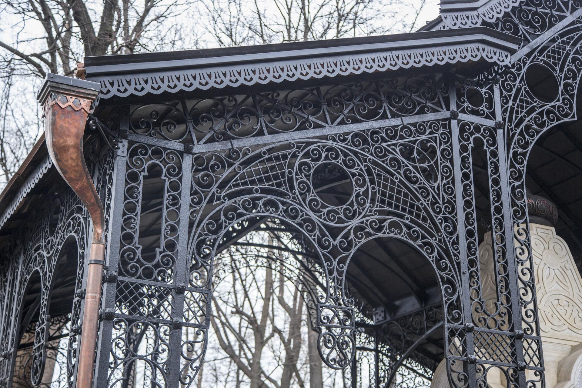 Особое внимание уделялось ажурной металлической сени над захоронением, созданной Ф.О. Шехтелем. Металлические элементы были разобраны, очищены от ржавчины и загрязнений. Гранитные цоколи и декоративные детали мемориала также были тщательно очищены и восстановлены, с восполнением утраченных элементов. Мемориальные надписи были заново позолочены, а швы между каменными блоками — герметизированы.