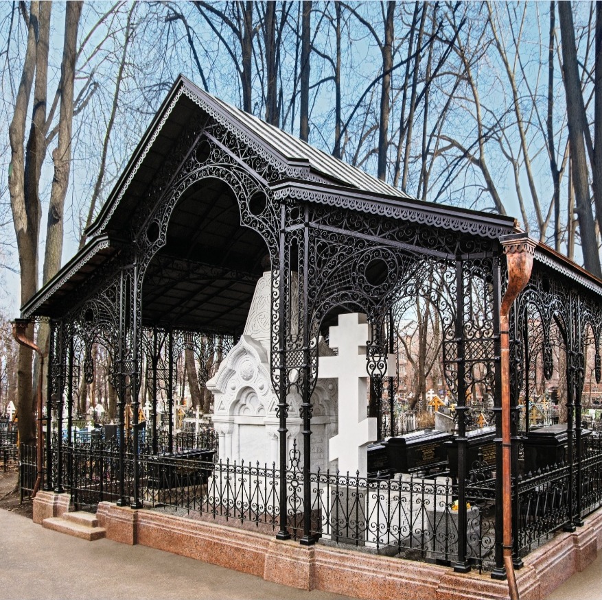 Могилы Морозовых — это настоящие архитектурные шедевры, выполненные из чёрного габбро и белого мрамора. Особенно выделяется мемориал Тимофея Саввича и Марии Федоровны Морозовых, созданный по проекту Фёдора Шехтеля. Это мраморный столб-часовня с элементами русско-византийского стиля, дополненный ажурной металлической сенью.