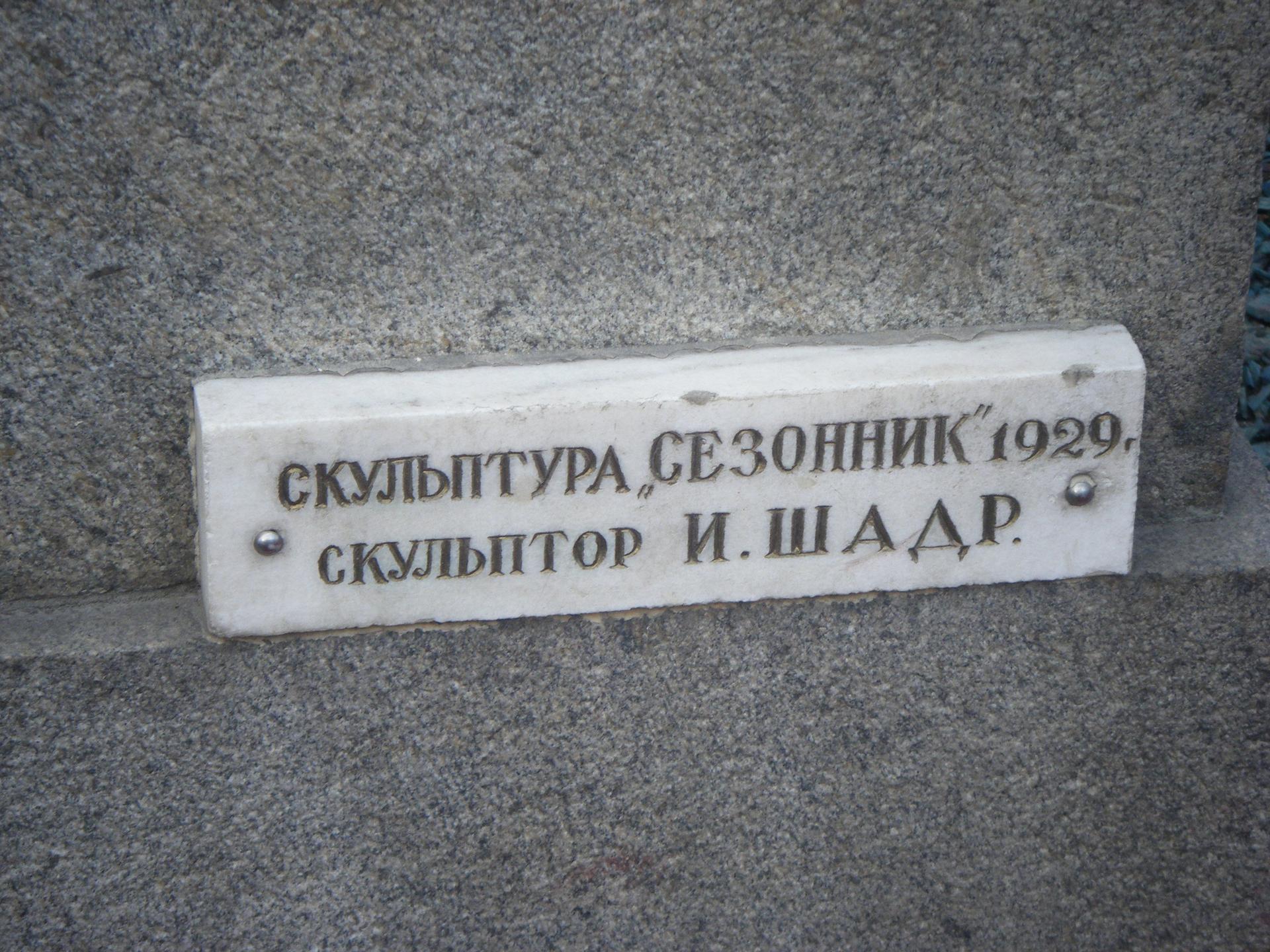 По преданию, моделью для “Сезонника” послужил настоящий сезонный рабочий, пришедший в Москву из деревни на зимние заработки. Он пришел сюда с сыном, но сын неожиданно умер, и именно это состояние сезонника отобразилось в изваянии. По другой же версии моделью послужил отец скульптора Шадра, сельский плотник.