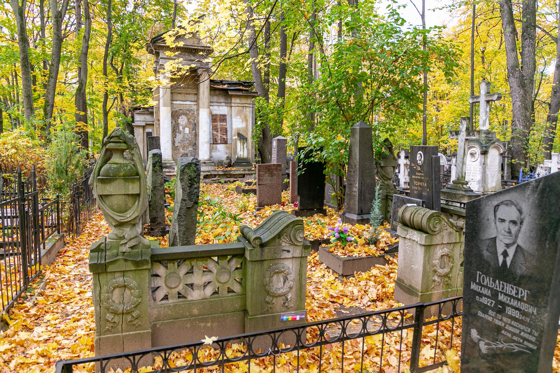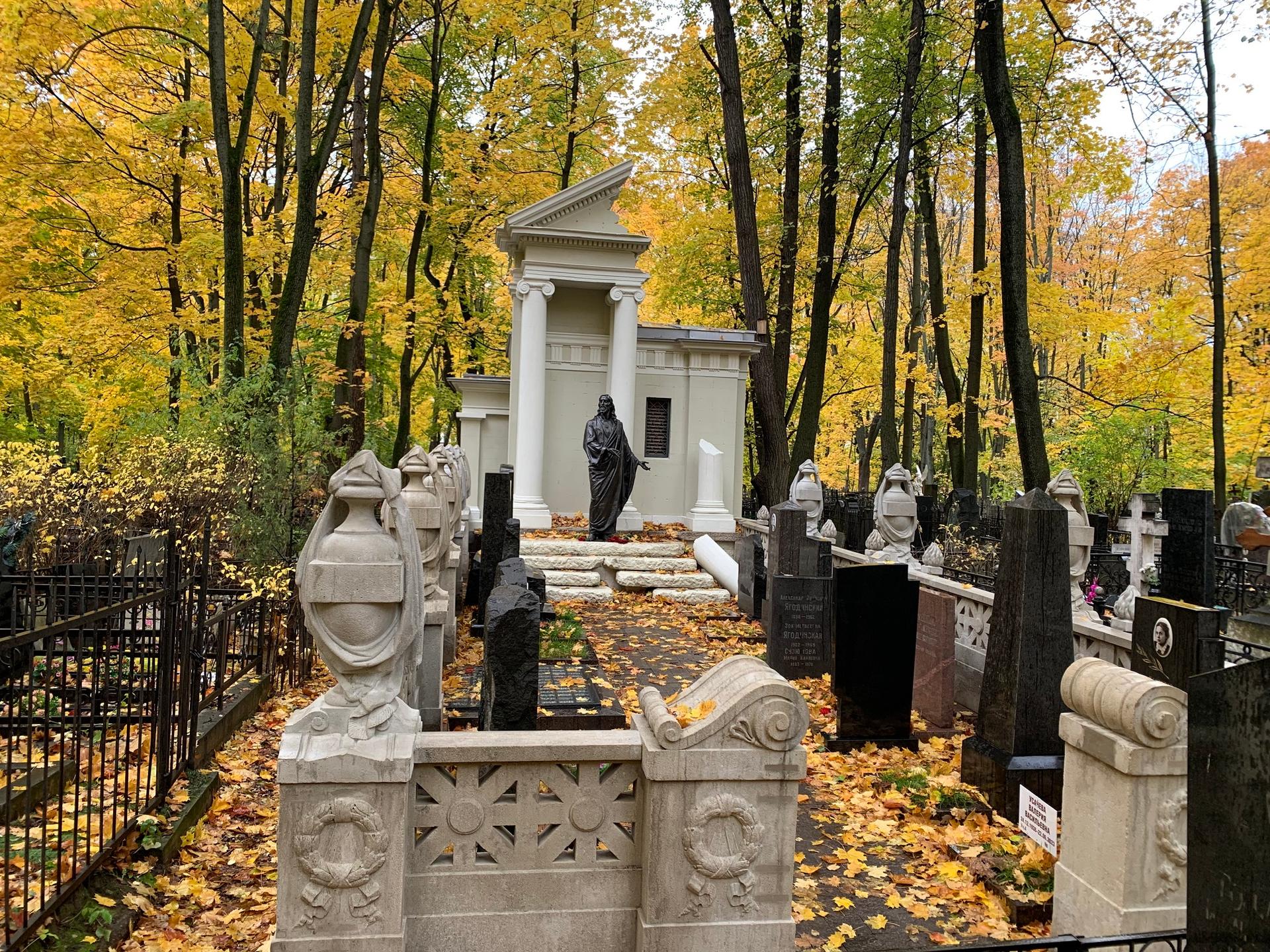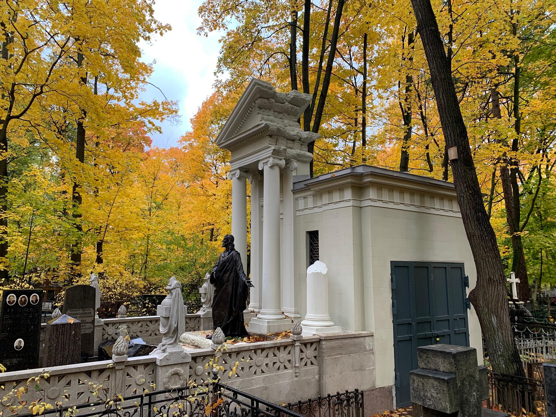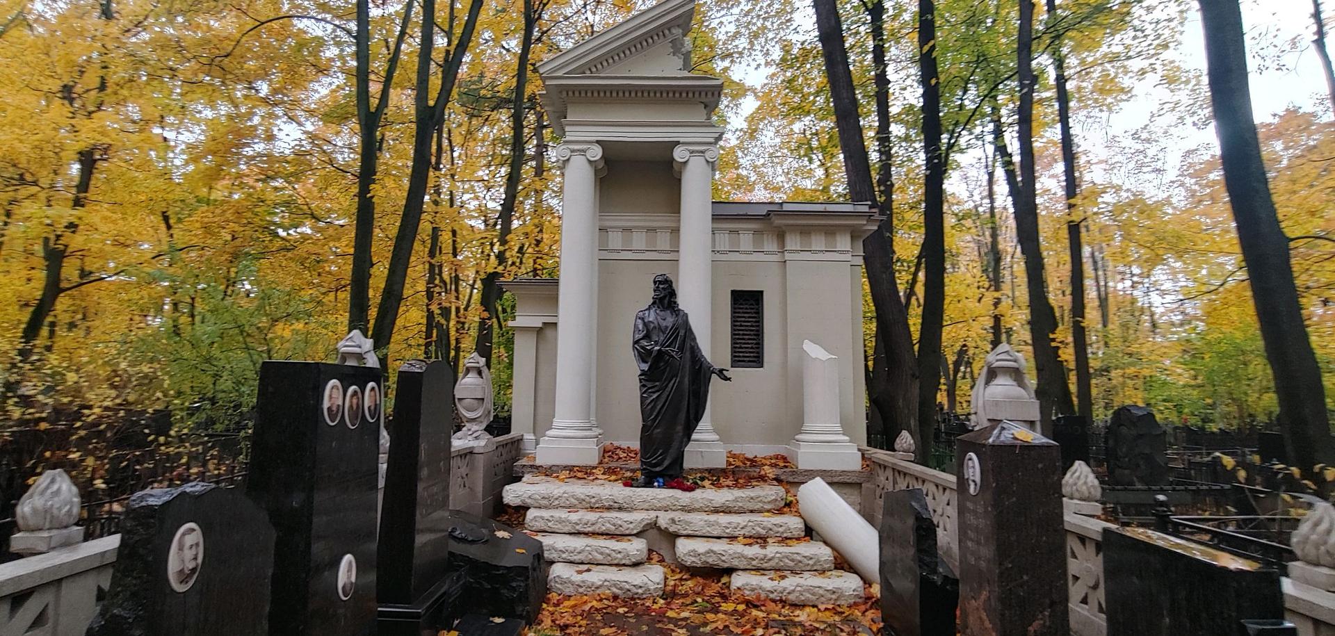 Семейный некрополь располагается на участке № 4 (303) кладбища. Автор проекта мемориального комплекса не установлен, однако известно, что некоторые архитектурные элементы были изготовлены в известной московской камнетесной мастерской Ивана Павлова, о чём свидетельствует клеймо на колонне здания.