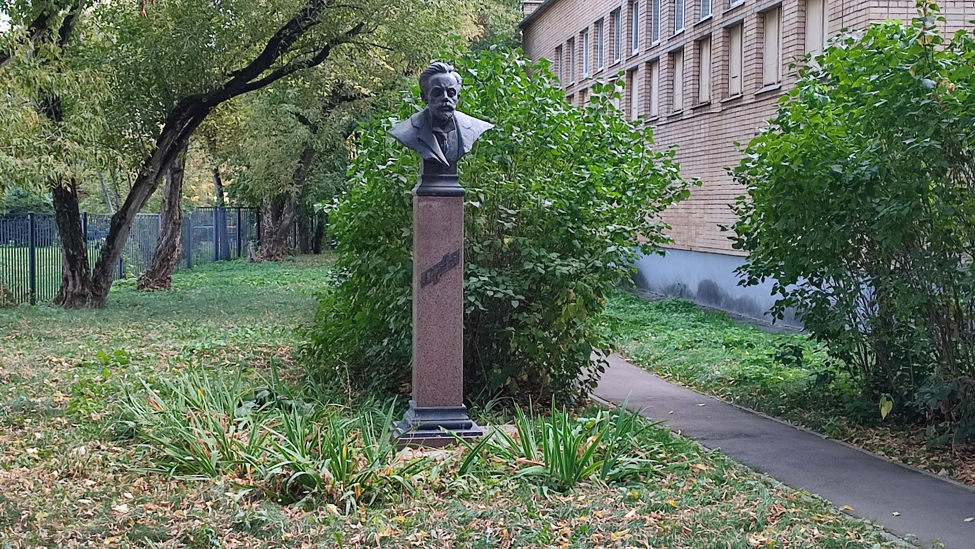 Погрудный бронзовый бюст А. Н. Скрябина установлен на постаменте из красного гранита. Музыкант изображен анфас, с портретным сходством. На лицевой стороне постамента расположен цельнолитой бронзовый нотный стан, на котором выпуклыми буквами выполнена посвятительная надпись: «А. Скрябинъ».