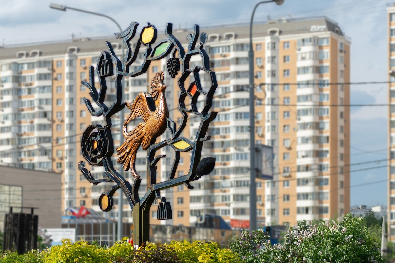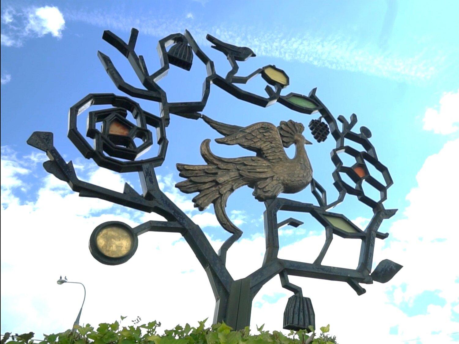 Скульптура располагается на пересечении улиц Хачатуряна и Декабристов и изображает жар-птицу, сидящую на райском дереве. Сказочная пернатая из славянского фольклора является символом района Отрадное – она украшает также флаг и герб района. На райском дереве скульптуры можно увидеть цветы, ягоды, а также золотое (оно же «молодильное») яблоко – их, согласно сюжетам нескольких сказок, жар-птица по ночам воровала из царского сада. Птица, как в сказках, так и в составе скульптурной композиции, имеет золотой окрас. Это связано с тем, что жар-птица в славянской мифологии считалась существом из другого мира, из «тридевятого царства», где царило изобилие. По поверьям, она является предвестником удачи и счастья, приносит людям отраду, что и объясняет ее выбор в качестве символа района Отрадное.