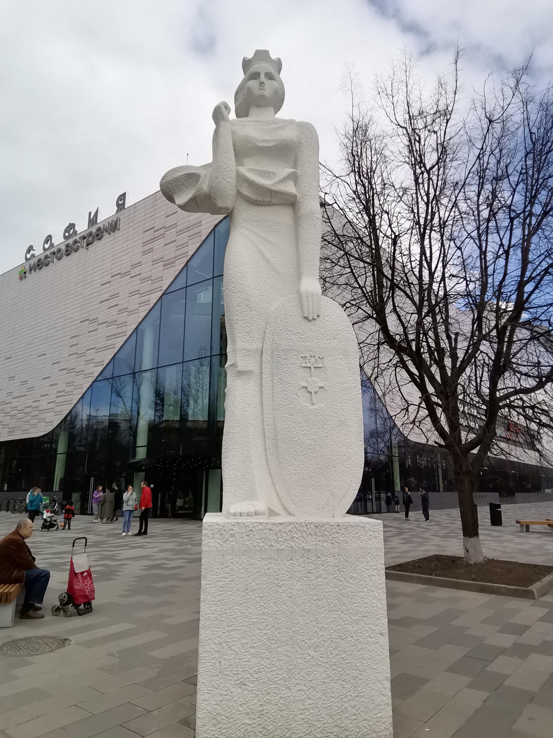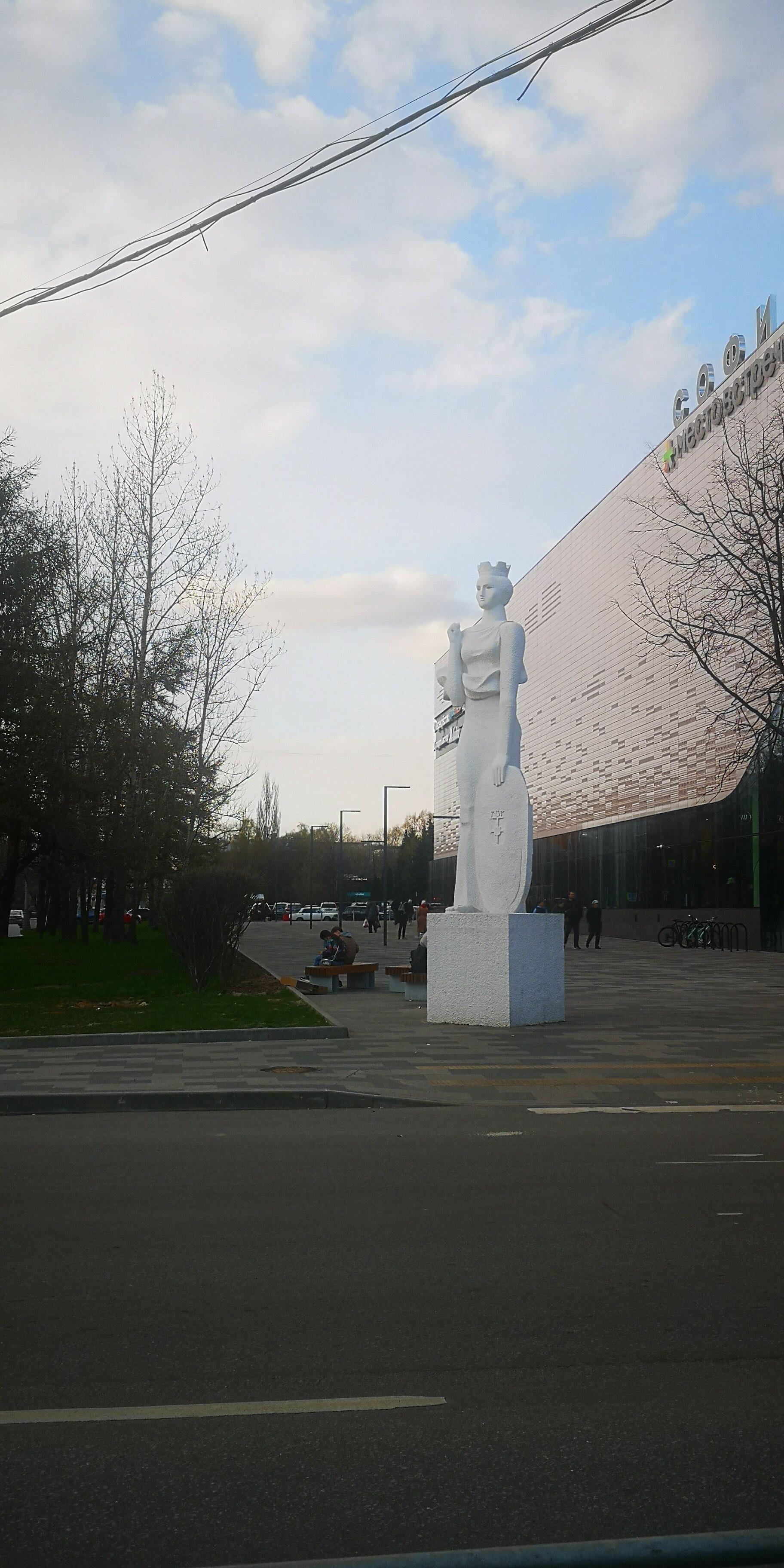 Скульптура является аллегорическим изображением покровительницы болгарской столицы Софии — святой Софии, а также олицетворением дружбы русского и болгарского народов. Представляет собой женскую фигуру с развевающимися драпировками, с короной на голове, держащую щит у ног. Объект выполнен из бетона и установлен на бетонном постаменте, окрашен белой краской. Памятник находится перед кинотеатром «София».