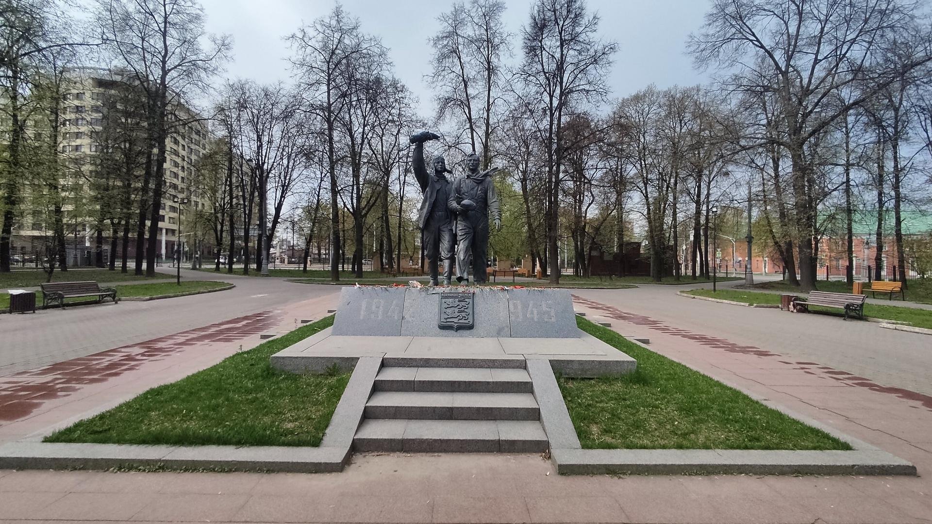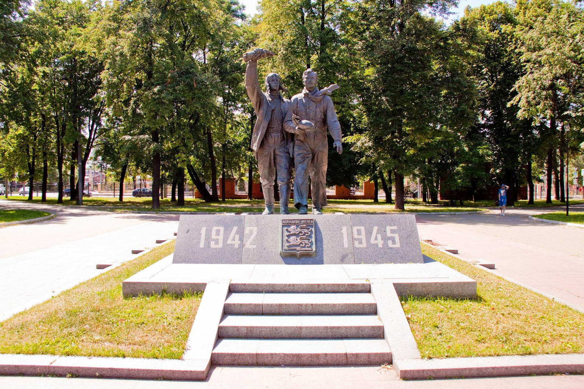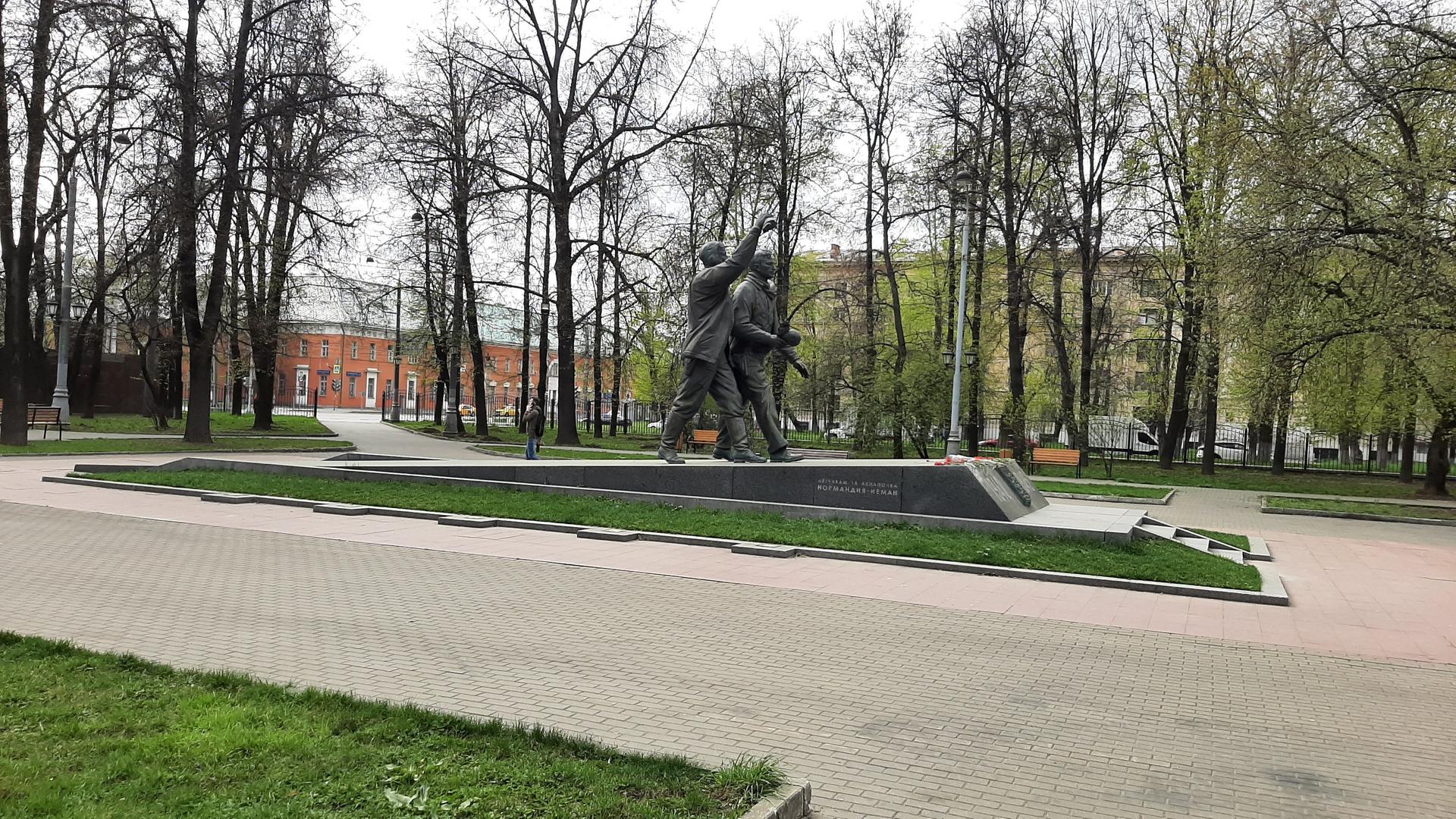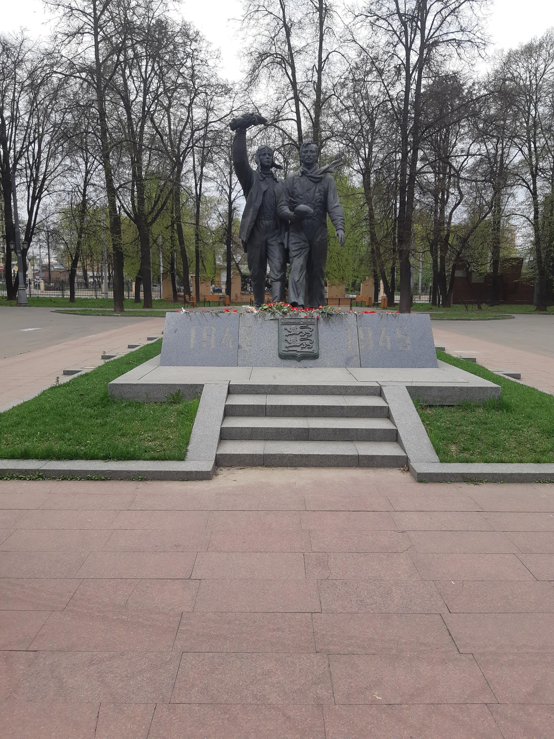 Скульптурная группа изображает идущих вместе французского летчика и советского авиамеханика. Летчик одет в летный комбинезон, на шее у него развевается шарф, авиамеханик в летном костюме. Постамент облицован серым полированным гранитом, на северо-восточном фасаде в центре расположен бронзовый опознавательный знак авиаполка, слева и справа от знака нанесены надписи методом неглубокой резки с шлифованным внутренним фоном: 1942-1945.