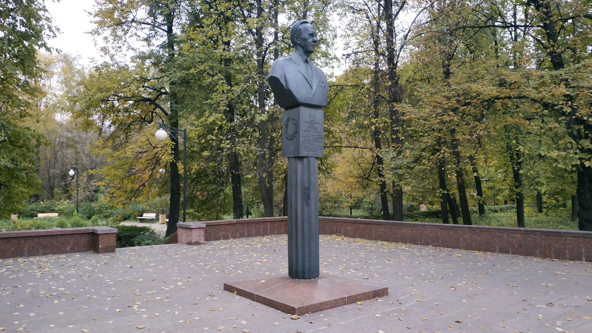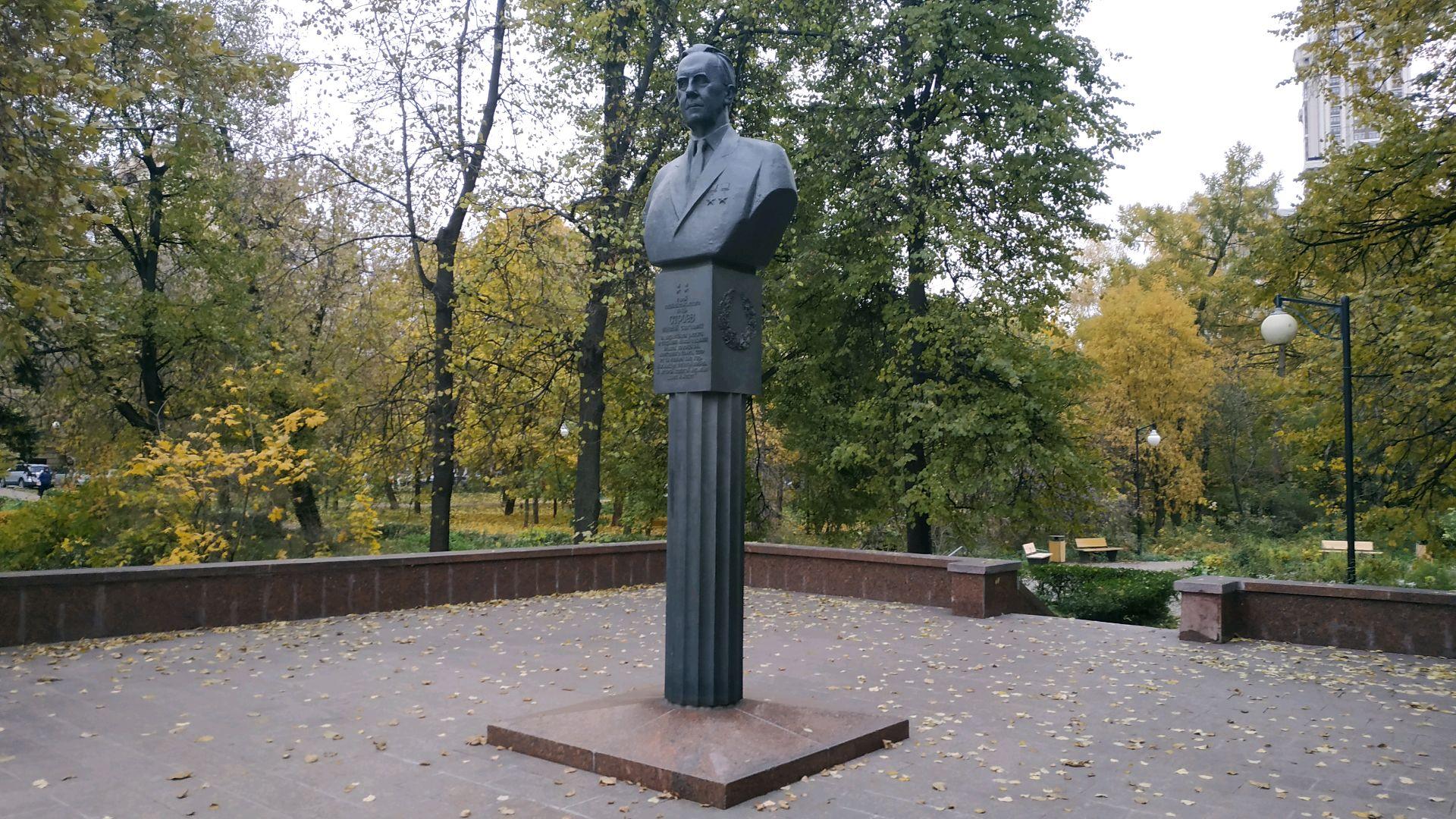 Памятник представляет собой бронзовый бюст Н. С. Строева на бронзовом постаменте — выполнен в виде каннелированной колонны, опирающейся на базу из красного полированного гранита. В верхней части постамента цельнолитая памятная надпись: «Герой Социалистического Труда Строев».