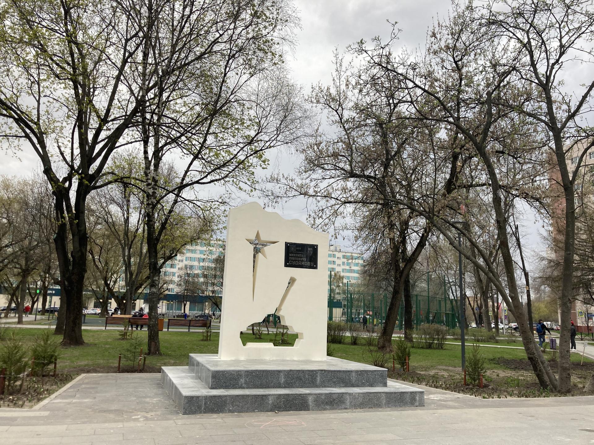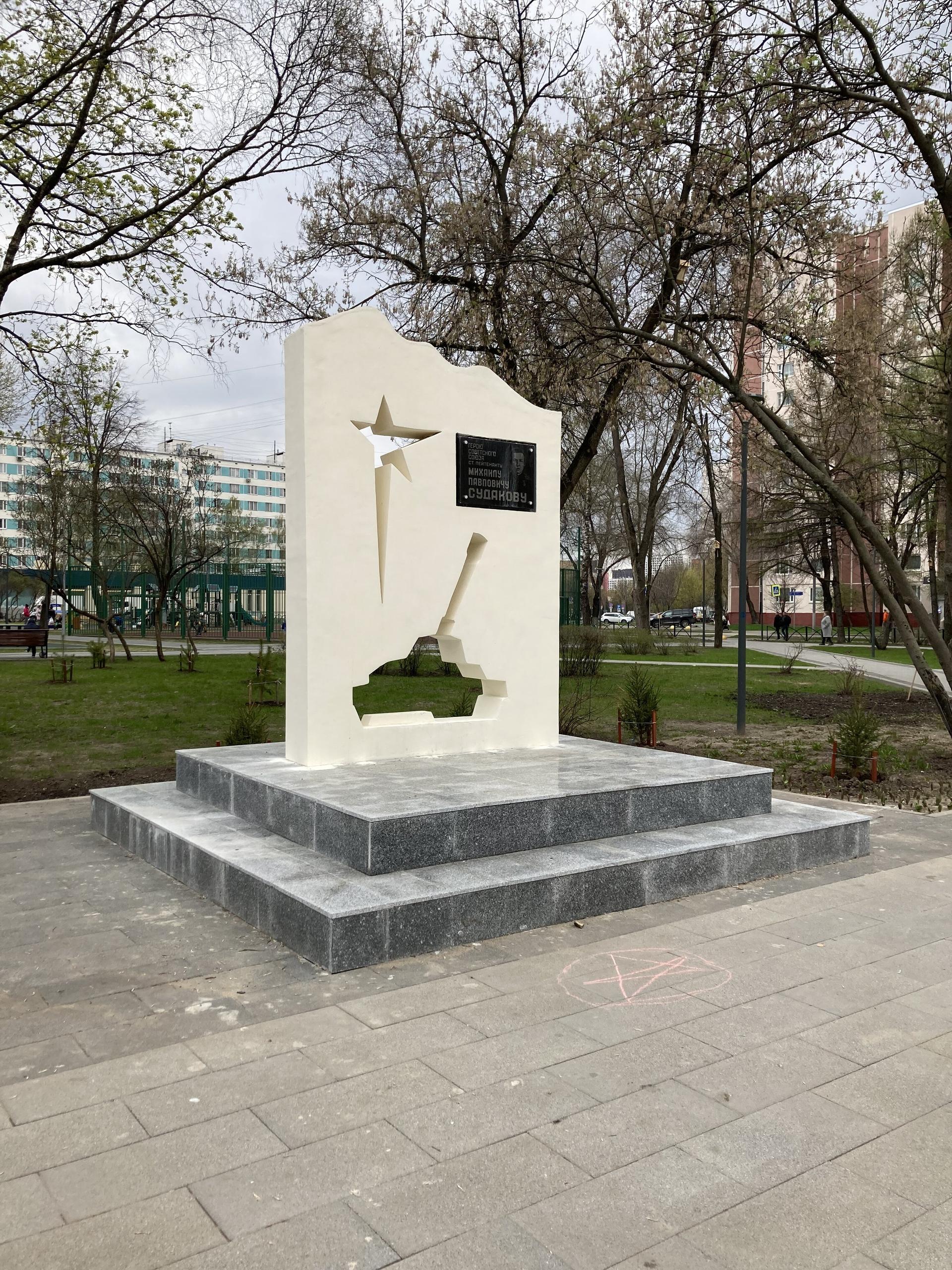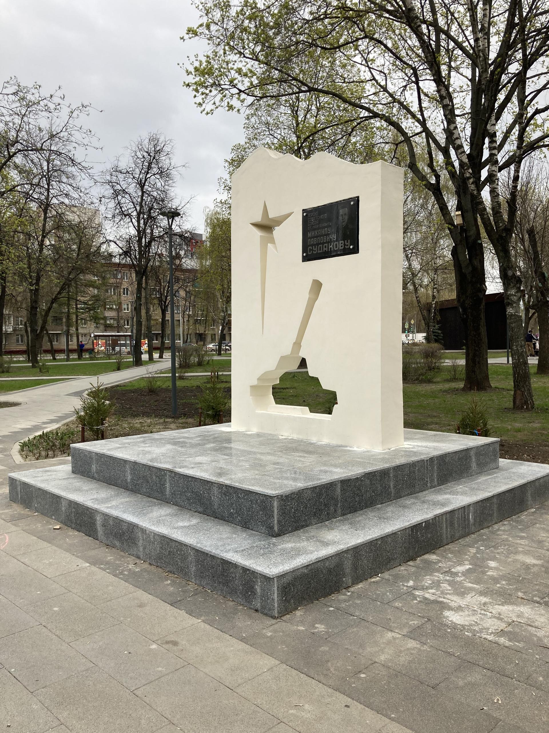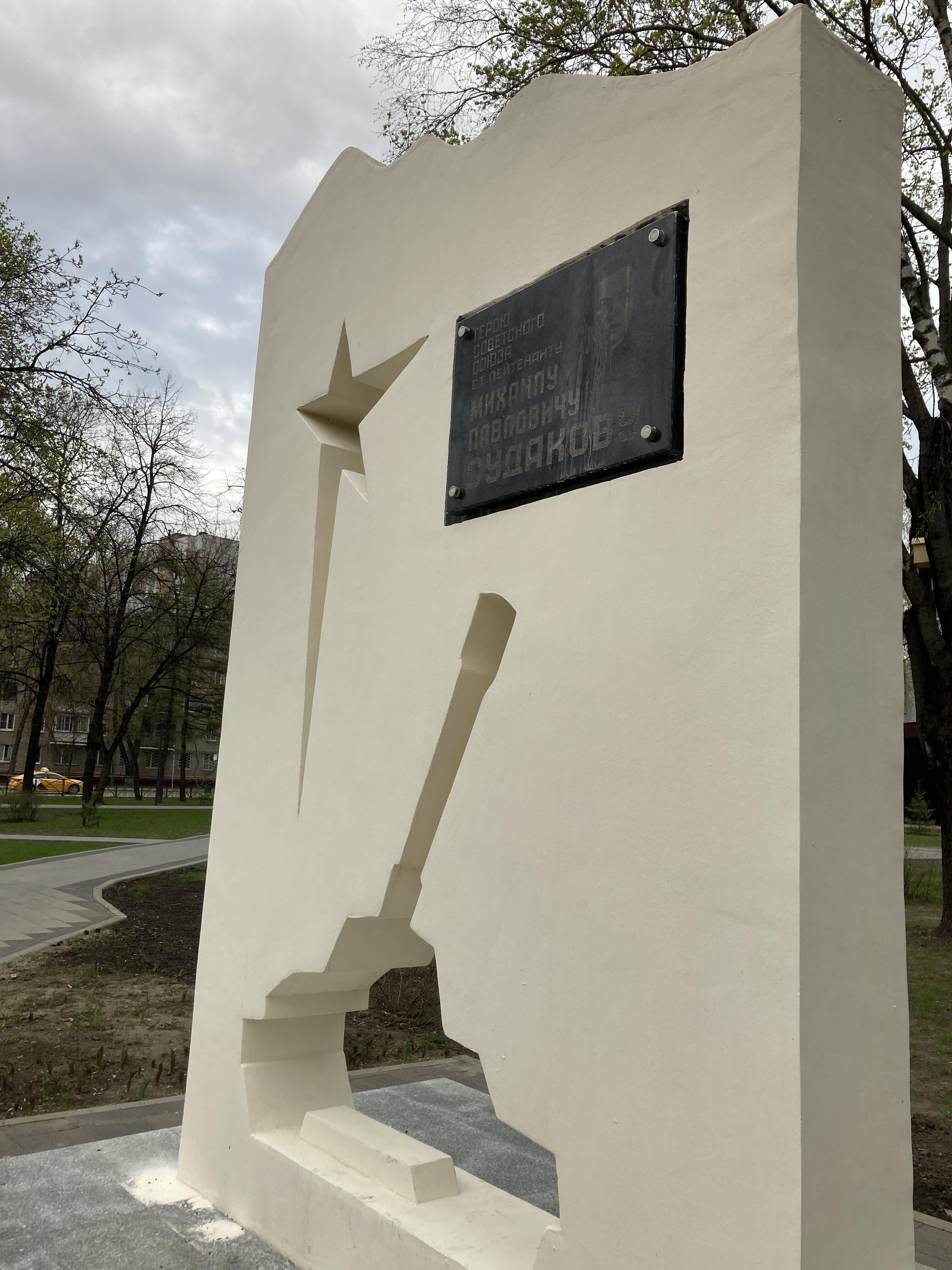 В правой части стелы укреплена мемориальная табличка из черного полированного гранита с портретом М. П. Судакова и посвятительной надписью, выполненной прорезными буквами. Ремонтные работы на объекте проводились в 2015 г.