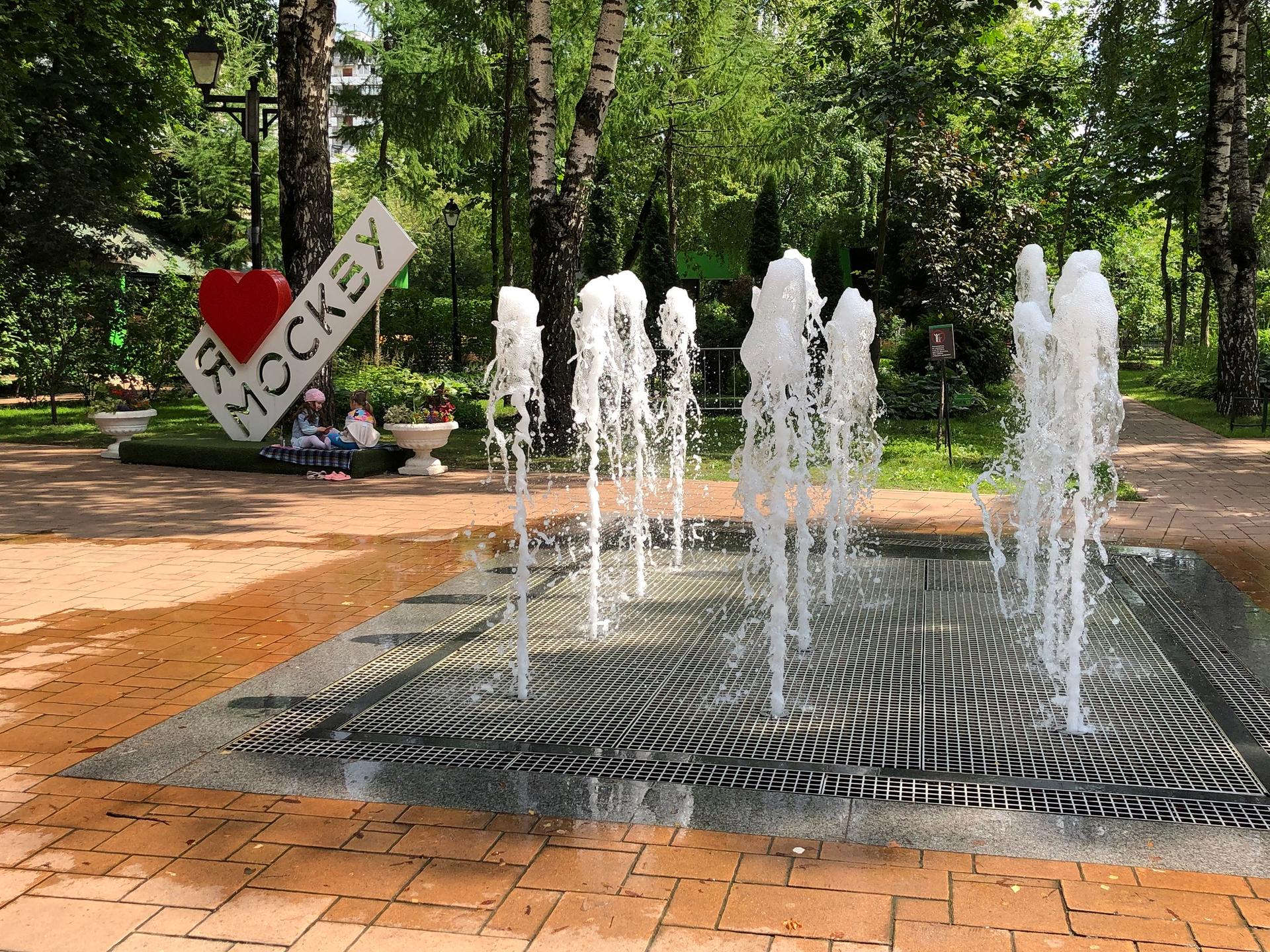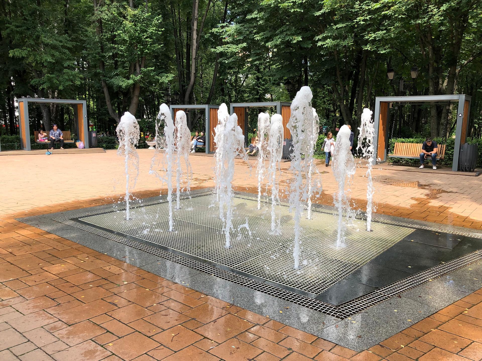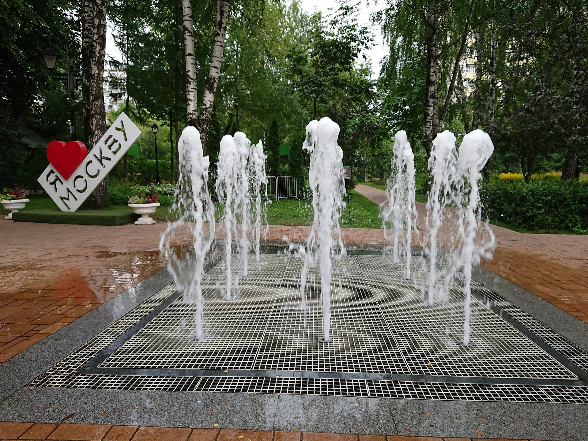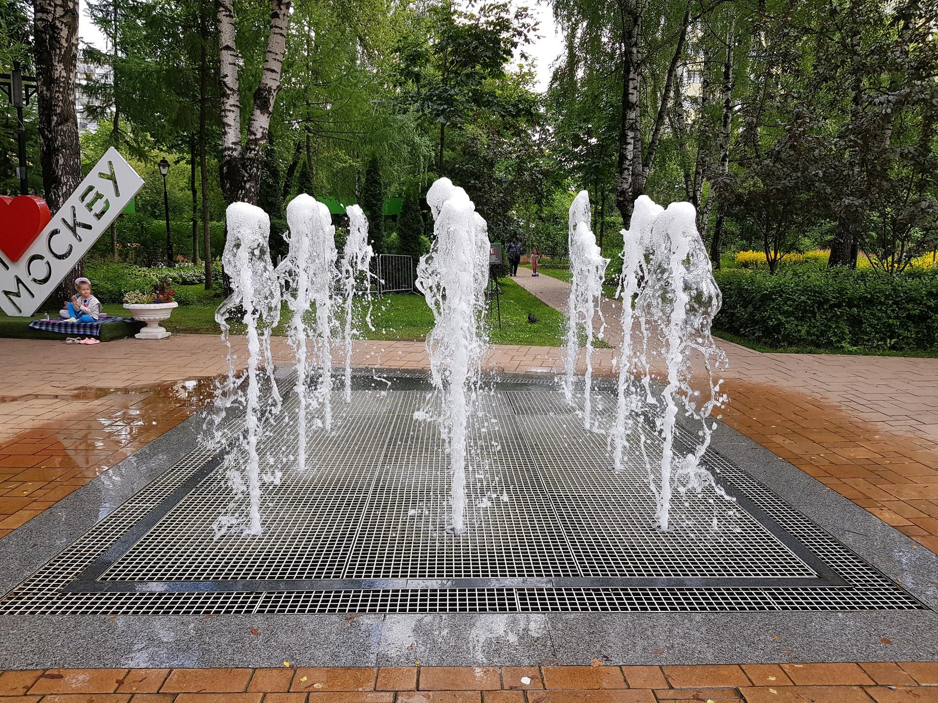 «Сухой» фонтан в Бабушкинском парке открылся в июле 2013 года. Он стал первым фонтаном «сухого» типа в Москве. Особенность «сухих» фонтанов, отличающая их от классических, заключается в конструкции и расположении водной чаши: если у классических фонтанов она находится на поверхности, то водная чаша «сухого» фонтана расположена ниже уровня земли, под решёткой, которая идёт вровень с тротуарным покрытием вокруг фонтана. Получается, что водные струи выбиваются из-под решётки на уровне земли, словно фонтан бьёт «с пола», затем стекают обратно в чашу. Иногда, чтобы усилить эффект, решётку декорируют соответственно окружающему фонтан покрытию. Предполагается, что по «сухому» фонтану можно ходить, и часто он играет не столько декоративную, сколько развлекательную роль.