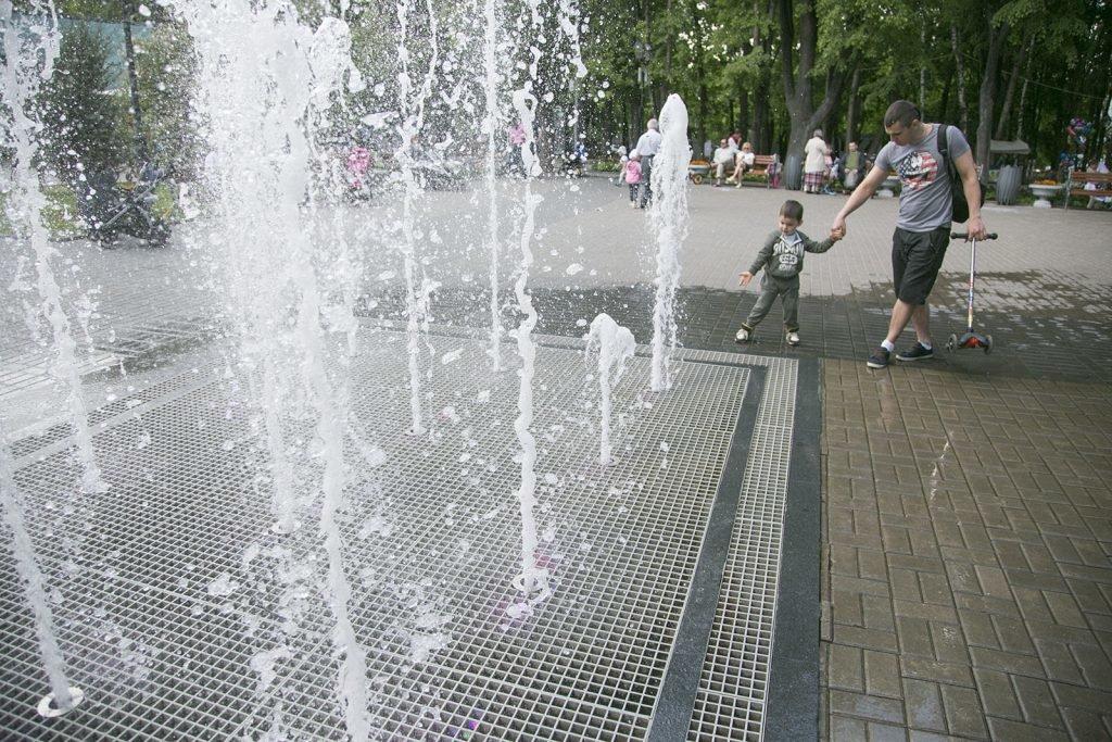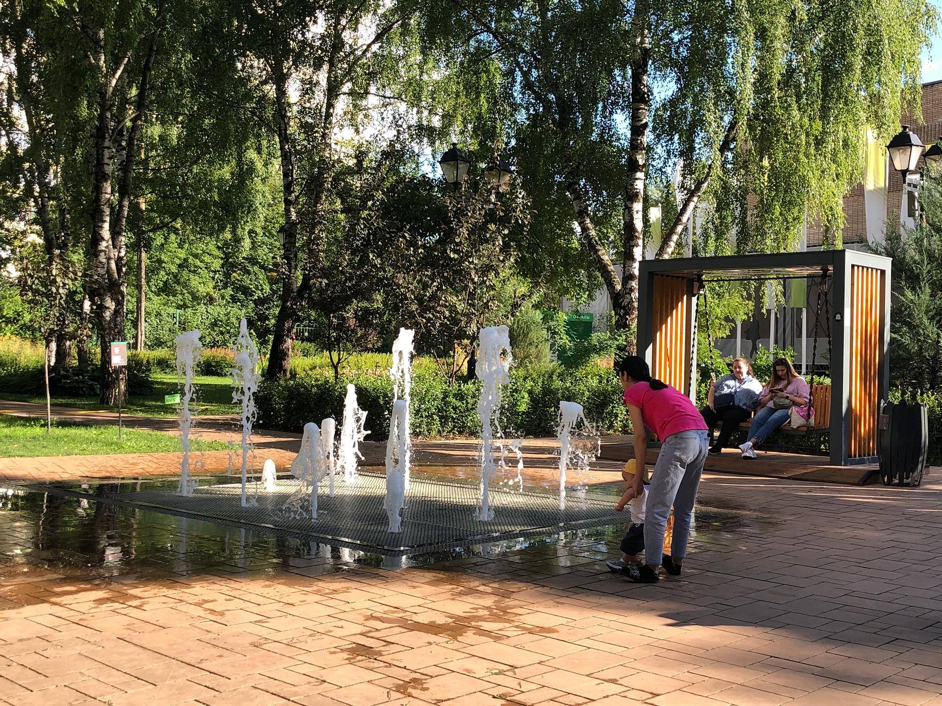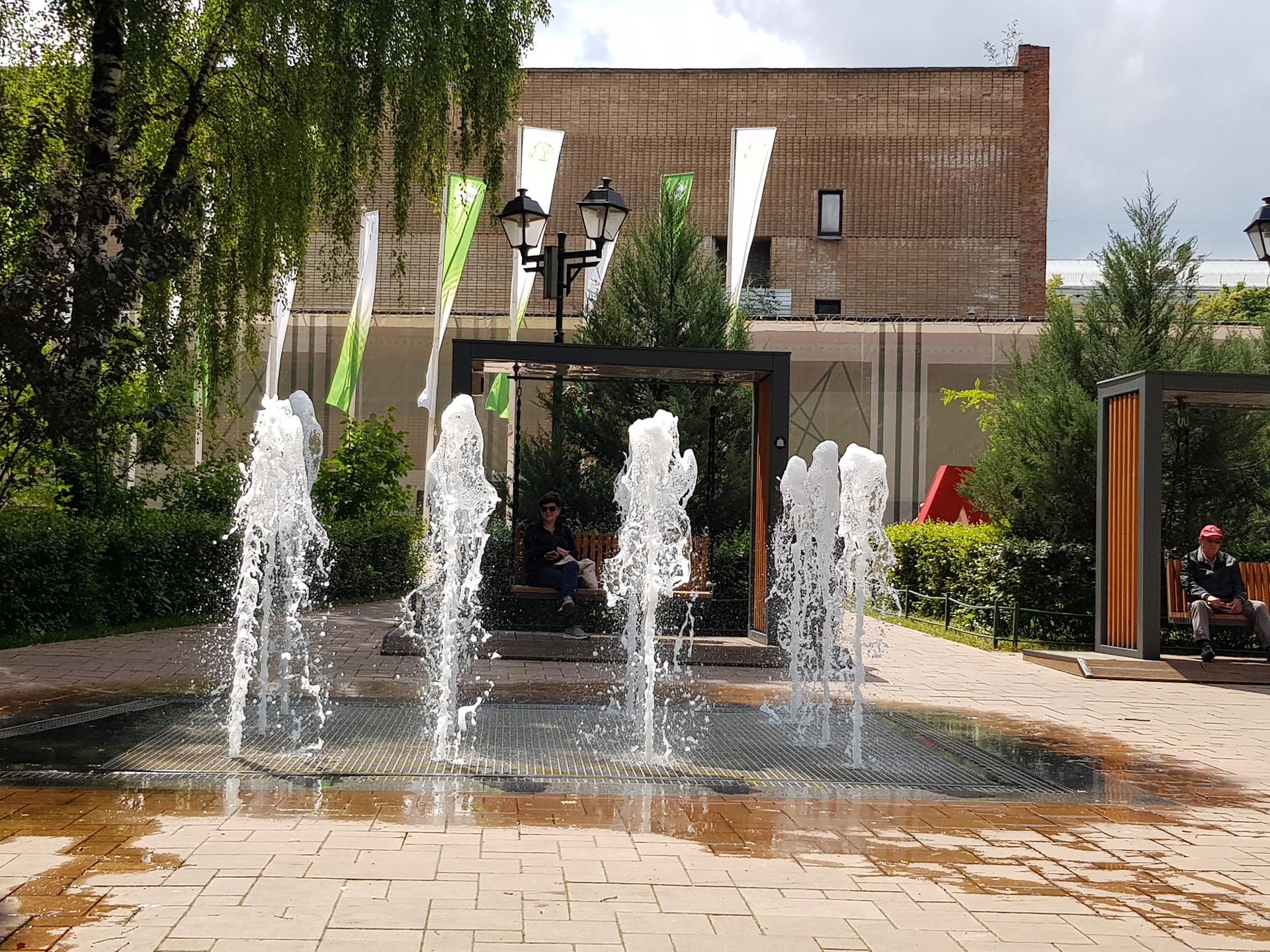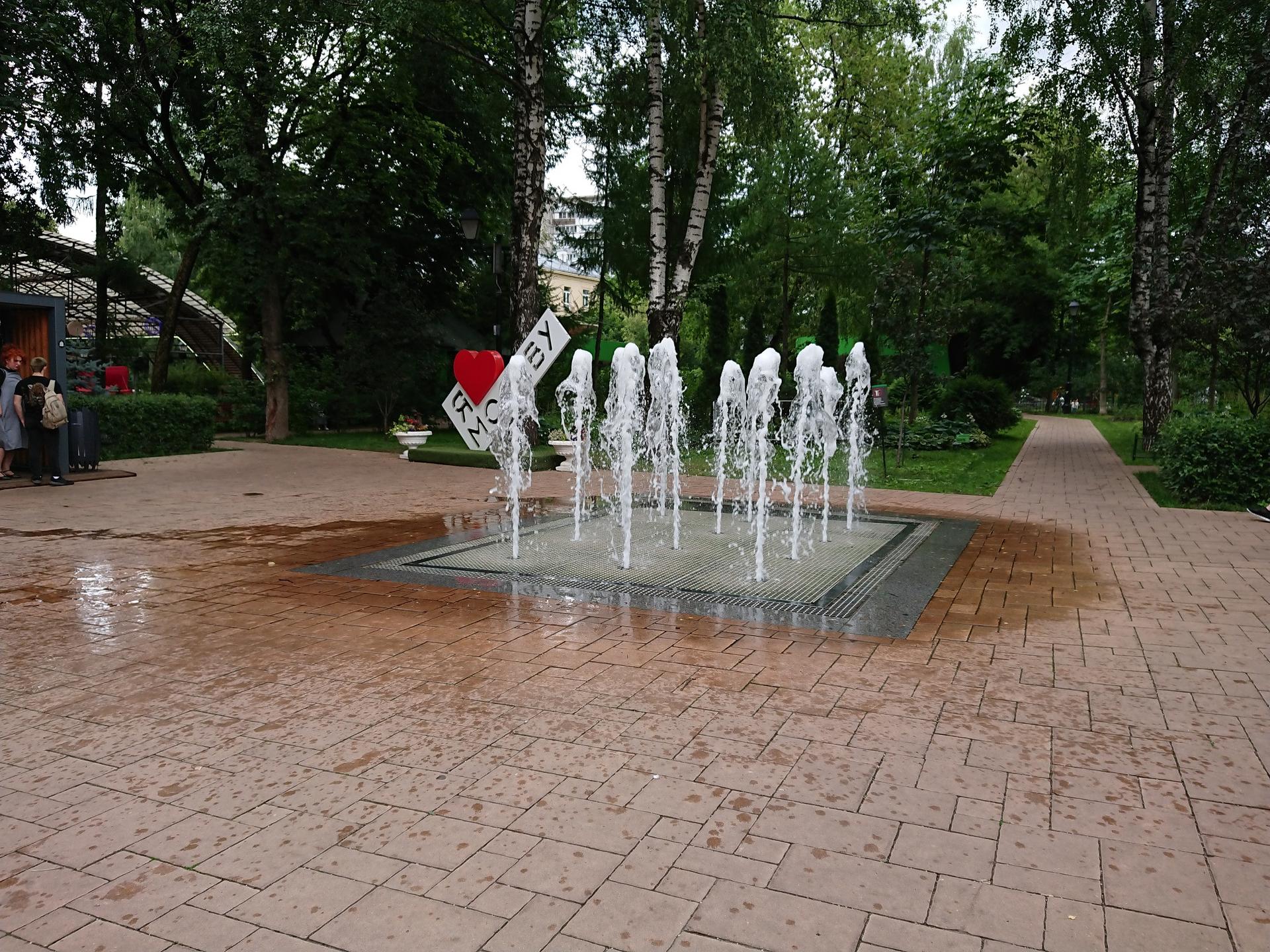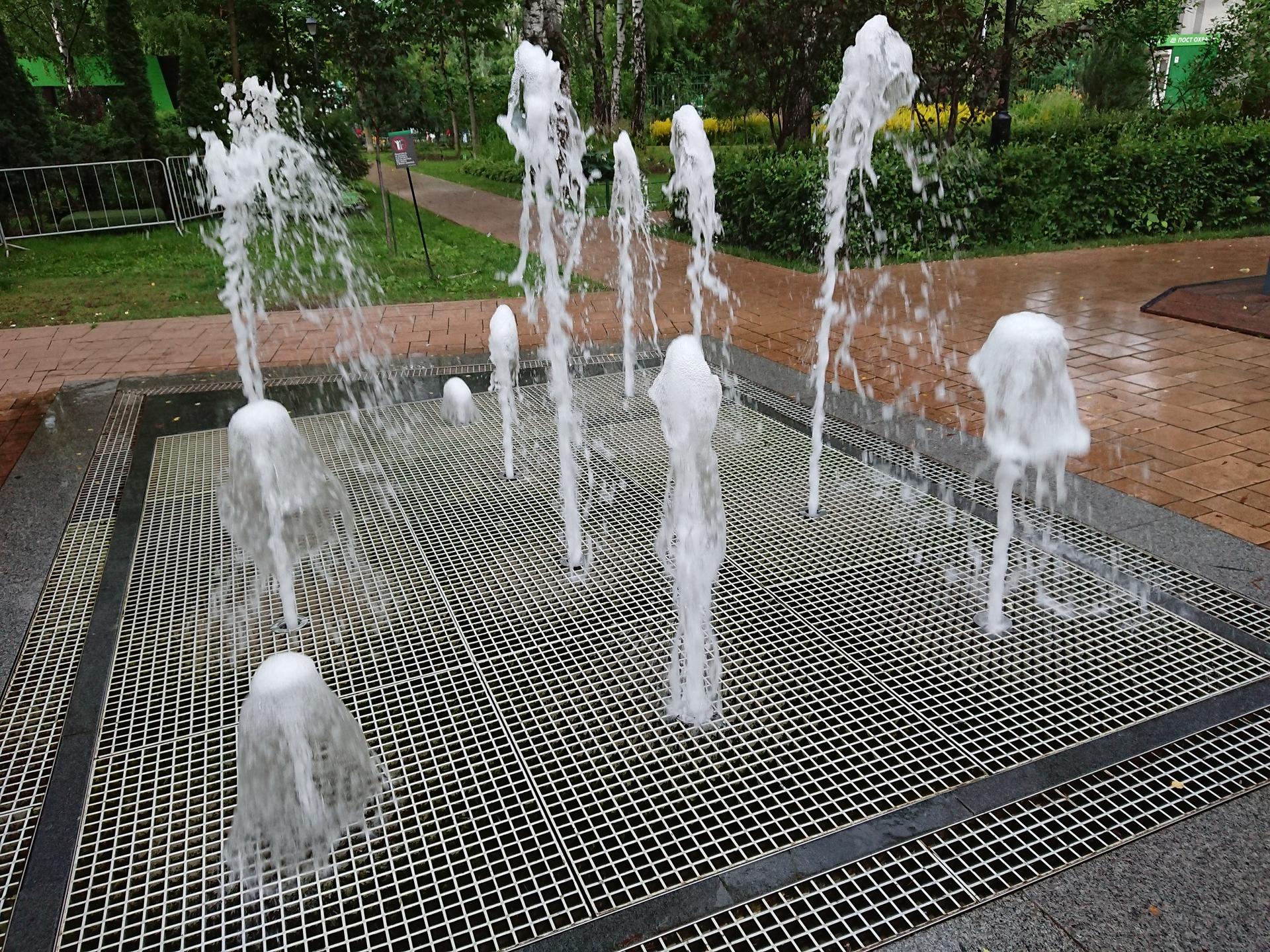 «Сухой» фонтан в Бабушкинском парке открылся в июле 2013 года. Он стал первым фонтаном «сухого» типа в Москве. Особенность «сухих» фонтанов, отличающая их от классических, заключается в конструкции и расположении водной чаши: если у классических фонтанов она находится на поверхности, то водная чаша «сухого» фонтана расположена ниже уровня земли, под решёткой, которая идёт вровень с тротуарным покрытием вокруг фонтана. Получается, что водные струи выбиваются из-под решётки на уровне земли, словно фонтан бьёт «с пола», затем стекают обратно в чашу. Иногда, чтобы усилить эффект, решётку декорируют соответственно окружающему фонтан покрытию. Предполагается, что по «сухому» фонтану можно ходить, и часто он играет не столько декоративную, сколько развлекательную роль.