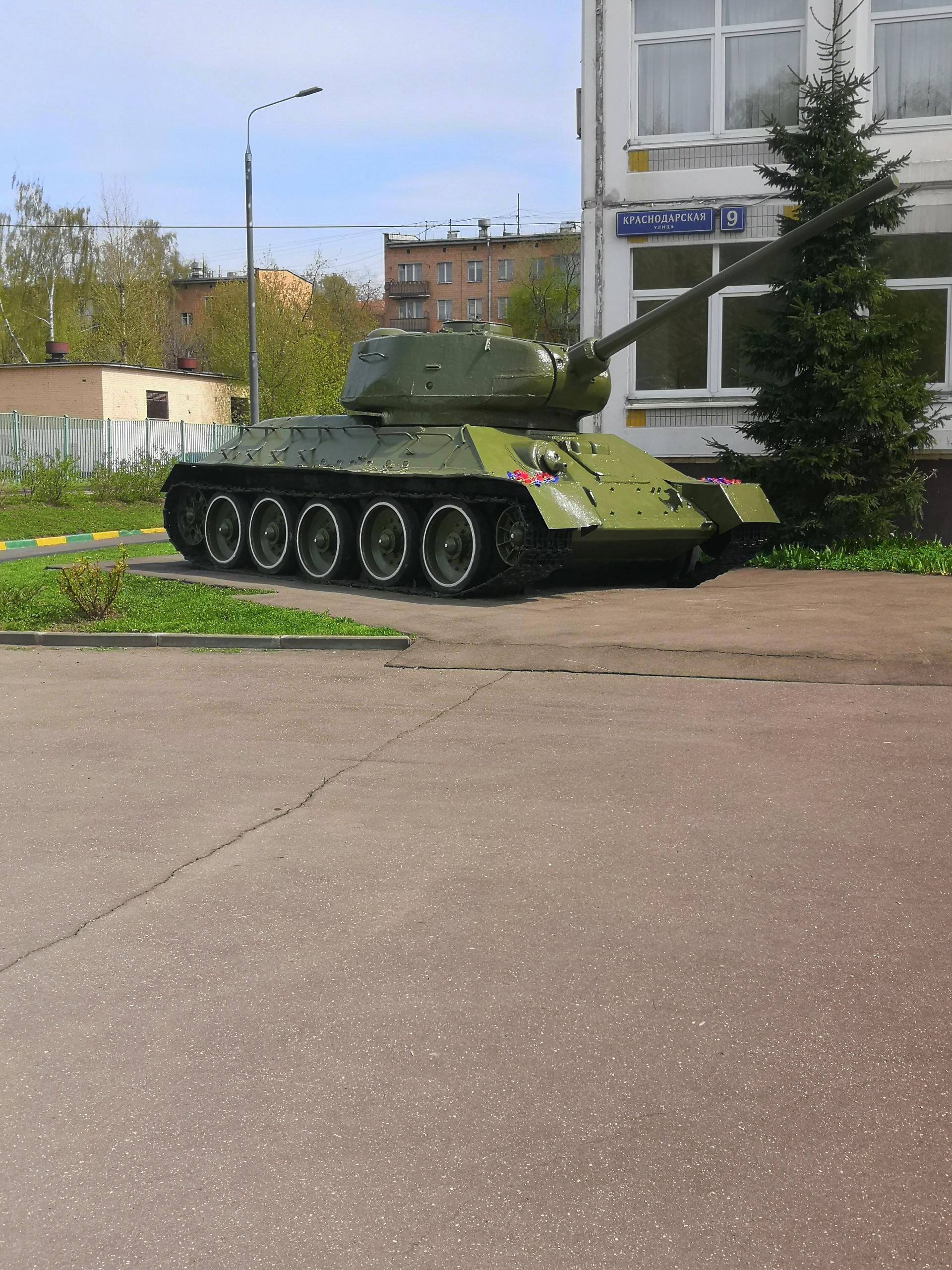 Памятник представляет собой известный советский танк Т-34, один из самых узнаваемых символов Второй мировой войны. Выполнен из металла и окрашен в зеленый цвет.
