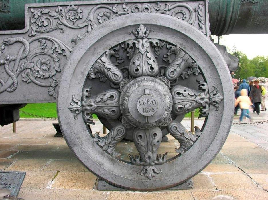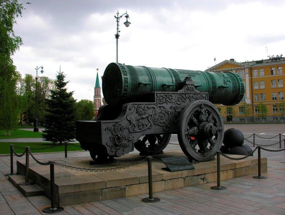 Царь-пушка, установленная в настоящее время с западной стороны Ивановской площади, между колокольней Ивана Великого и церковью Двенадцати апостолов, является самым выдающимся произведением русского оружейного мастерства. Она изготовлена по приказу царя Федора Ивановича в 1586 г. придворным литейщиком Андреем Чоховым на московском Пушечном дворе. По калибру, который составляет 890мм, это самая большая пушка в мире, за что она и названа Царь-пушкой. Ее вес приближается к 40 тоннам. Бронзовый ствол пушки украшен литыми фигурными фризами, орнаментальными поясами, памятными надписями и конной фигурой царя Федора Ивановича.