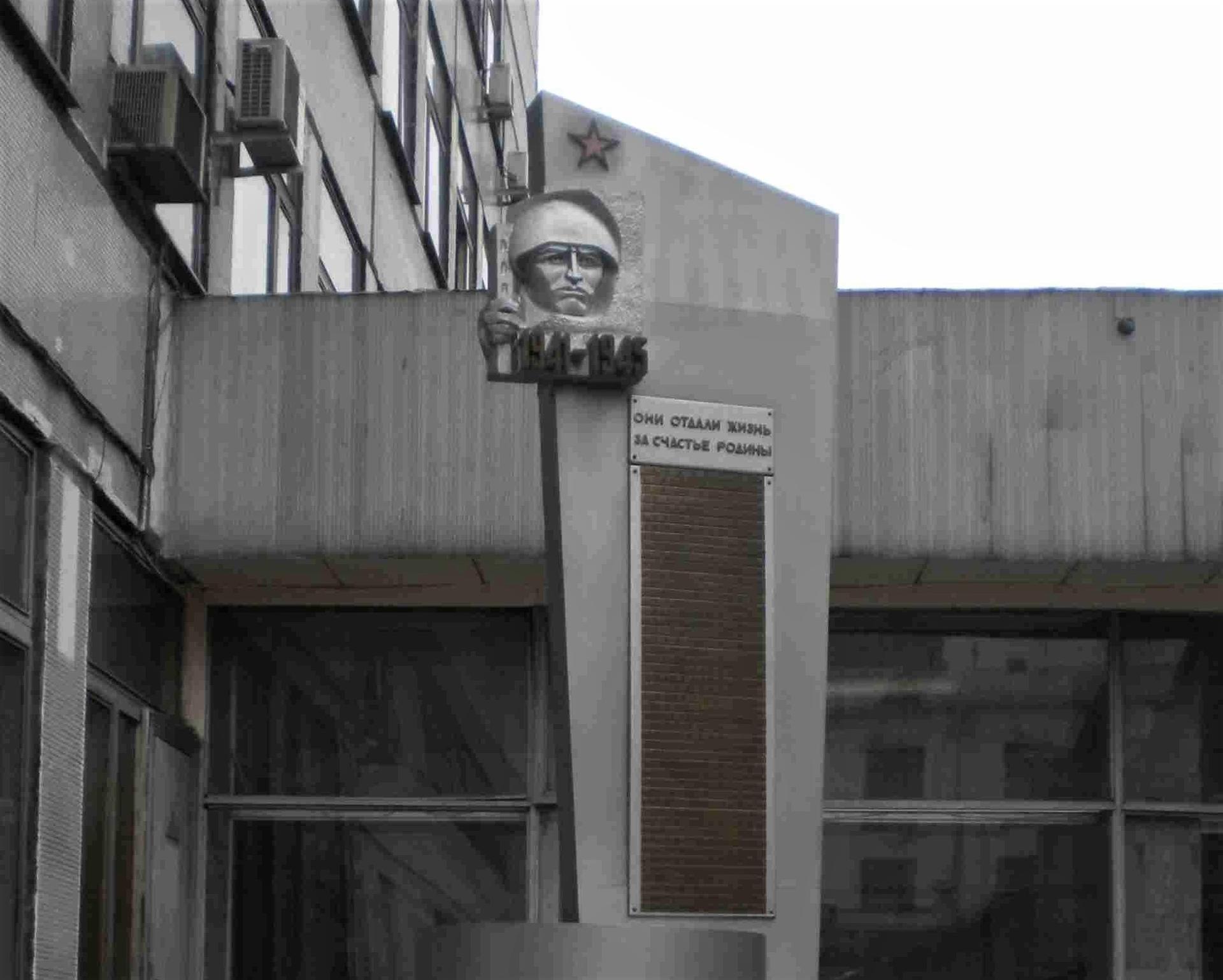 Памятник представляет собой алюминиевую стелу, размещенную на базе из бетона и алюминия. В средней части стелы закреплена мемориальная табличка, на которой латунными буквами исполнена посвятительная надпись и ниже выгравированы имена погибших. Слева от таблички размещен барельеф, изображающий стилизованный образ воина, ниже которого помещены отлитые в металле даты Великой Отечественной войны: «1941-1945».