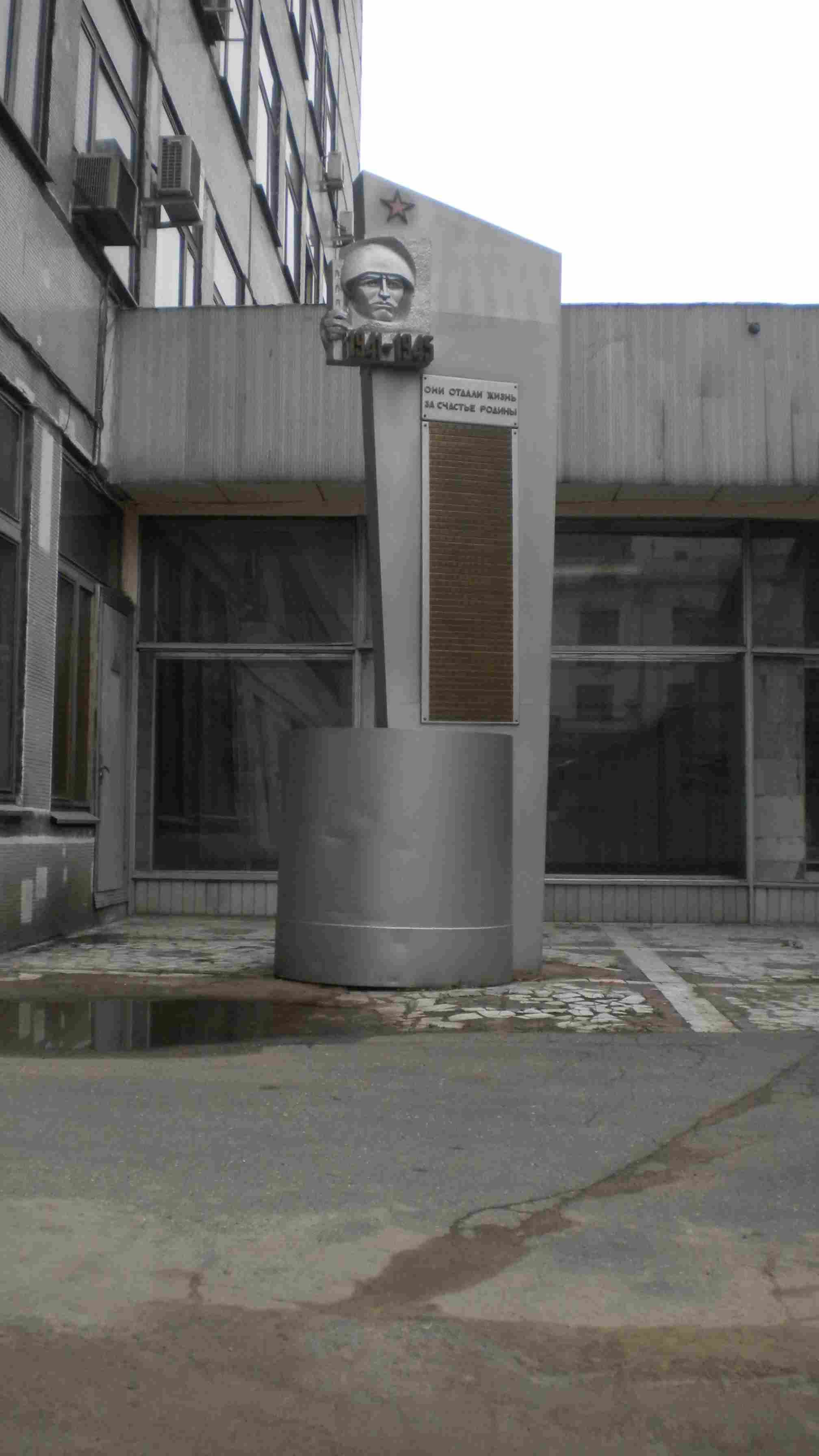 Памятник представляет собой алюминиевую стелу, размещенную на базе из бетона и алюминия. В средней части стелы закреплена мемориальная табличка, на которой латунными буквами исполнена посвятительная надпись и ниже выгравированы имена погибших. Слева от таблички размещен барельеф, изображающий стилизованный образ воина, ниже которого помещены отлитые в металле даты Великой Отечественной войны: «1941-1945».