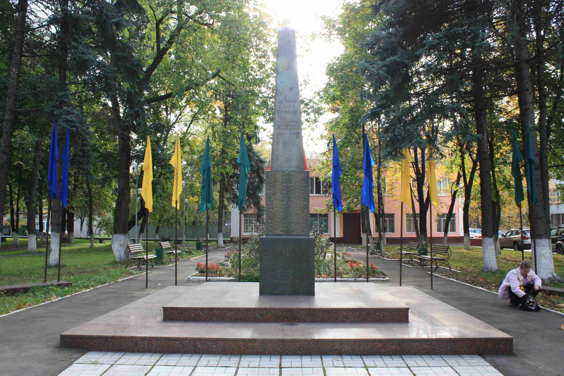 Памятник установлен в центральной части двухступенчатой прямоугольной площадки, облицованной плитами из полированного гранита. Гранитный постамент состоит из двух кубических объемов. В верхней части постамента прорезными буквами выполнены имена погибших работников. На обелиске надпись: «Вечная слава героям — сотрудникам ВИМа, погибшим в годы Великой Отечественной войны 1941-1945 гг.». На постаменте установлен обелиск из серого гранита с завершением в виде металлической пятиконечной звезды.