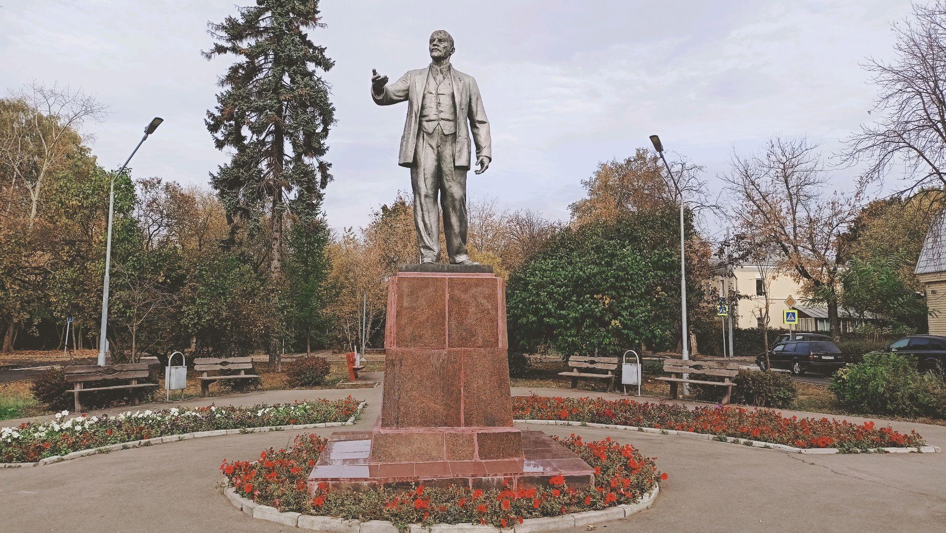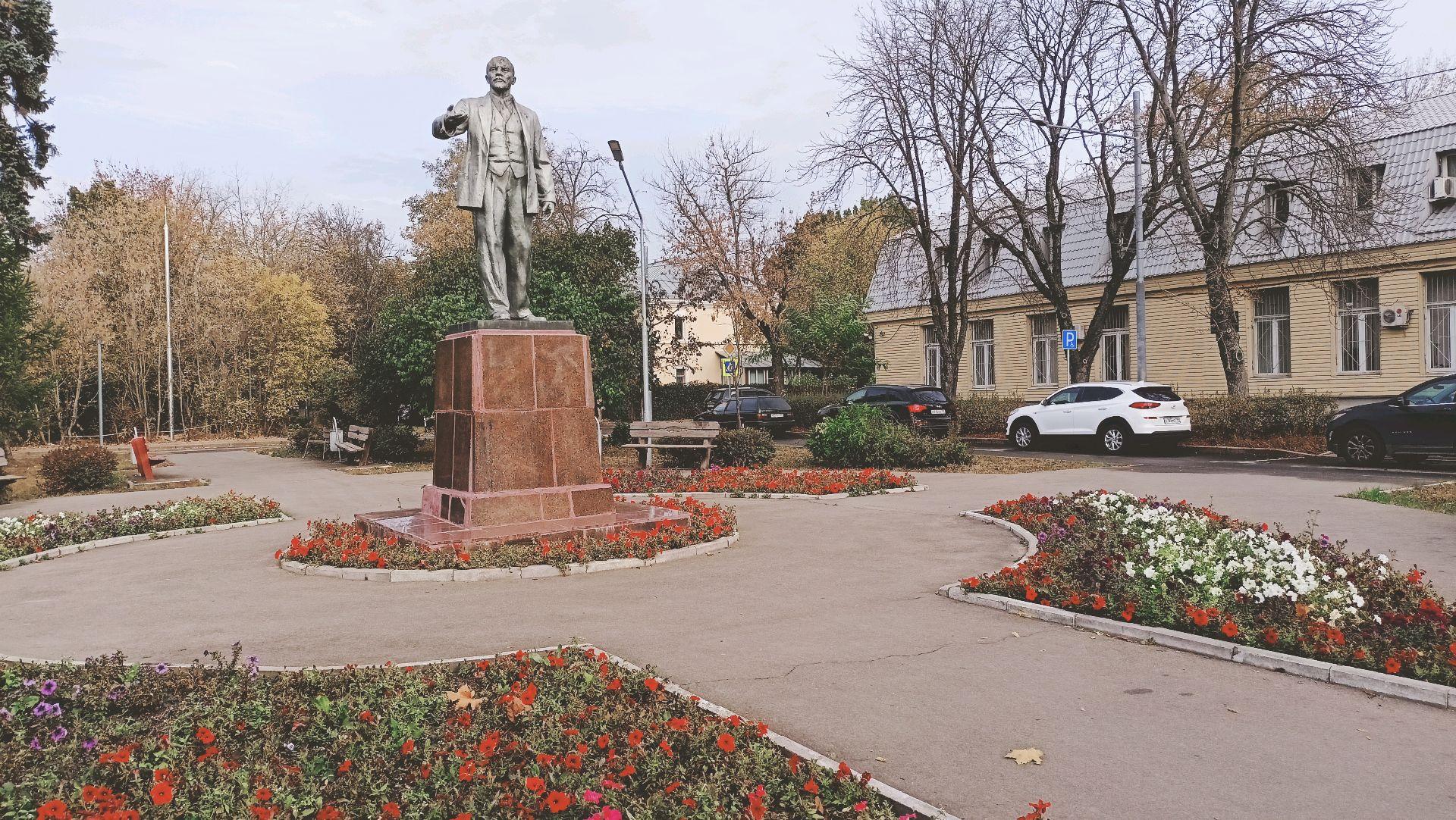 Памятник установлен в 1980 г. в небольшом сквере по Курьяновскому бульвару. Представляет собой фигуру Ленина в полный рост из бронзы, выкрашенной серой краской, на постаменте с основанием (облицованы гранитом). Надпись на основании скульптуры: «Художественный фонд СССР. Мытищинский завод художественного литья. 1957».