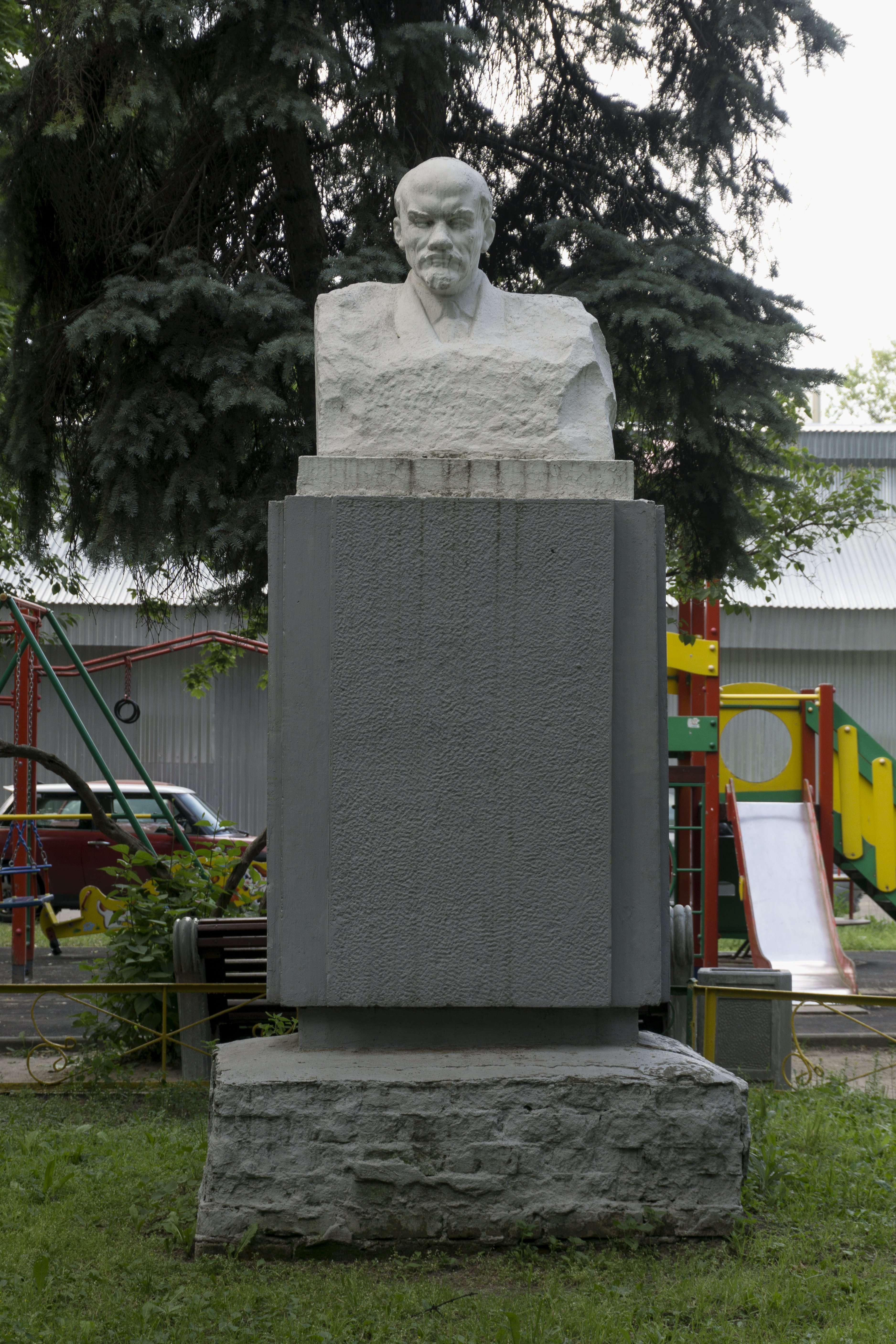 Памятник представляет собой бетонный бюст на бетонном постаменте с бетонно-кирпичной базой. Бюст и постамент окрашены. Надписи и мемориальные доски отсутствуют.
