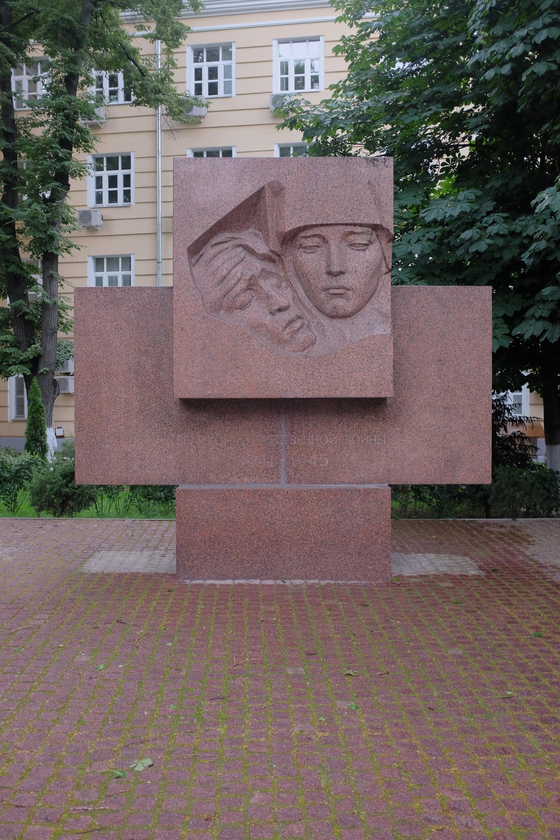 Памятник установлен на территории Московской медицинской академии им.И. М. Сеченова, посвящен студентам и сотрудникам академии (тогда называвшейся 1-м Московским медицинским институтом), погибшим в Великой Отечественной войне. В центре композиции — барельеф, изображающий раненого бойца и оказывающую ему помощь медицинскую сестру. Реставрационные работы на объекте проводились в 2015 г.