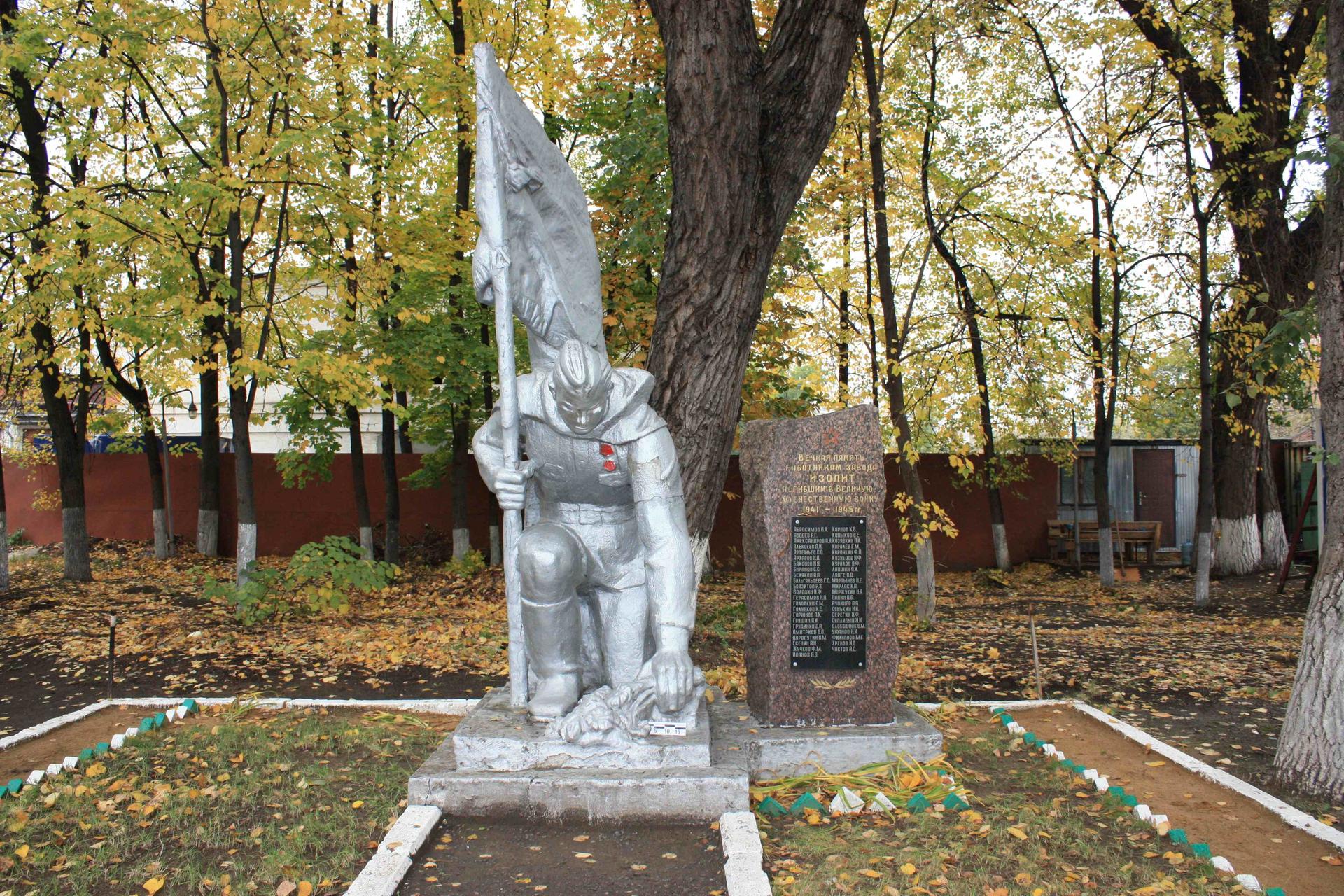 Мемориал представляет собой бетонную фигуру воина, установленную рядом гранитной стелой. Воин изображен преклонившим колено, левой рукой он возлагает цветы, в правой держит знамя. В верхней части стелы прорезными буквами выполнена посвятительная надпись и прорезана пятиконечная звезда, ниже на мемориальной доске из габбро-диабаза перечислены имена погибших работников завода «Изолит».