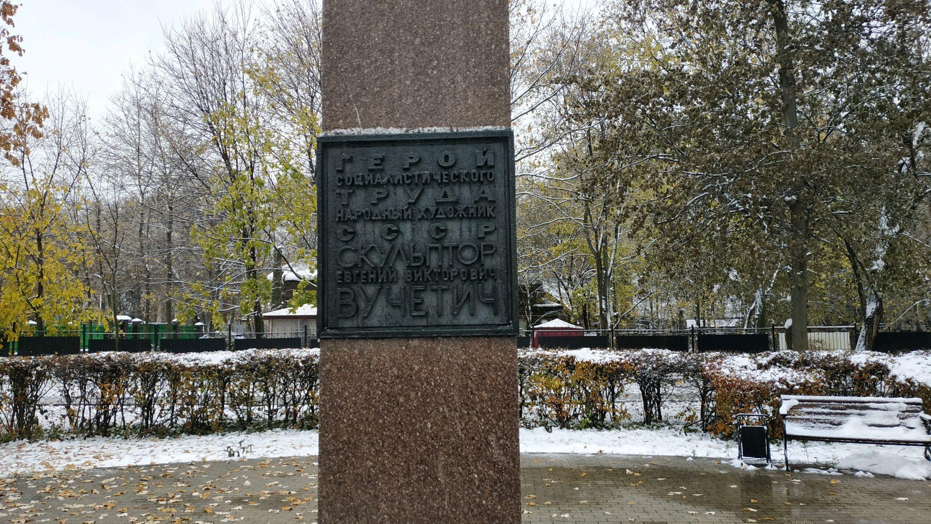 Евгений Викторович Вучетич (1908—1974) — советский скульптор-монументалист, педагог, профессор. Участник Великой Отечественной войны, подполковник в отставке.