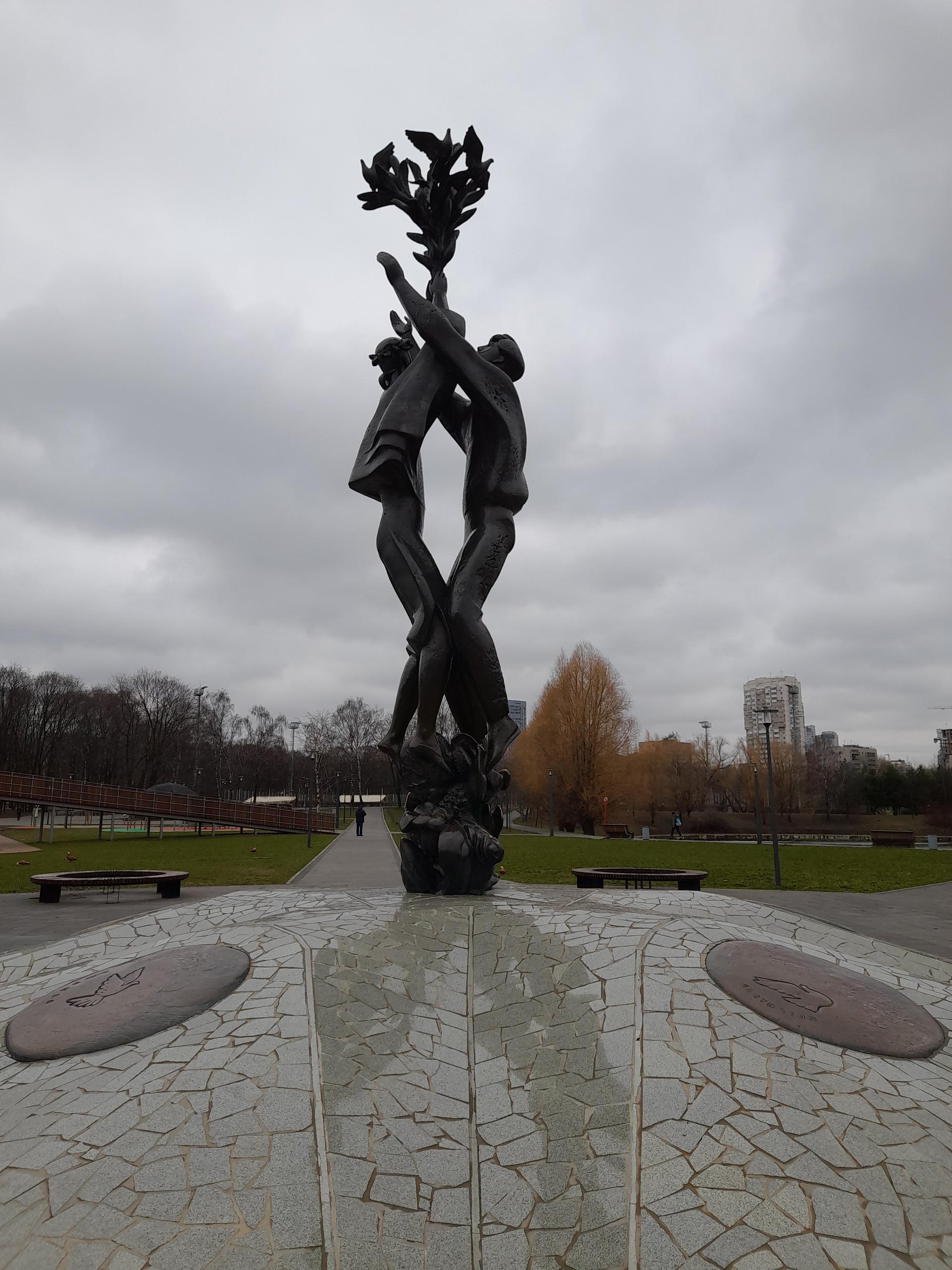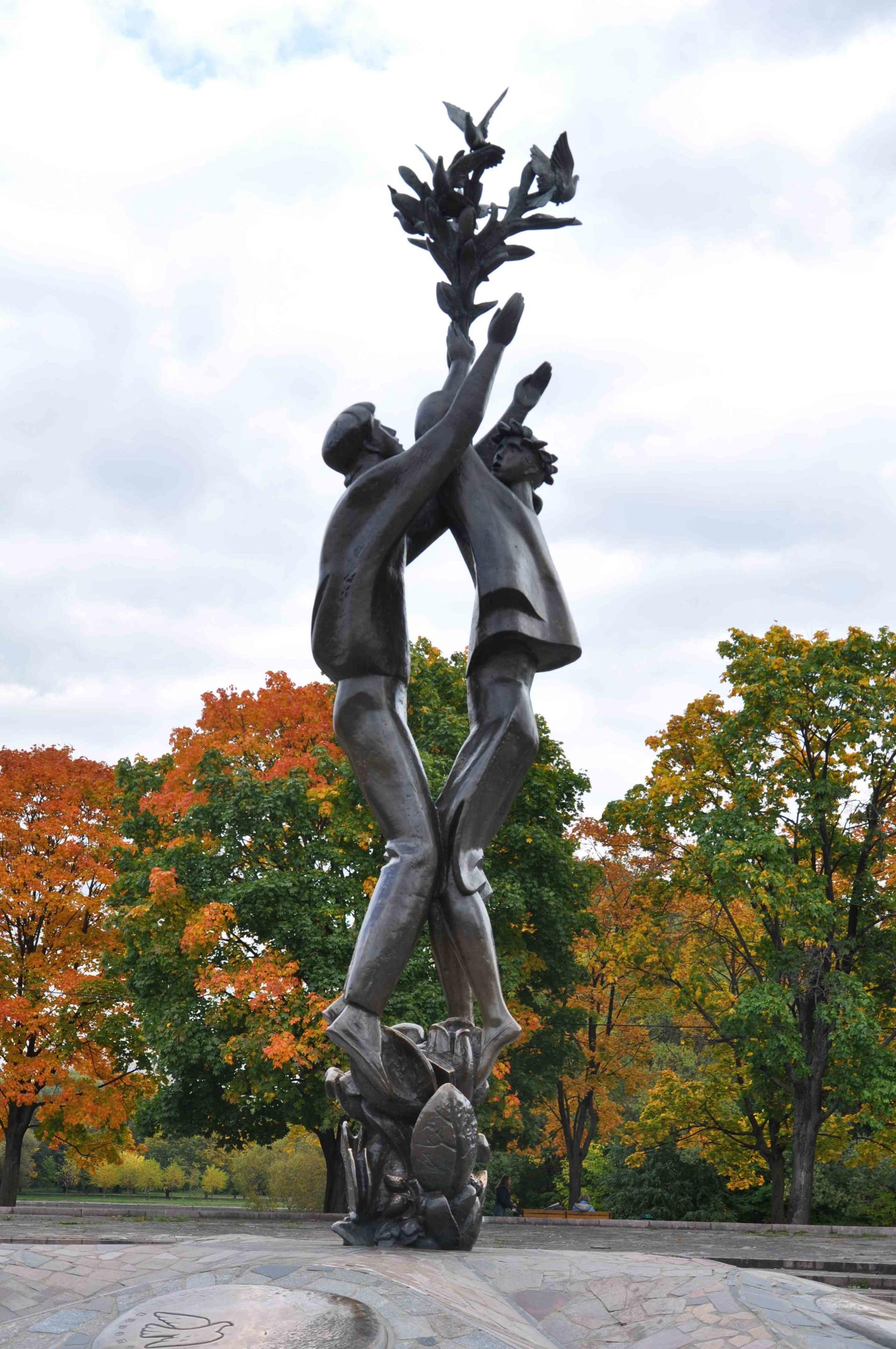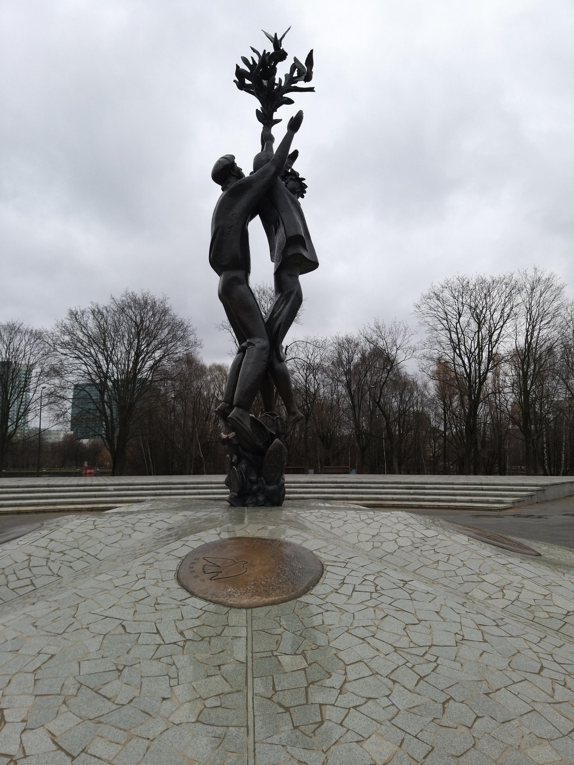 Скульптурная композиция была установлена к проведению XII Всемирного фестиваля молодежи и студентов (1985). Представляет собой бронзовые фигуры юноши и девушки, выпускающих голубей. Постамент, облицованный гранитом, по форме напоминает эмблему фестиваля, состоящую из пяти медальонов из бронзы (по числу континентов мира) с летящим голубем на каждом из них.
