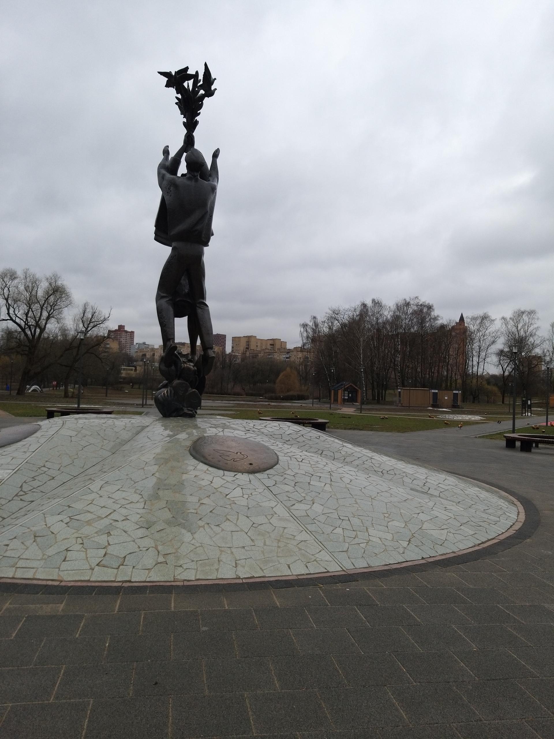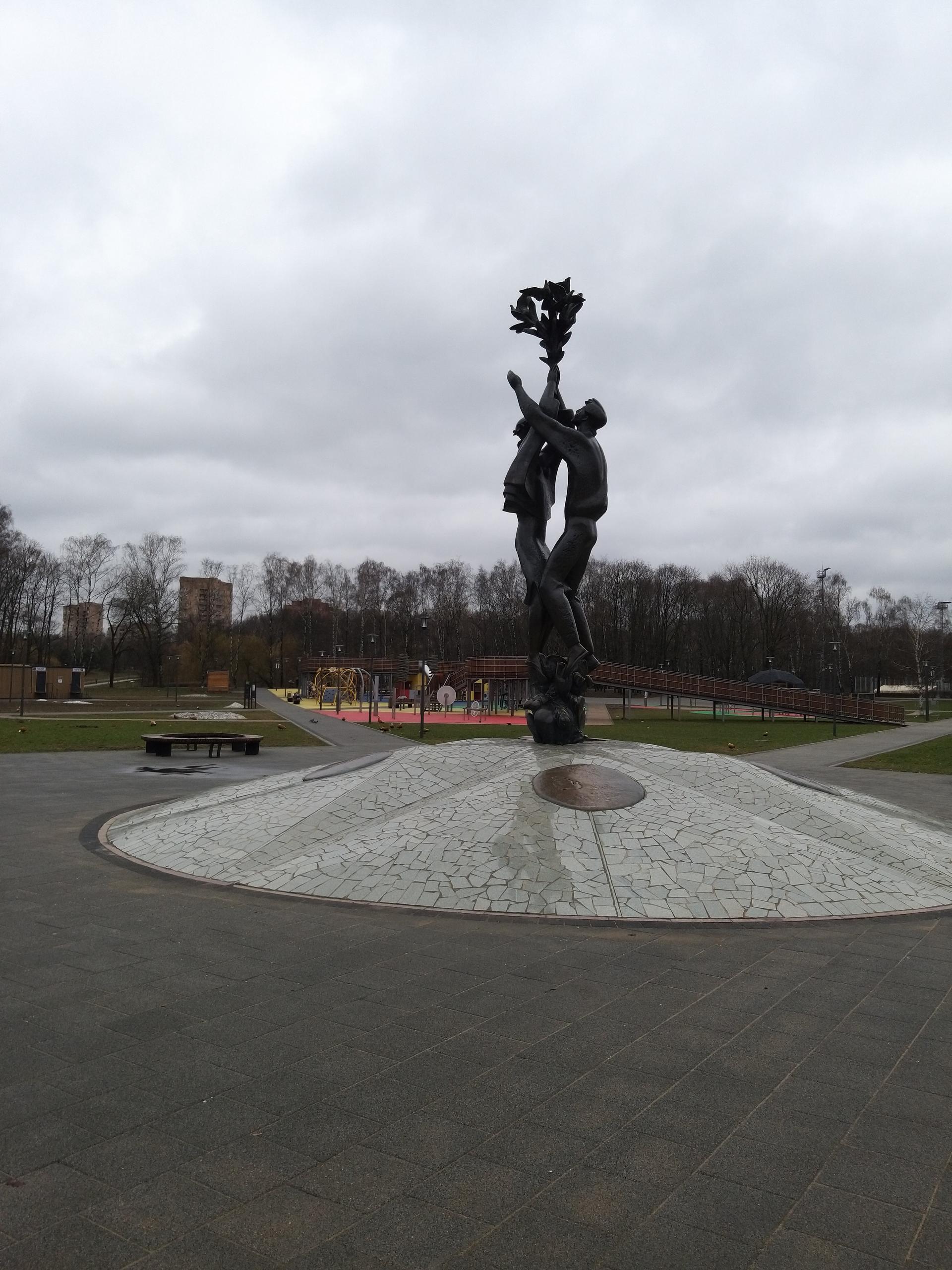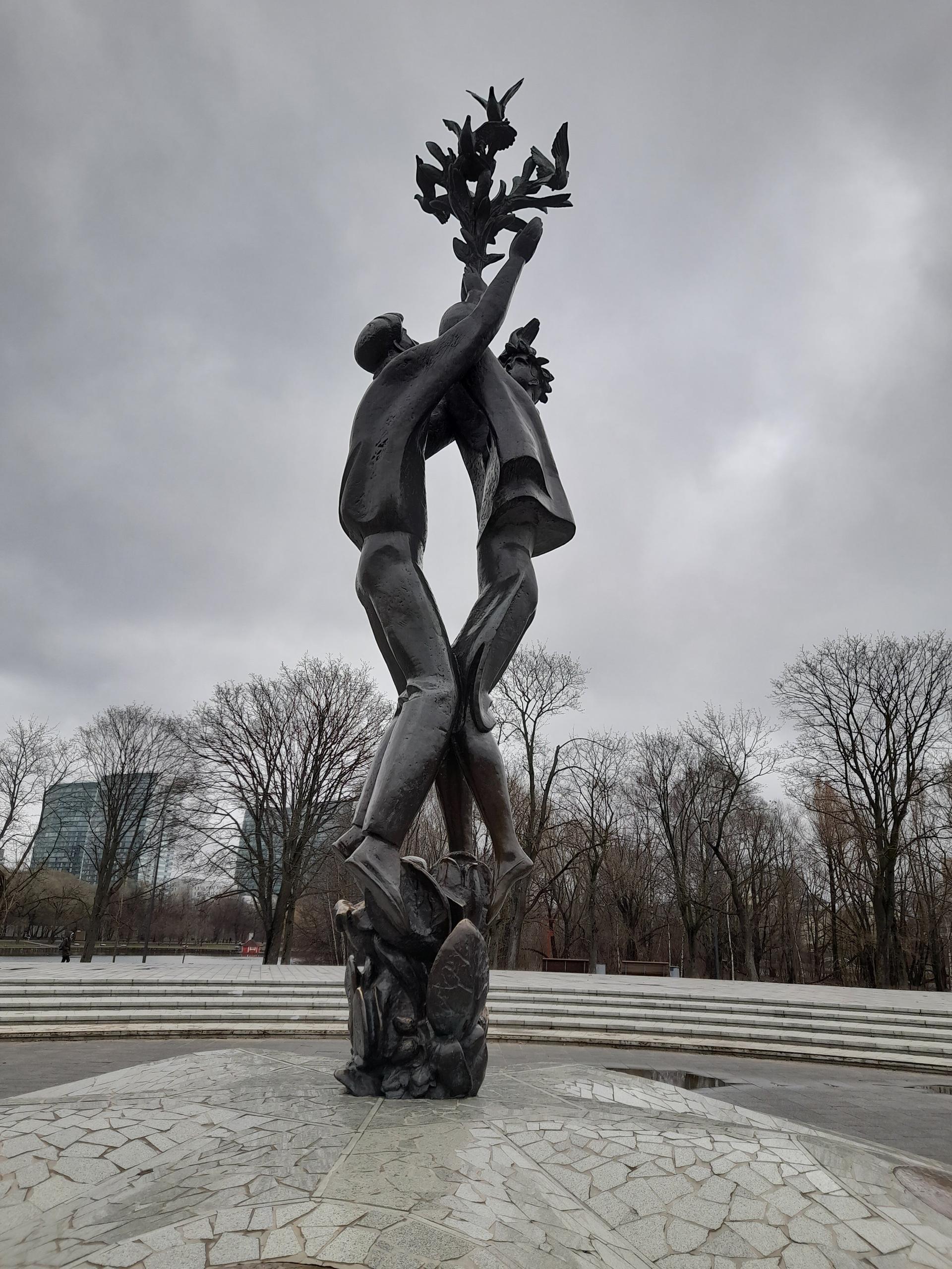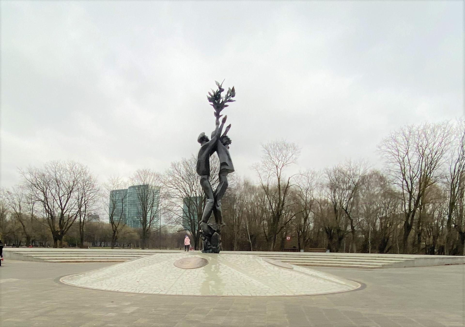 Скульптурная композиция была установлена к проведению XII Всемирного фестиваля молодежи и студентов (1985). Представляет собой бронзовые фигуры юноши и девушки, выпускающих голубей. Постамент, облицованный гранитом, по форме напоминает эмблему фестиваля, состоящую из пяти медальонов из бронзы (по числу континентов мира) с летящим голубем на каждом из них.