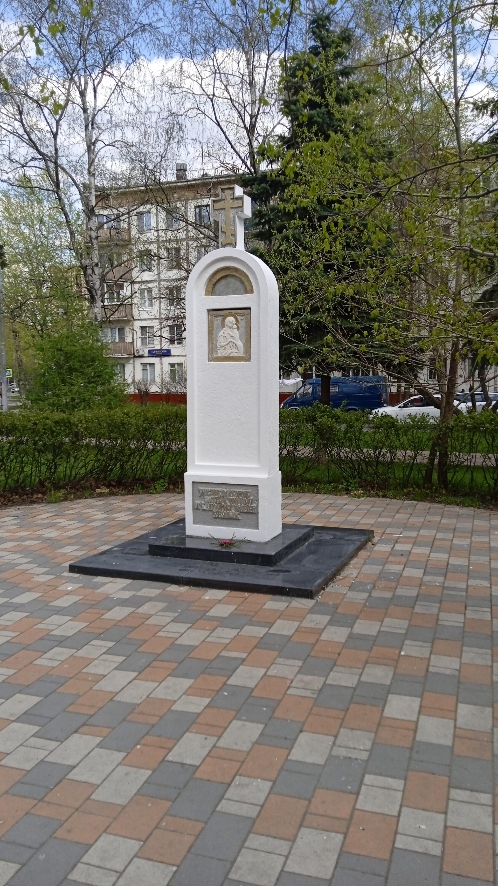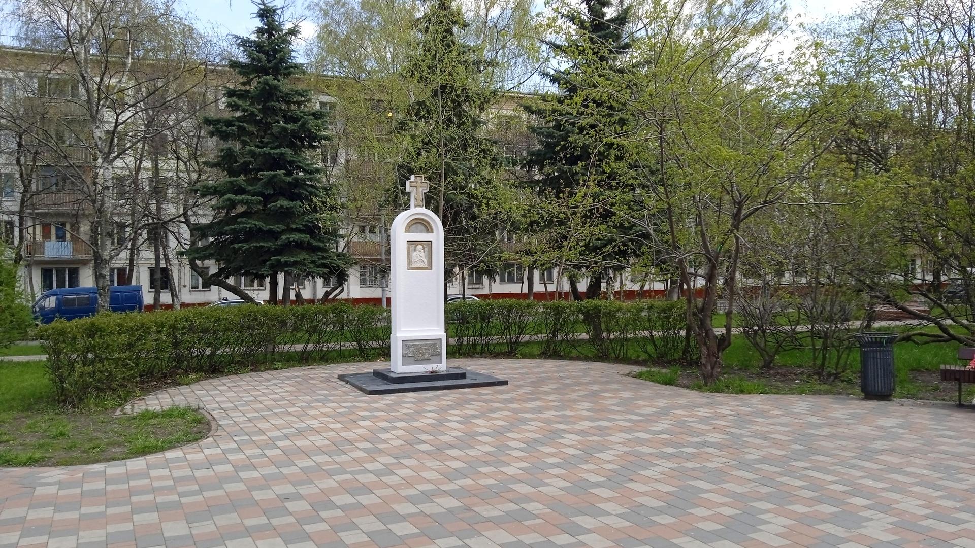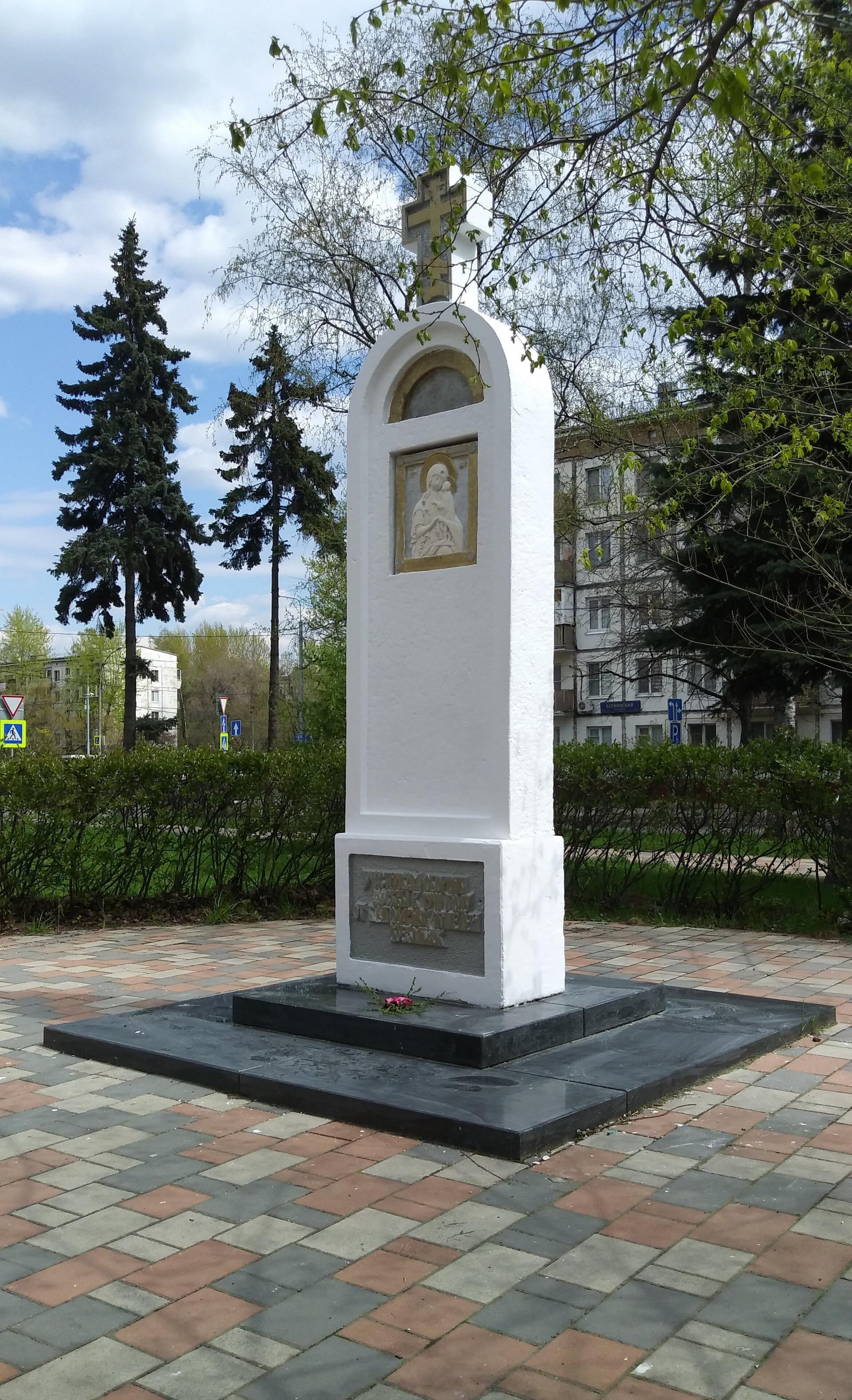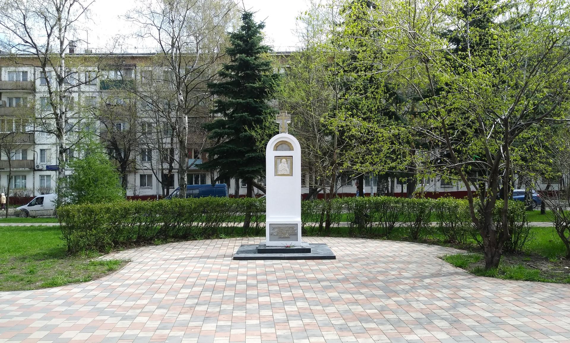 Памятник представляет собой стелу из выкрашенного в белый цвет гранита, установленную на постамент. Венчает стелу православный крест. С фронтальной стороны стелы находится барельефное стилизованное изображение иконы Божией Матери Елеуса. В нижней части стелы прорезными буквами выполнена надпись: «Участникам обороны Москвы в 1941 г. от благодарных жителей Кузьминок».