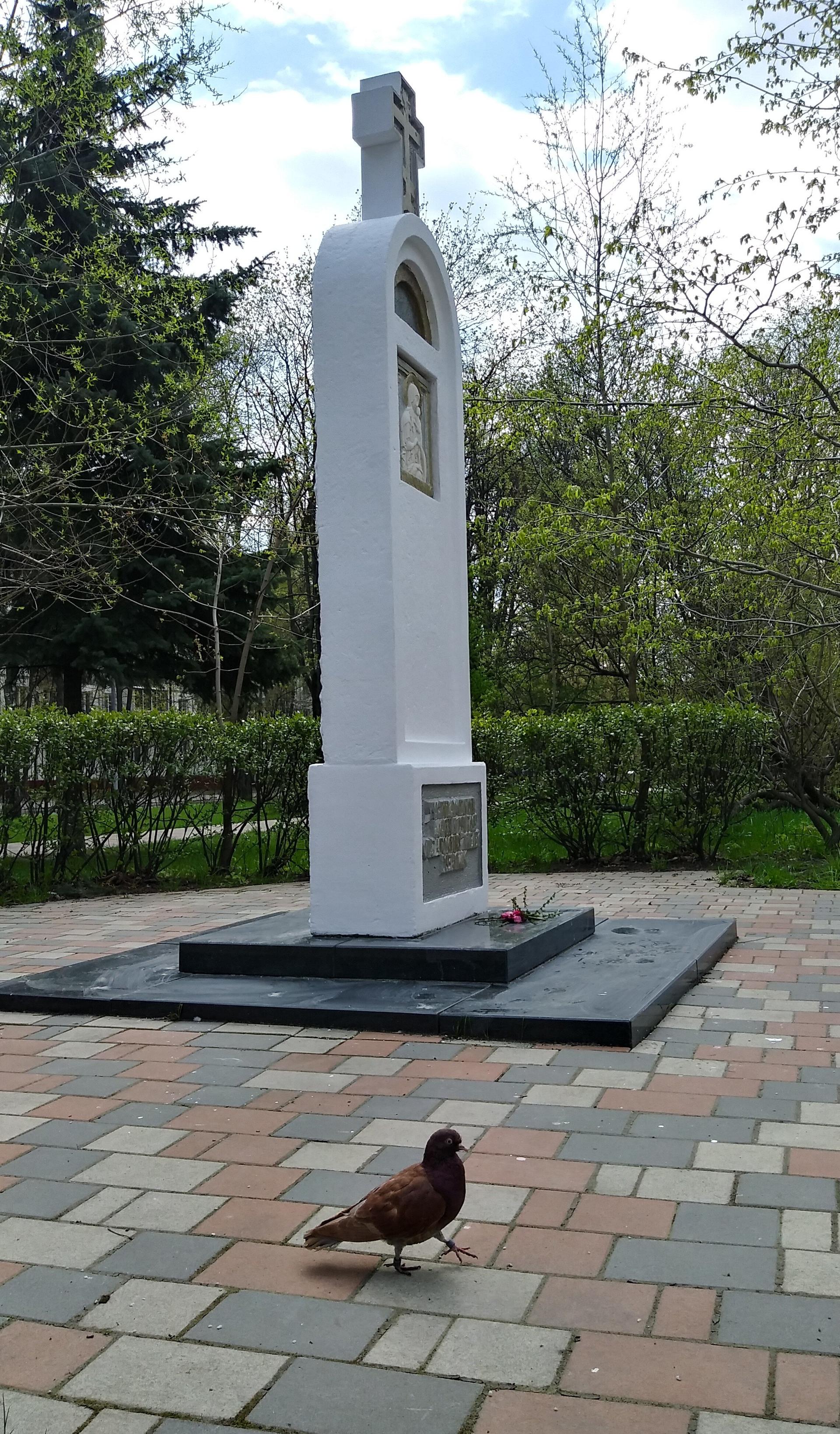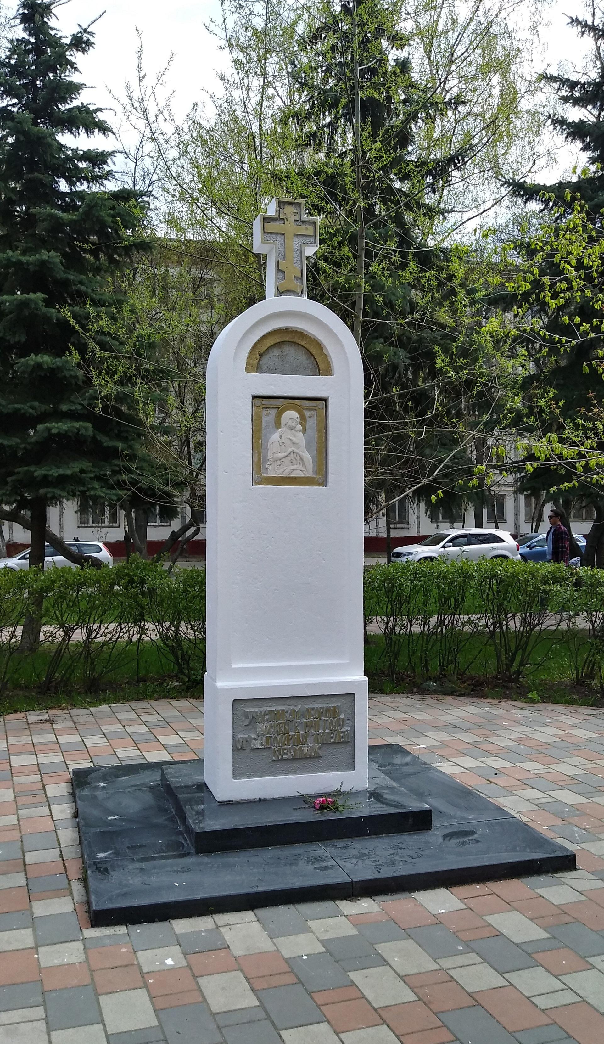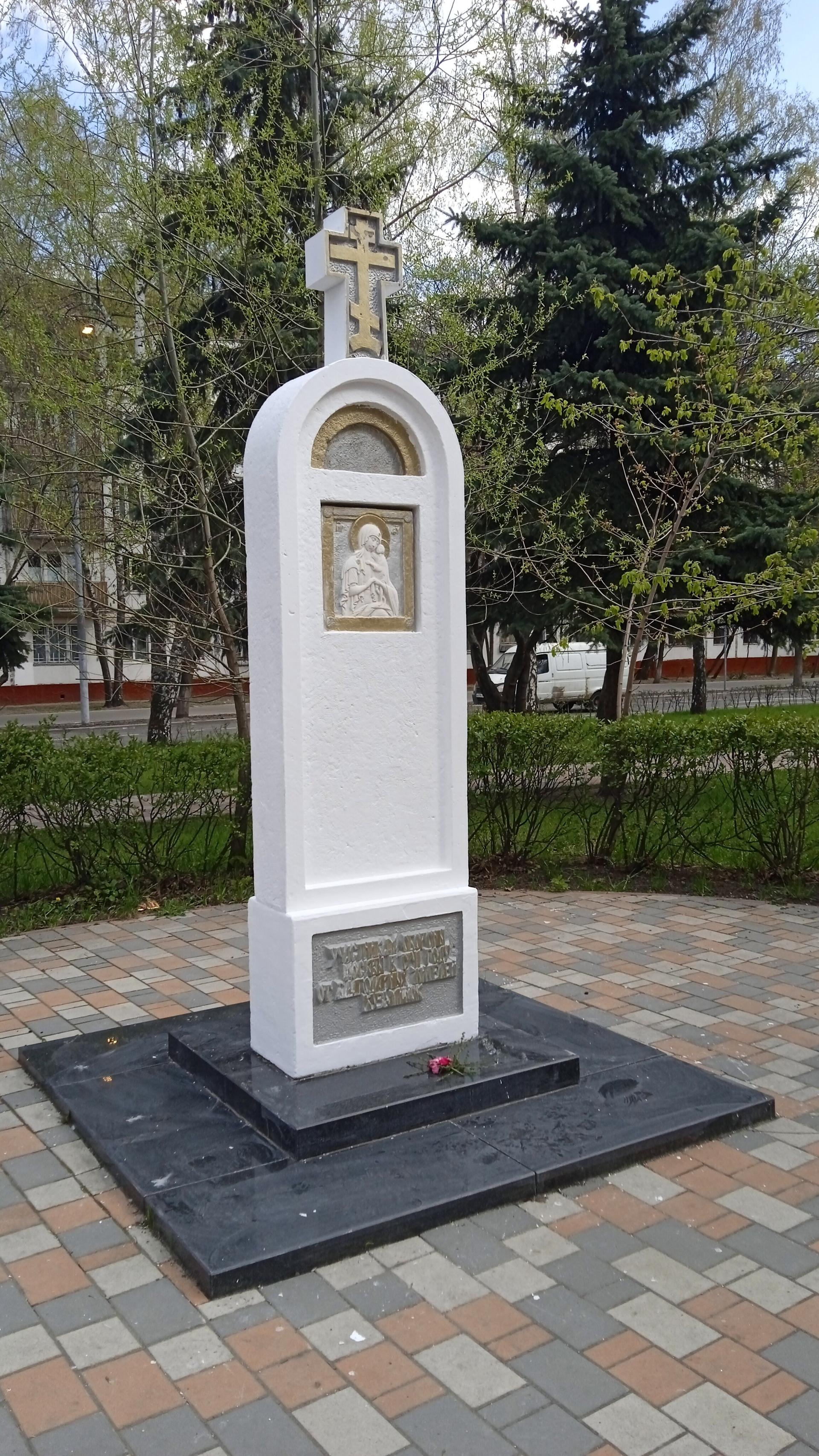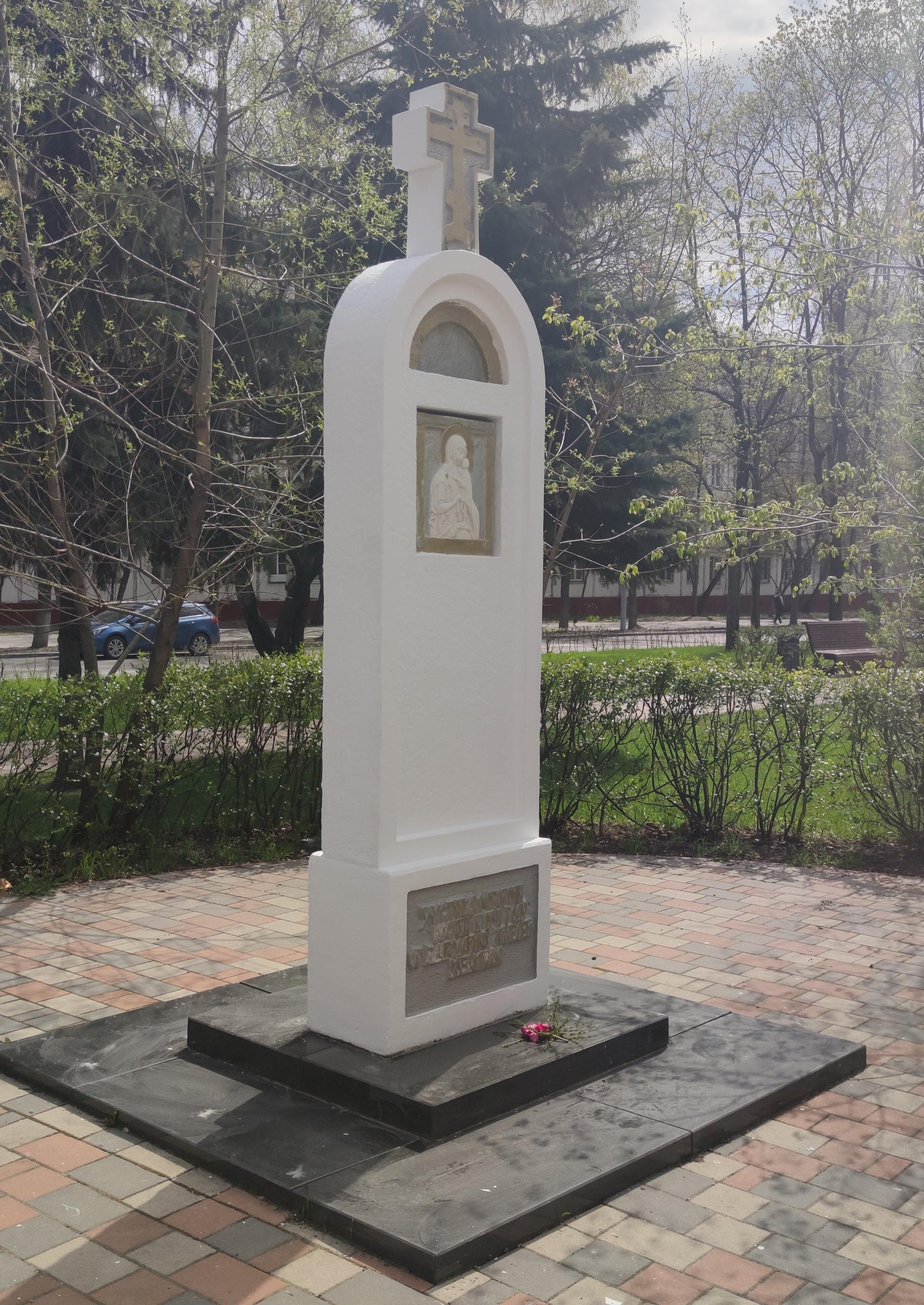 Памятник представляет собой стелу из выкрашенного в белый цвет гранита, установленную на постамент. Венчает стелу православный крест. С фронтальной стороны стелы находится барельефное стилизованное изображение иконы Божией Матери Елеуса. В нижней части стелы прорезными буквами выполнена надпись: «Участникам обороны Москвы в 1941 г. от благодарных жителей Кузьминок».