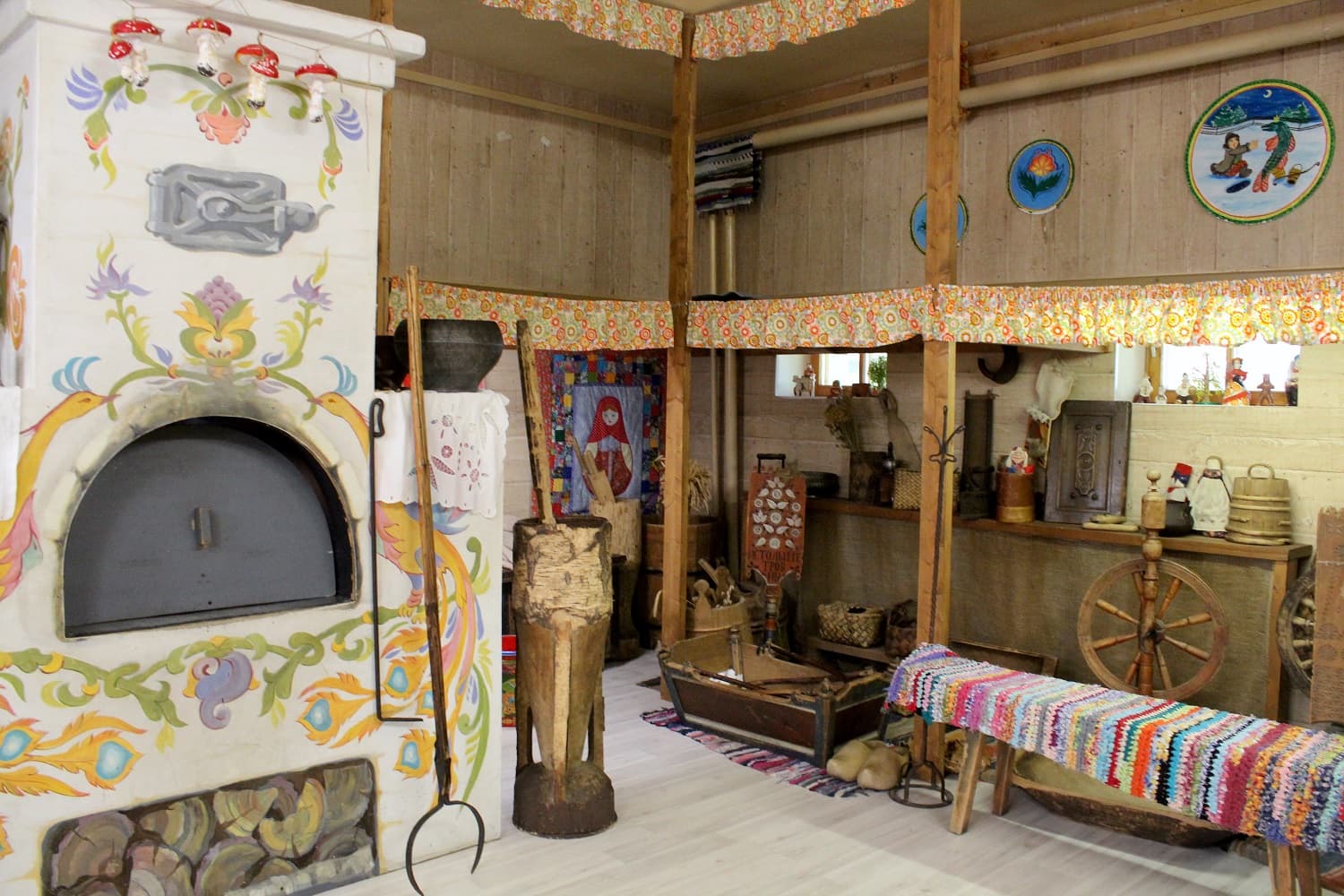 Вы можете наведаться в избушку Бабы-Яги, заглянуть в пещеру Кощея Бессмертного, пролезть в печку и полежать на настоящих полатях.