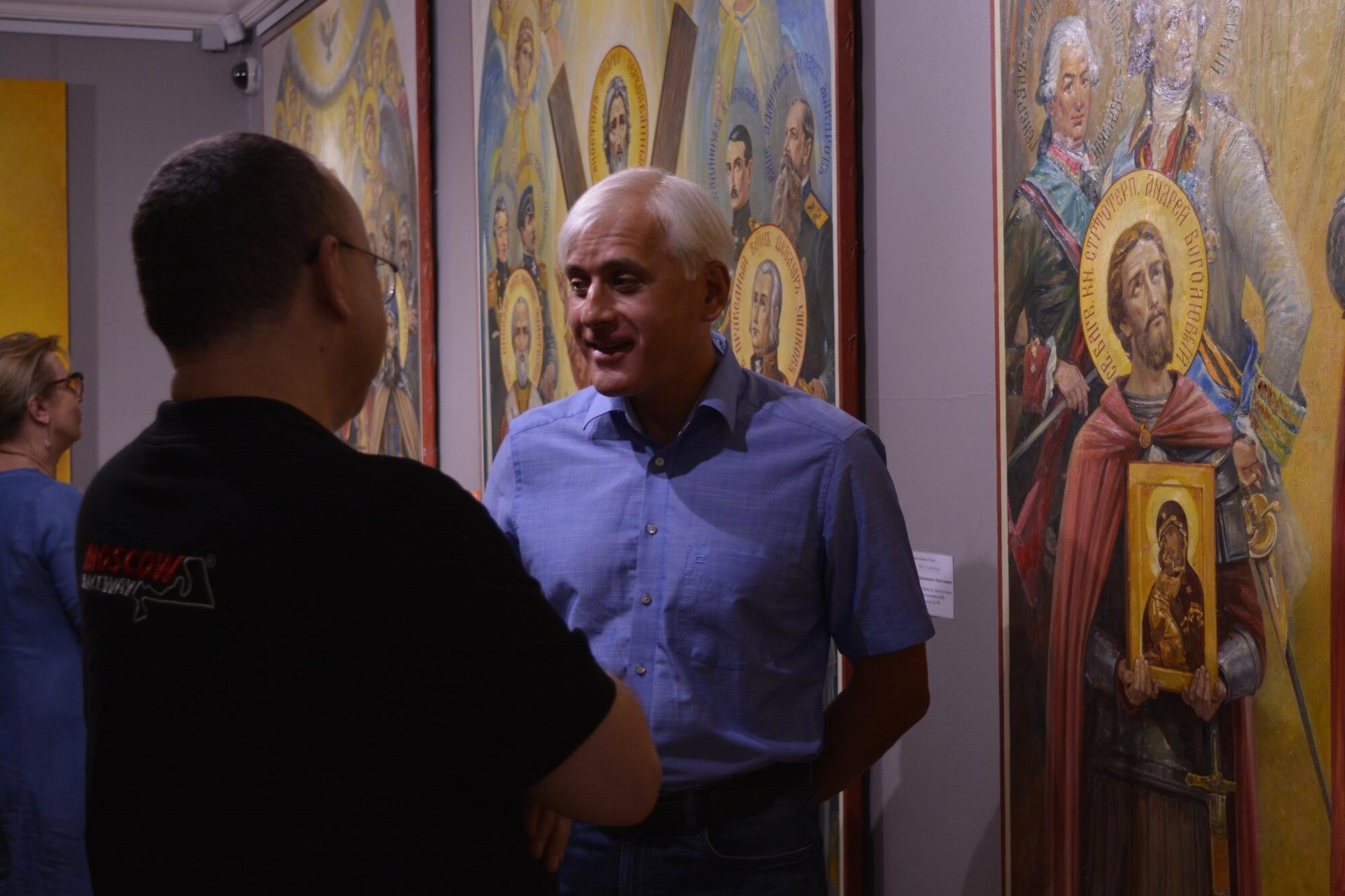 Здесь вы можете посмотреть виртуальную экскурсию с юбилейной выставки народного художника России, члена Российской академии художеств Василия Нестеренко "Наша слава – Русская держава!", приуроченную к 50-летию художника и 35-летию его творческой деятельности, которая проходила в московском Манеже.