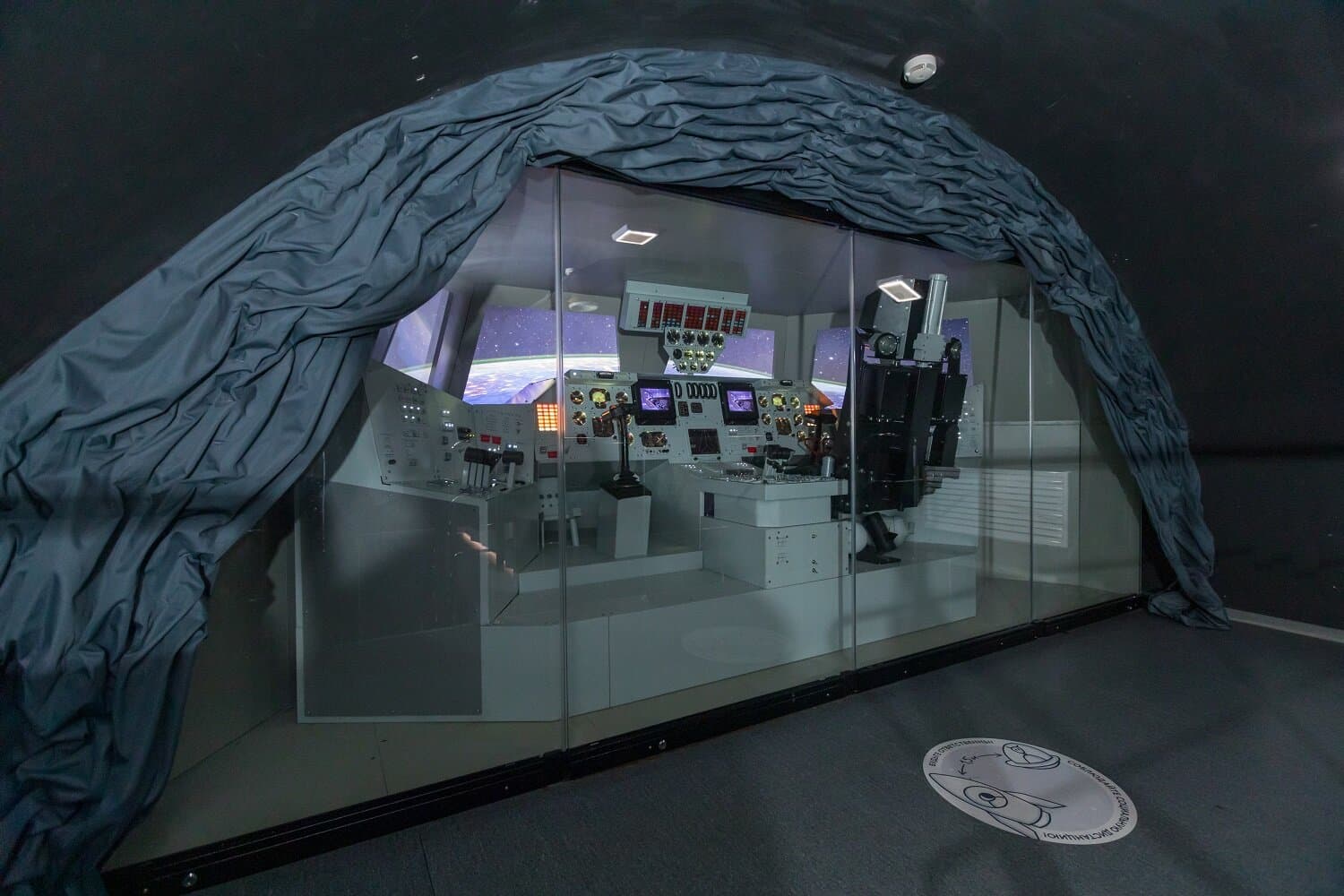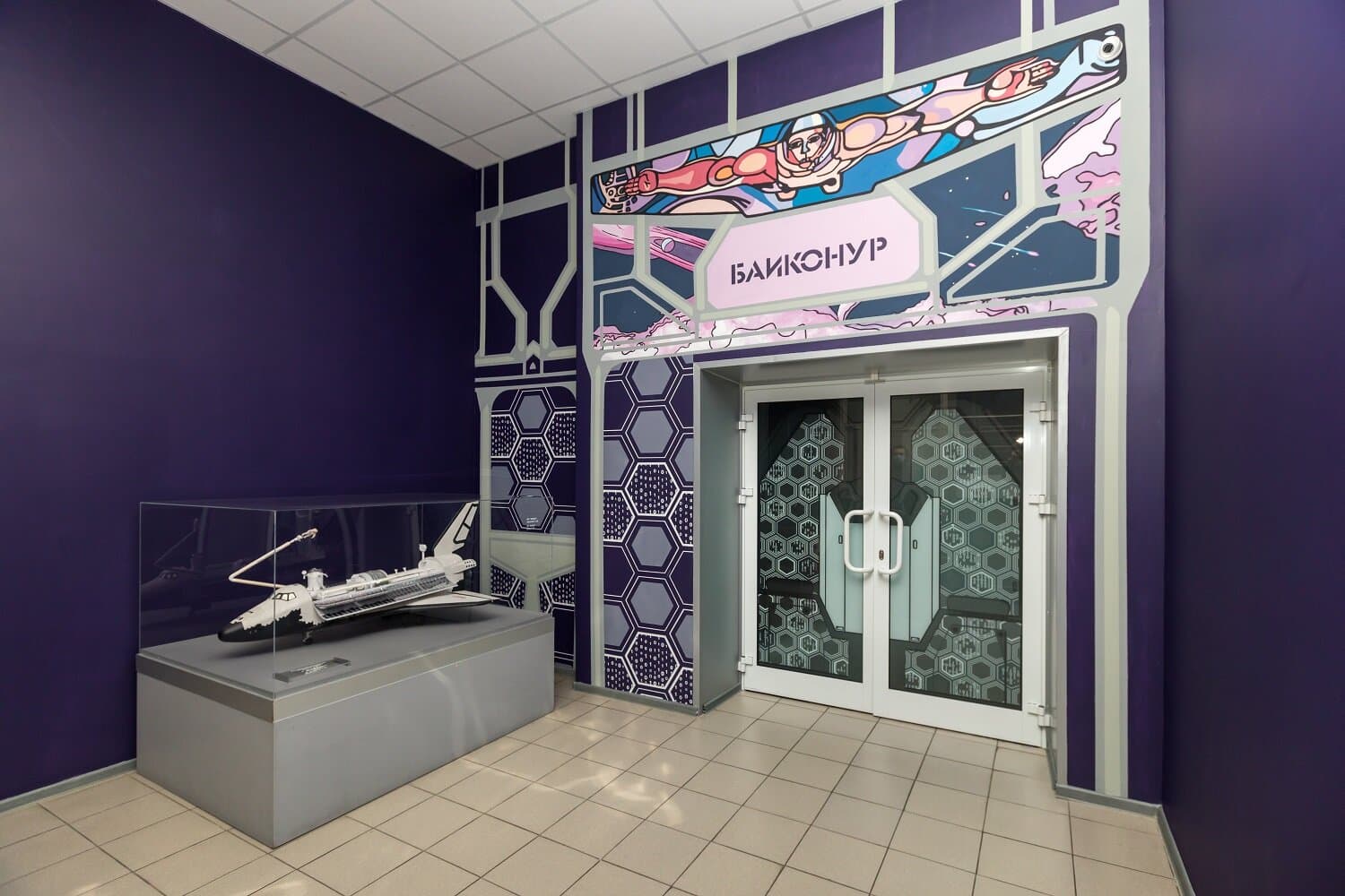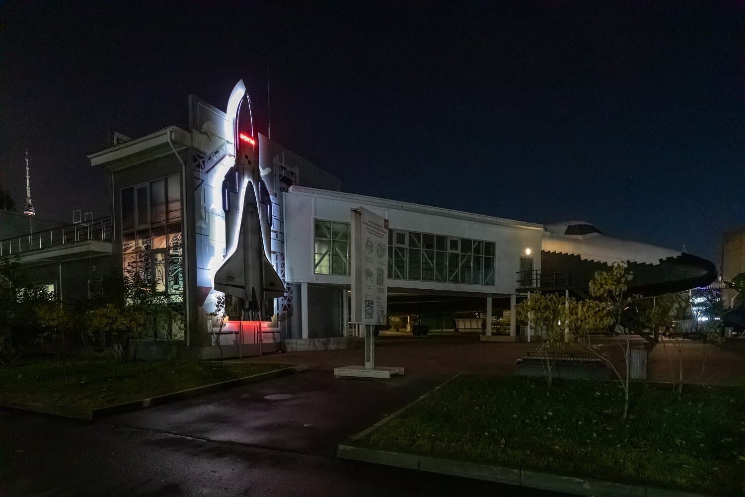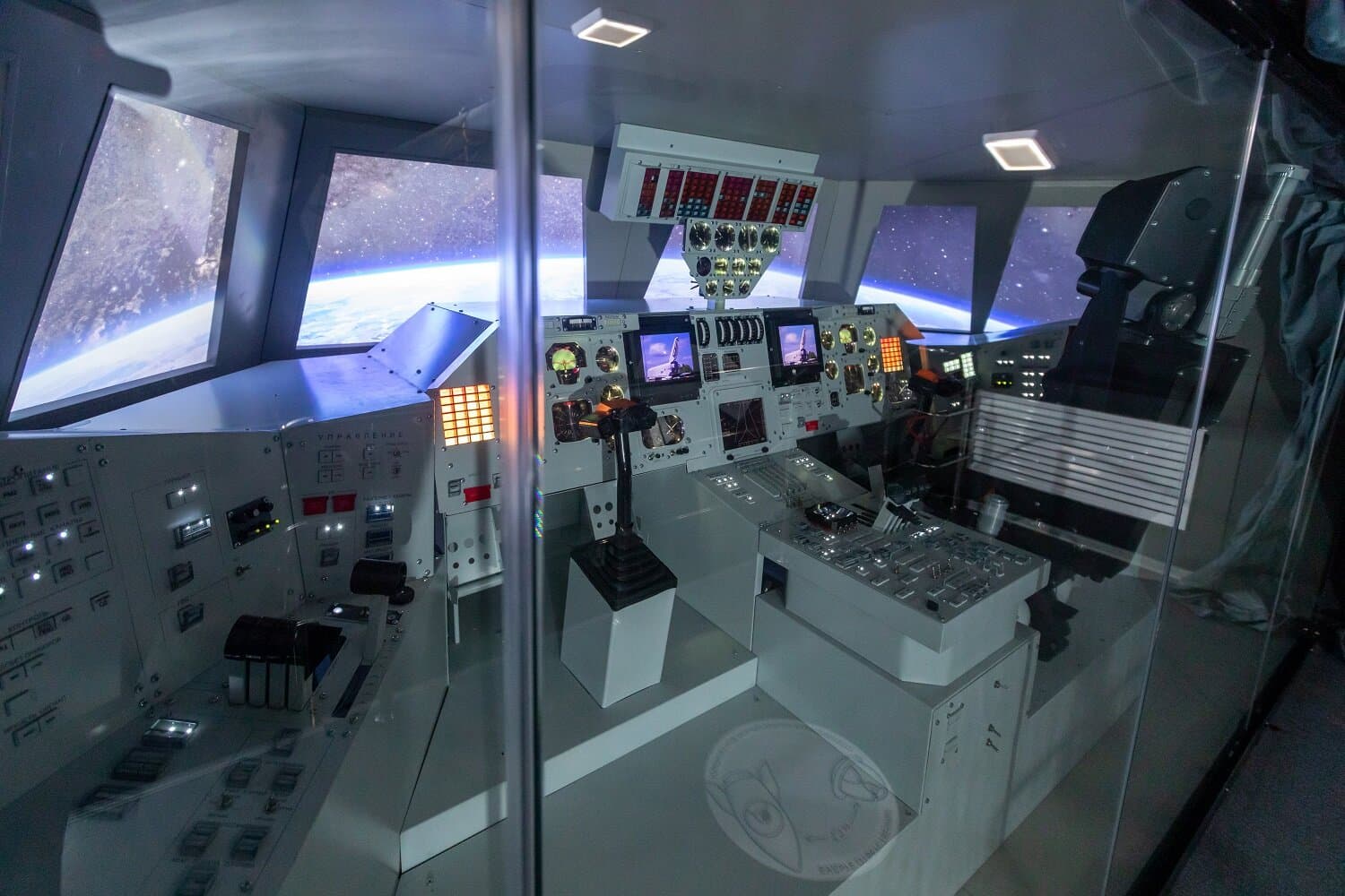 Интерактивный музей внутри макета орбитального корабля «Буран БТС-001» рядом с павильоном №20. В музее можно не только посмотреть фильм о легендарном ракетоплане, но и управлять его посадкой на космодроме Байконур в режиме реального времени.