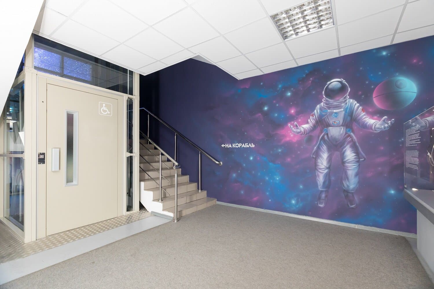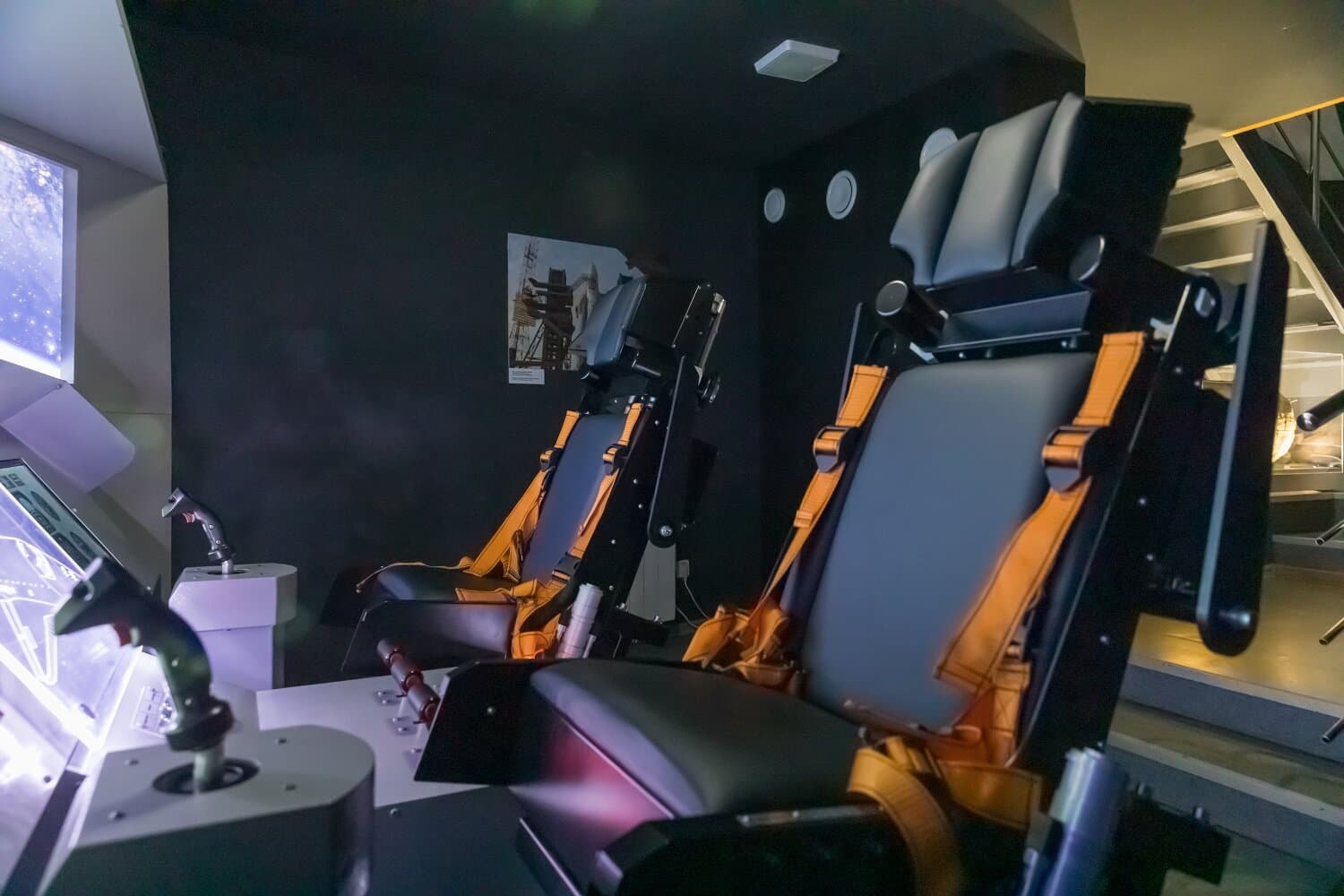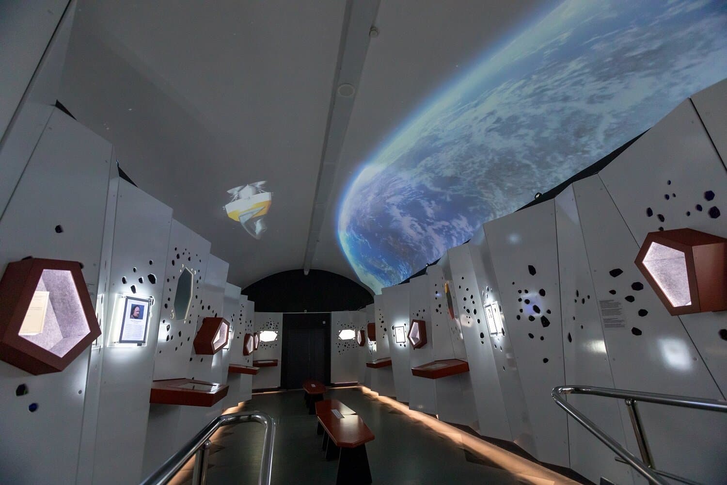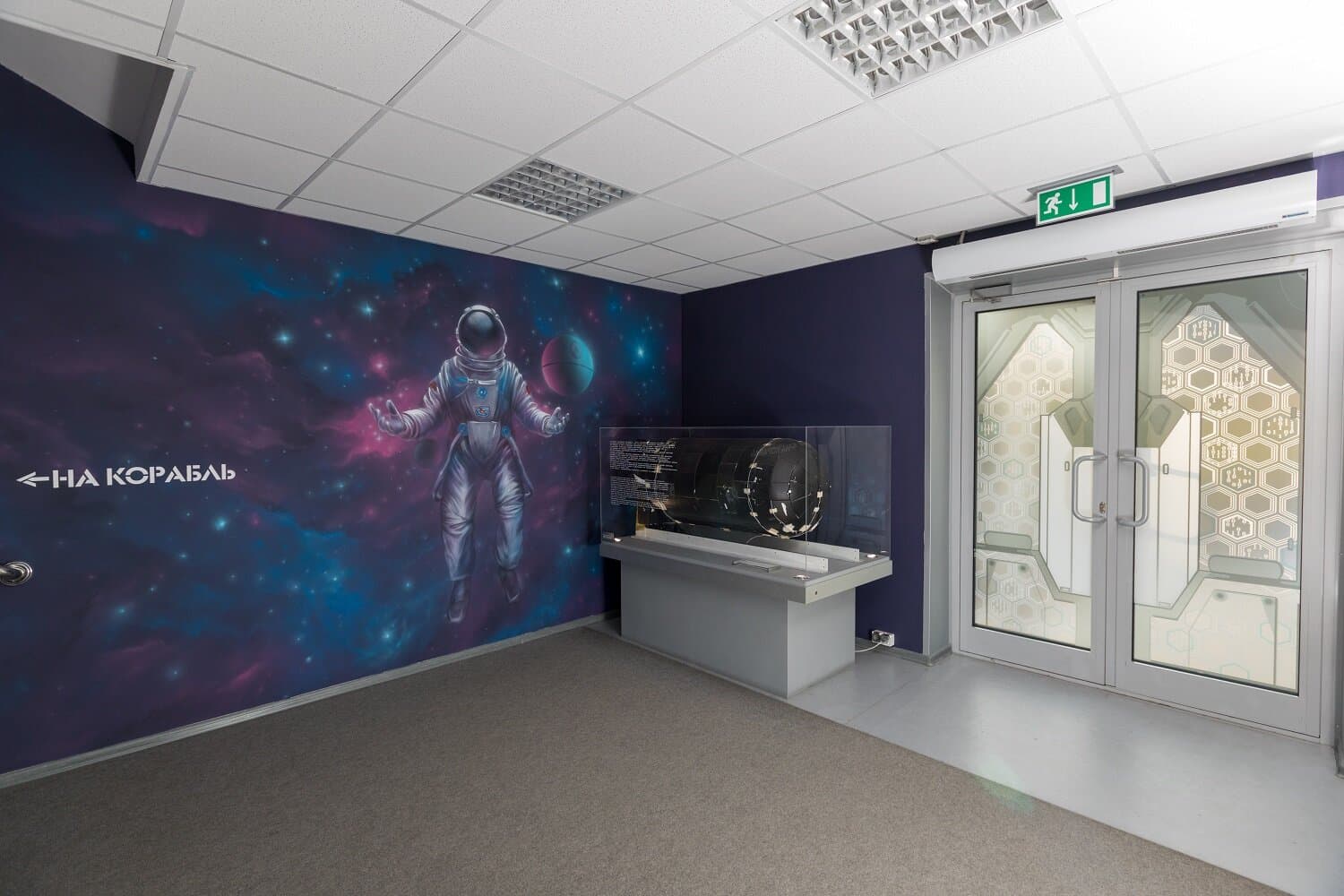 Интерактивный музей внутри макета орбитального корабля «Буран БТС-001» рядом с павильоном №20. В музее можно не только посмотреть фильм о легендарном ракетоплане, но и управлять его посадкой на космодроме Байконур в режиме реального времени.