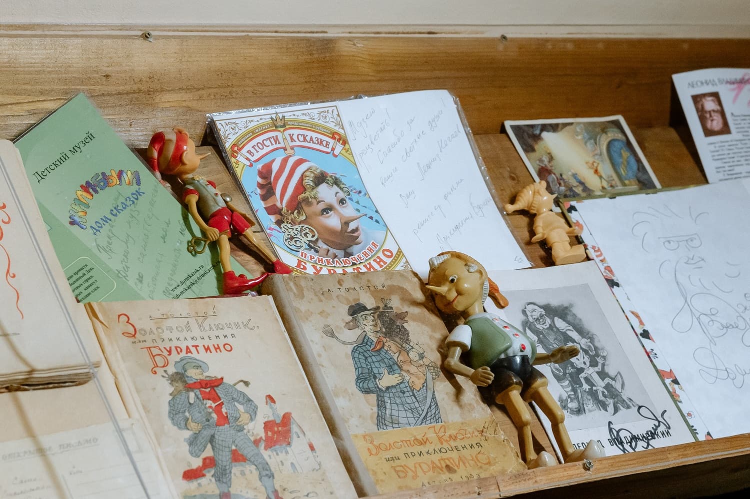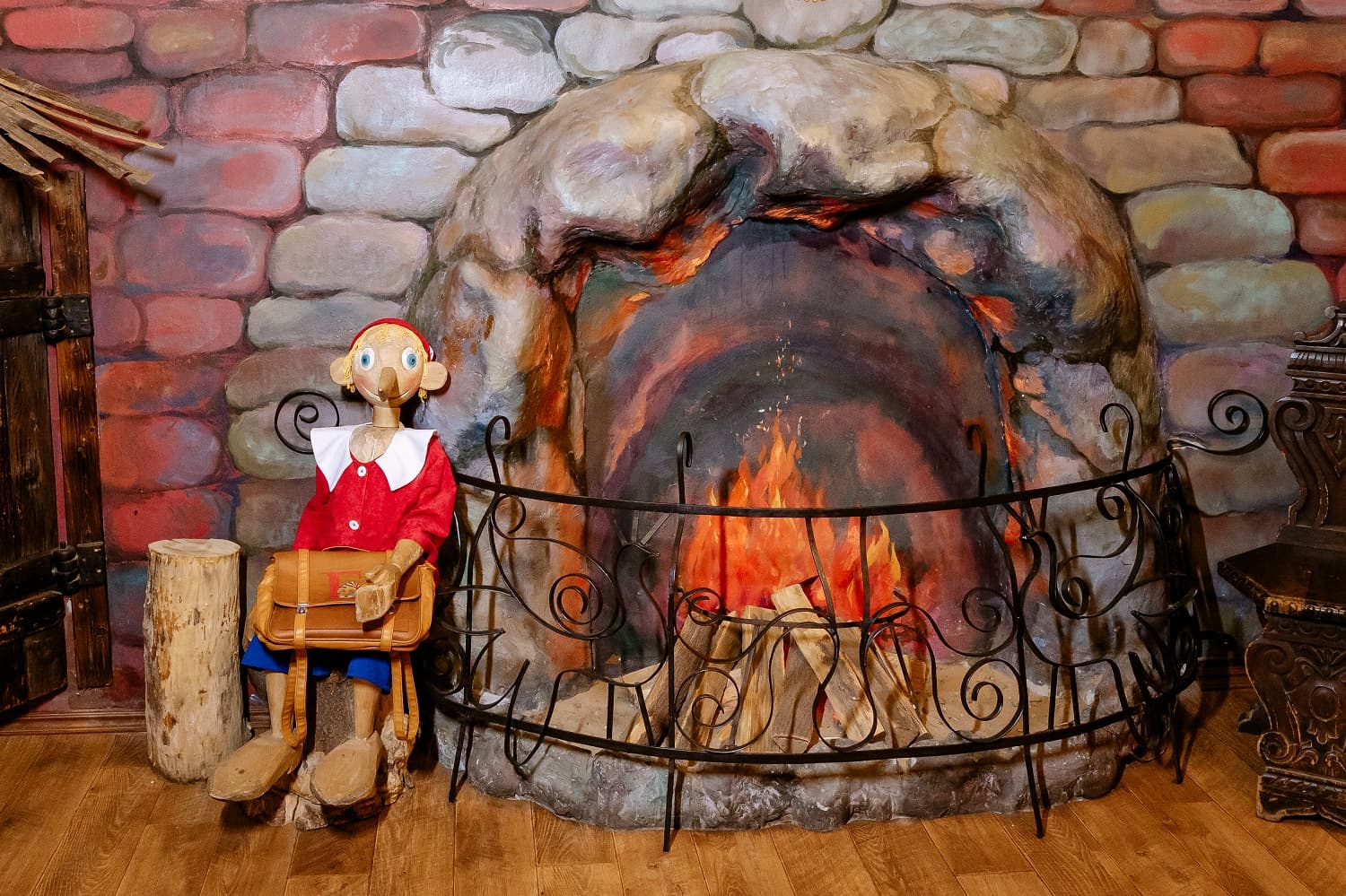 В музее воссозданы и домик Мальвины, и чулан, где сидел Буратино, и каморка Папы Карло, с нарисованным на холсте очагом и потайной дверцей за ним, и конечно же харчевня «Трёх пескарей». Гости смогут отыскать настоящий золотой ключик, который Буратино уронил в пруд, попадут в сказочный театр, где попробуют управлять марионетками.