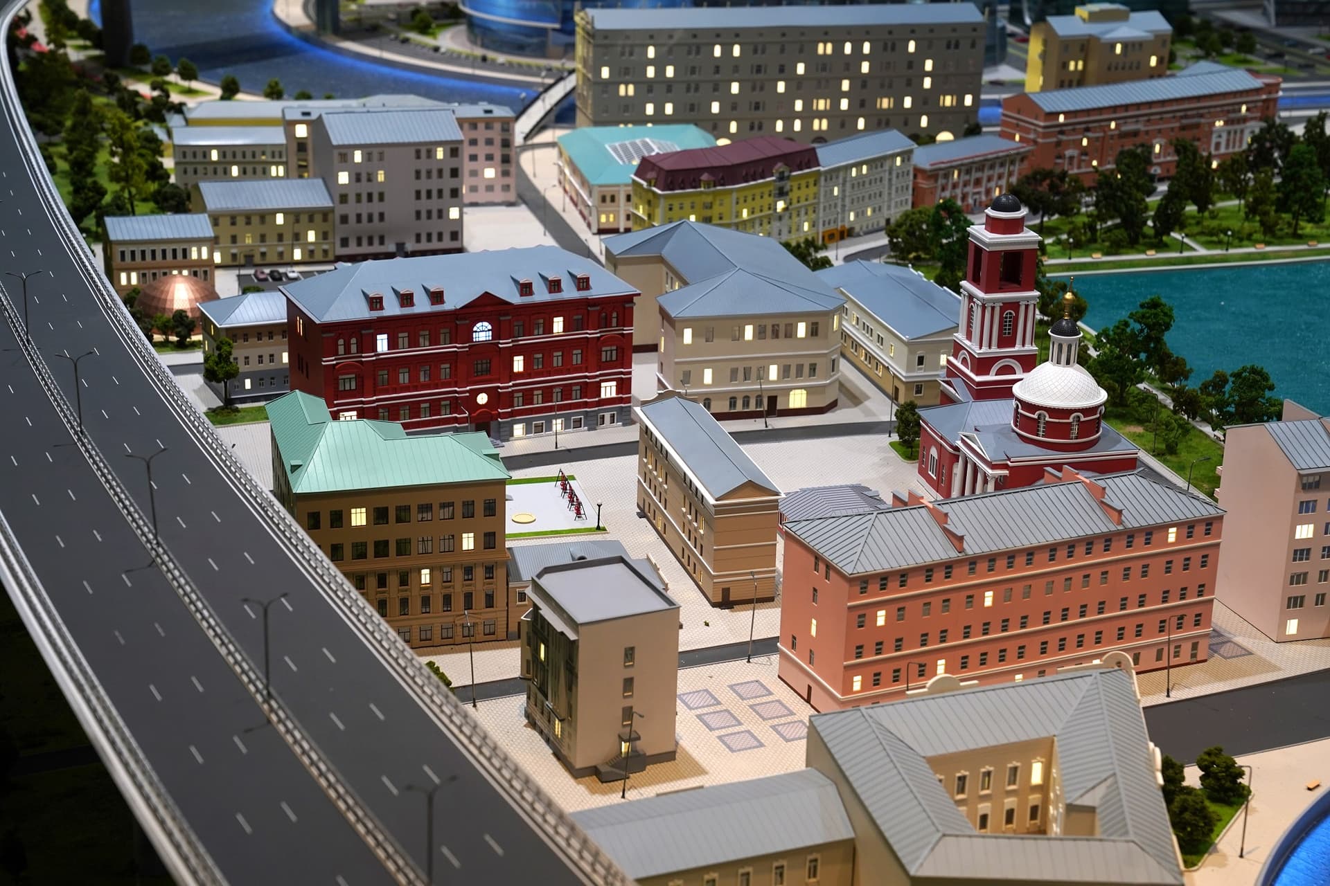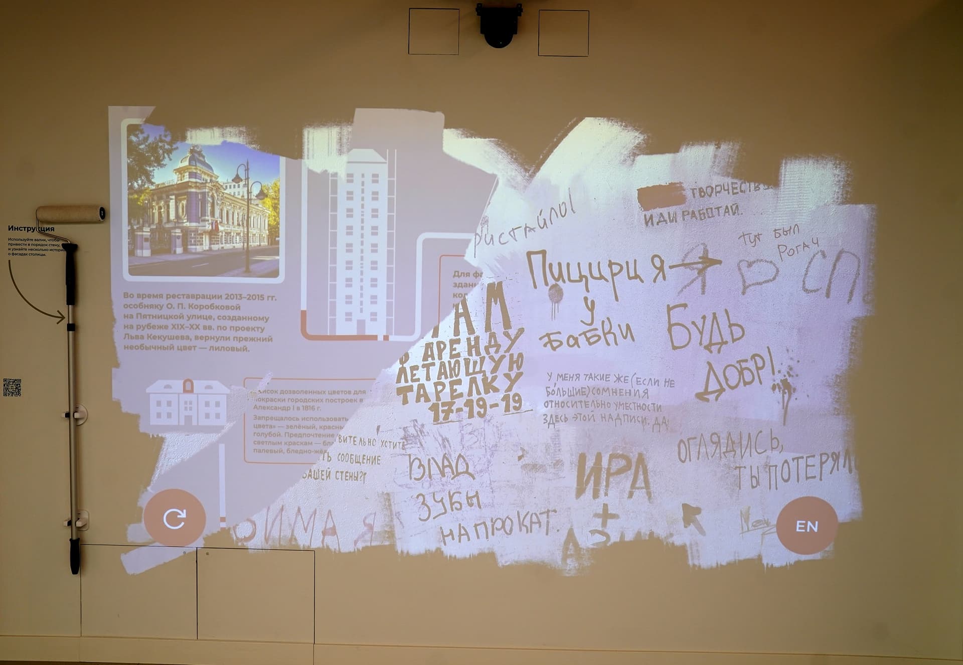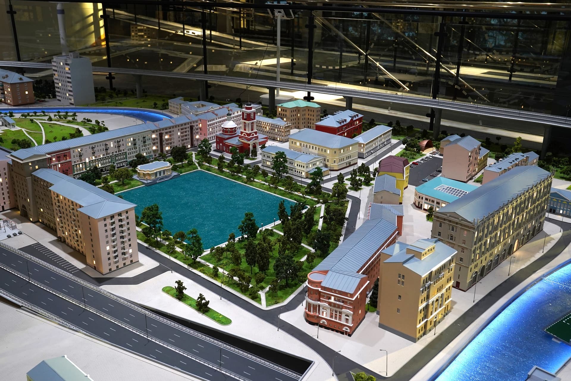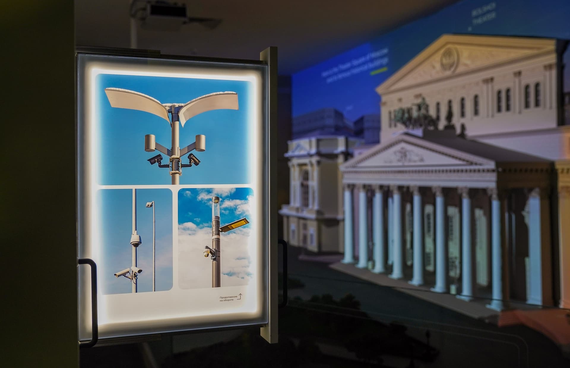 Над ним, на втором этаже, расположен интерактивный макет столицы. Это не точная копия города, а собирательный образ. С помощью технологии дополненной реальности можно увидеть, что происходит в течение дня в известных кварталах городской застройки.