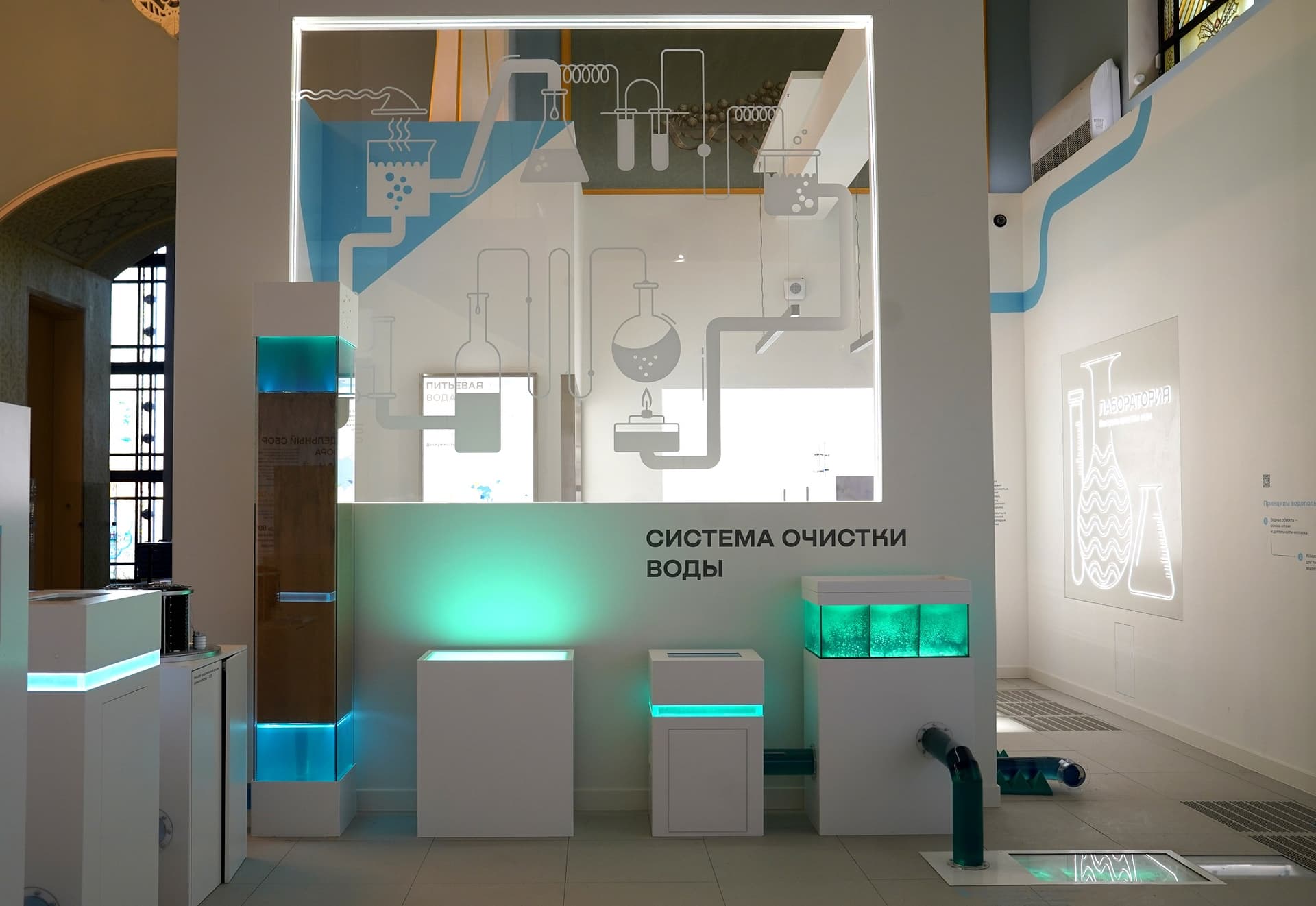 Обязательно стоит заглянуть в «Лабораторию Мосводоканала». Здесь можно изучить образцы московской воды с помощью микроскопа, а на сенсорном экране получить информацию о химическом составе воды в своем районе.