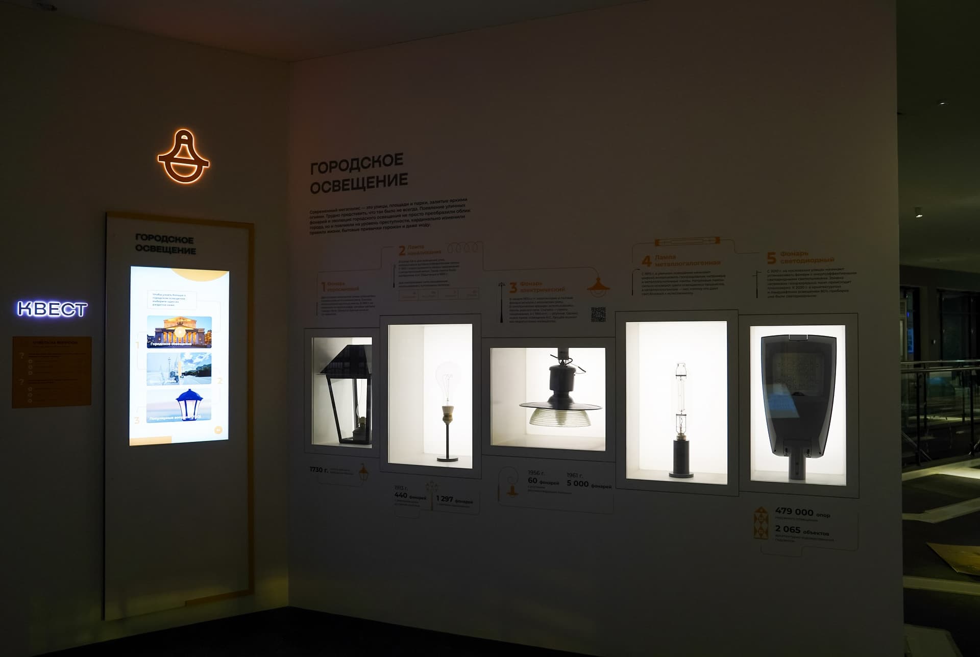 Интерактивная экспозиция Музея городского хозяйства Москвы разместилась на двух этажах на площади почти 2 тысячи квадратных метров. Три пространства – «Управление», «Квартира» и «Город» – содержат 19 тематических зон, для создания которых использовано более 90 оригинальных экспонатов.