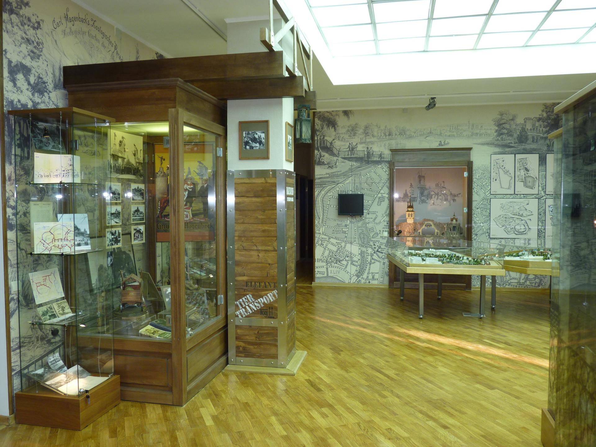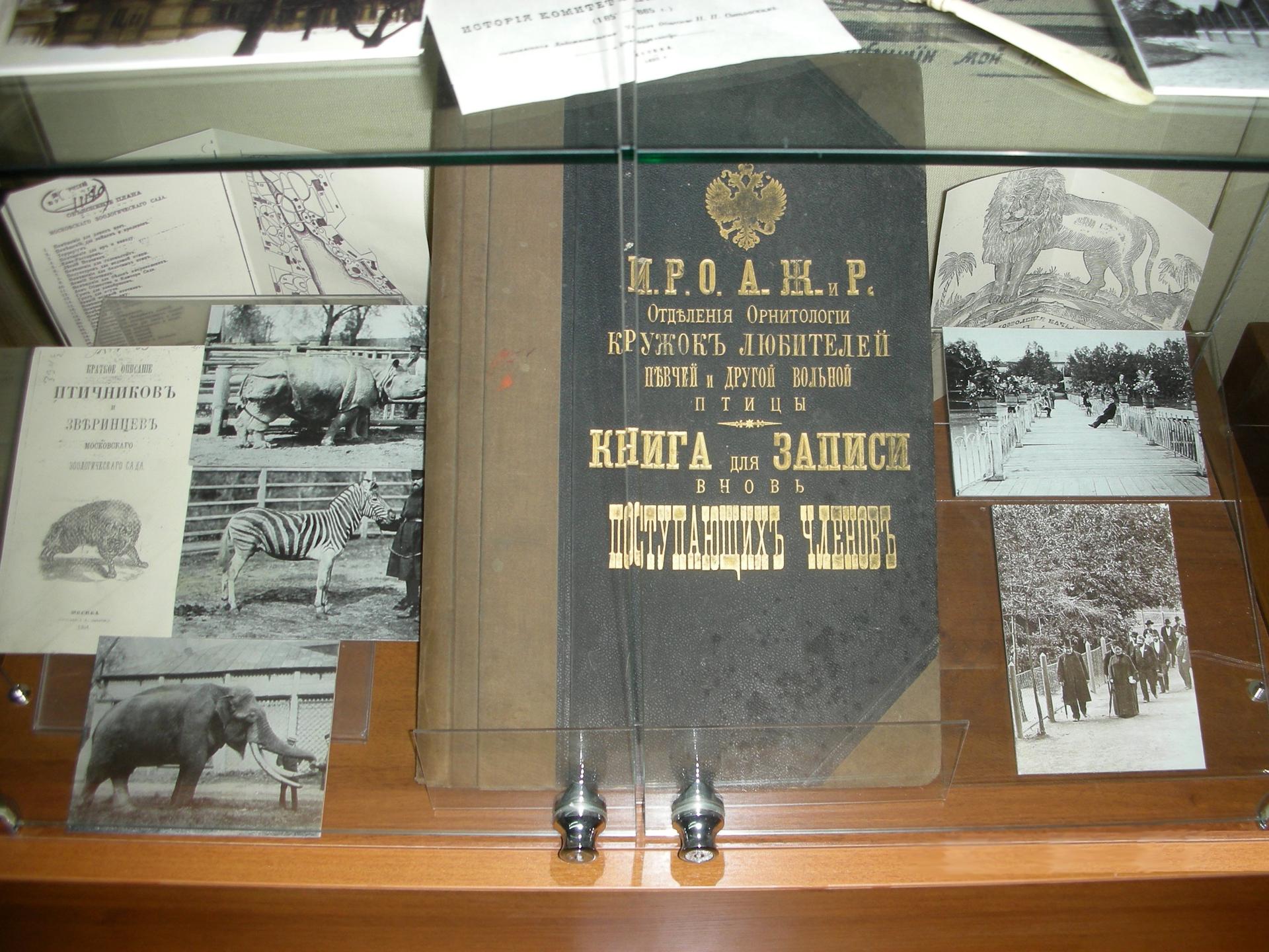 Значительная часть экспозиции посвящена главным вехам истории Московского зоопарка, представлена история и современное состояние научной, просветительской, ветеринарной, зоологической работы, история изменения условий содержания отдельных групп животных. Показаны достижения в размножении редких и проблемных видов животных, первые попытки их реинтродукции в природные биотопы, – эти виды деятельности зоопарков практически скрыты от внимания публики. Придя сюда на экскурсию, вы получите ответы на вопросы: «Какой зоопарк был самым первым?», «Кто придумал содержать животных не в клетках, а в просторных вольерах без решеток?», «Какими инструментами пользуются ветеринары зоопарка?», – и даже – «Как устроена кухня для зверей?».