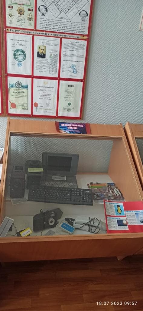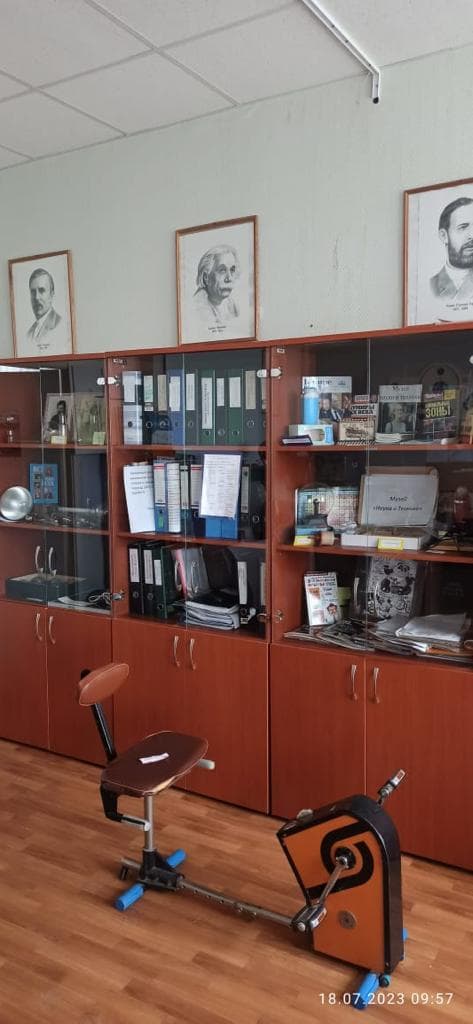 Школьному музею «Наука и техника» 27 лет. Основатель музея Соколов Н.Н. – известный физик и эколог. Направленность музея научно-техническая. В музее 78 экспонатов, составляющих основной клад музея. Все экспонаты имеют свои наименования и расположены в шкафах и витринах как в кабинете, так и в коридорах школы. Особое место в музее занимает сменная экспозиция проектных работ и рисунков детей, которые посещают музей. Портреты великих ученых вывешены на одной стене –русских и зарубежных, дополняют научность музея. Особое внимание уделено портрету М.В. Ломоносова. На экскурсии в нашем музее все экспонаты можно потрогать руками и попробовать свои силы в скорости набора текста на печатной машине.
