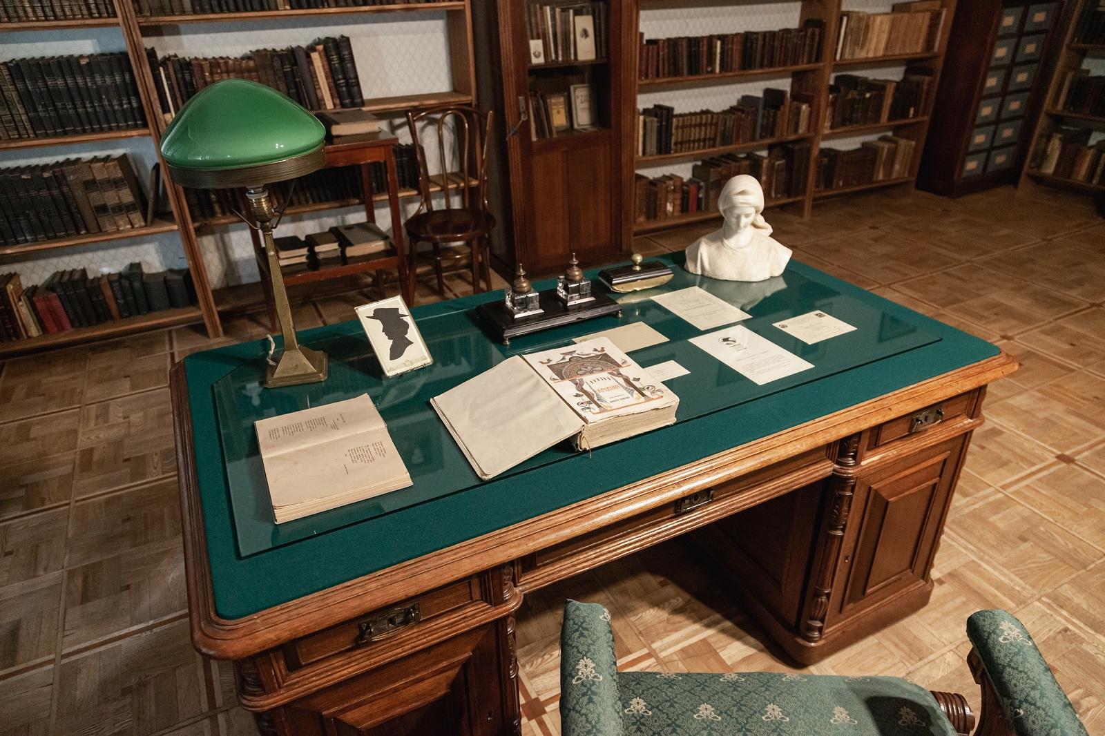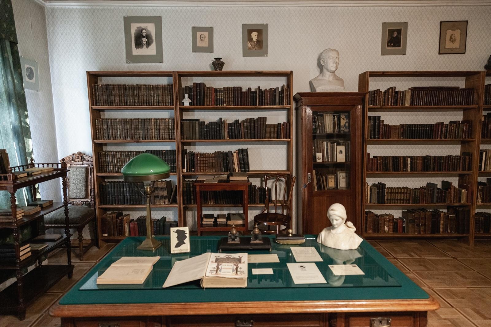 Мемориальный кабинет В.Я. Брюсова содержит предметы, принадлежавшие поэту: его книжное собрание, дубовый рабочий стол, часы, мебельный комплект с обивкой 1910-х гг., а также художественные произведения, преподнесенные в дар поэту представителями изобразительного искусства: Ф. Рербергом, К. Феофилактовым, А. Койранским, Н. Сапуновым, Н. Гончаровой.