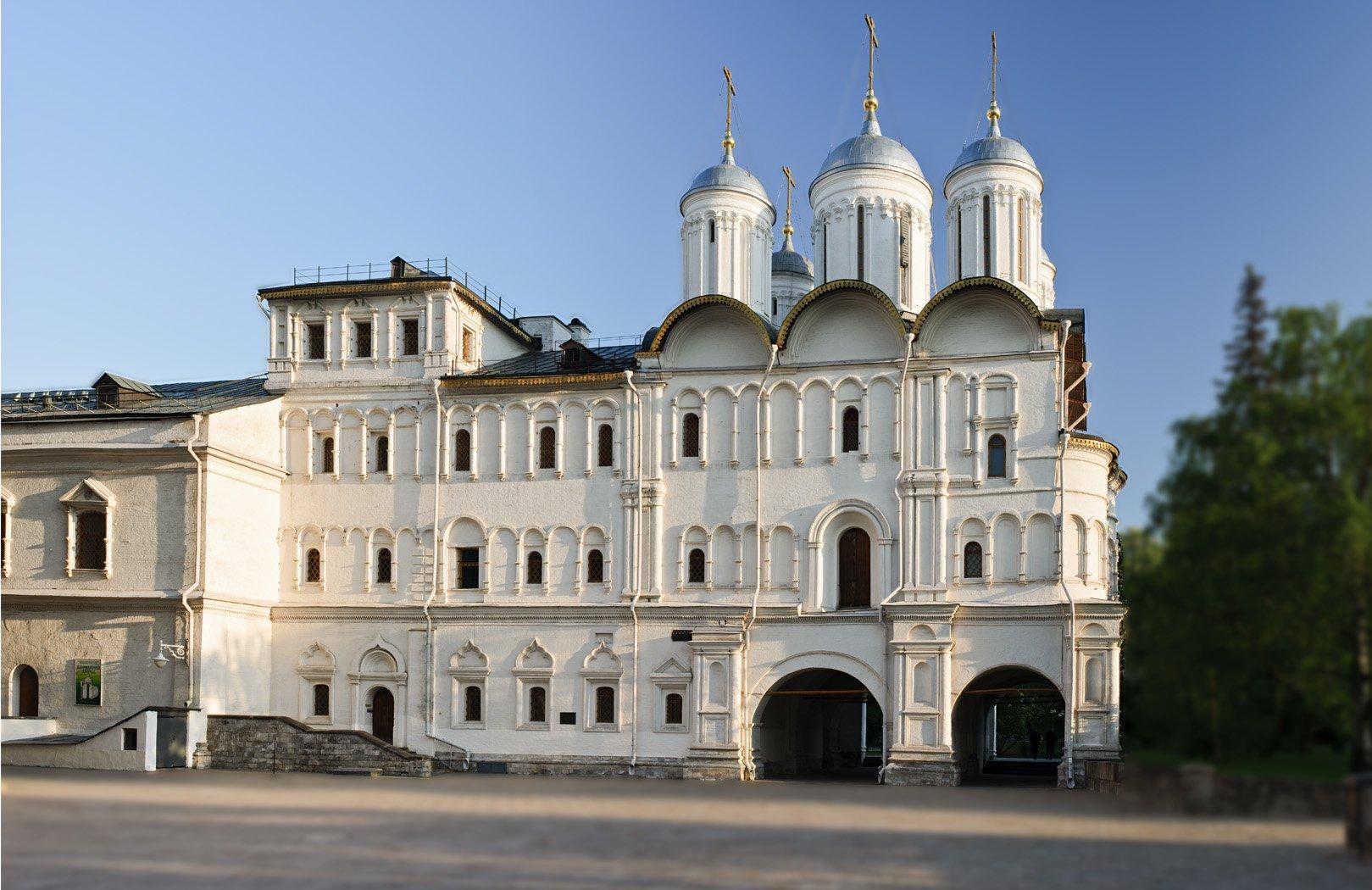 В 1450 году митрополит Иона возвел на этом месте каменную церковь Ризположения и первую каменную палату в Кремле. Во время московского пожара 1473 года двор выгорел, и митрополиту Геронтию пришлось отстраивать его заново. В 1484–1485 годах псковские мастера возвели для него новую церковь Ризположения, которая сохраняется и сегодня. Все последующие митрополиты, а с конца XVI века патриархи, обустраивали свои владения в Кремле, возводили деревянные и каменные сооружения.