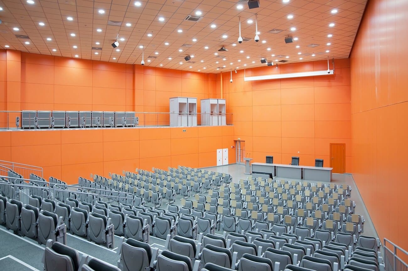 Павильон также располагает следующими конгрессными возможностями: большой трансформируемый зал на 720 мест, VIP-зал площадью 180 кв. м с сопутствующей переговорной и кейтеринговой зоной, 8 конференционных залов вместимостью от 50 до 180 человек театральной рассадкой.