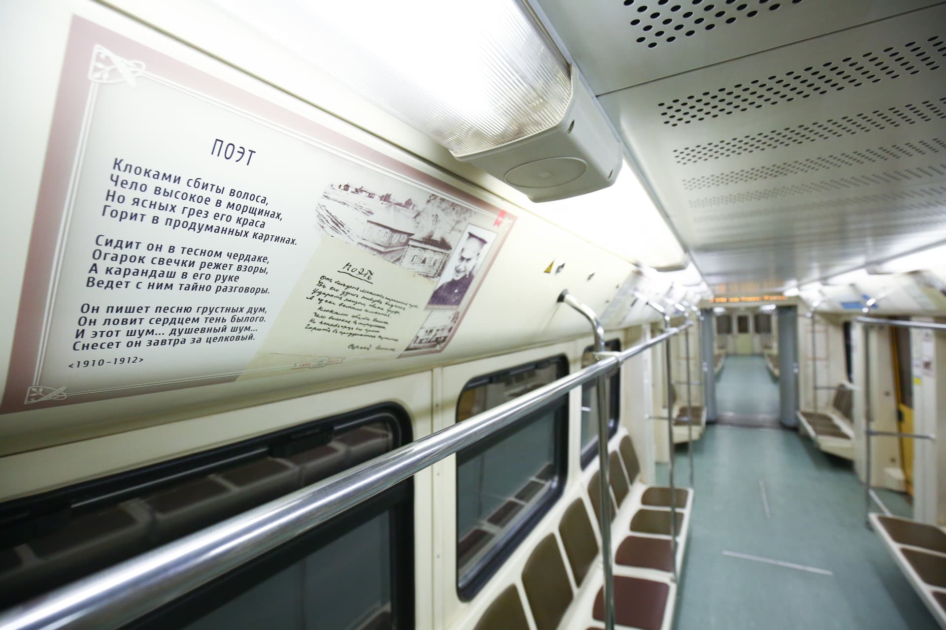 В качестве подвижного состава используются вагоны 81-740.1/741.1 «Русич». С 1 декабря 2011 года поезд начал регулярное движение по Арбатско-Покровской линии, в него был вцеплен дополнительный вагон без стикеров со стихами в салоне. 10 марта 2012 года был возвращён на Филёвскую линию. Поезд призван знакомить пассажиров метро с поэтами разных стран мира. в салонах вагонов вместо рекламы размещены стикеры со стихами поэтов разных стран. Сложилась традиция регулярно обновлять экспозицию в вагонах поезда. Первая подборка стихов была посвящена творчеству пяти знаменитых чилийских поэтов. Стихотворения были приведены на двух языках — русском и испанском. Также пассажиры Московского метрополитена смогли познакомиться с творческим наследием выдающихся поэтов Италии, русского советского поэта-футуриста Владимира Маяковского, классиков русской поэзии Михаила Лермонтова и Сергея Есенина, а также двух нобелевских лауреатов - Габриэля Гарсия Маркеса и Октавио Паса.