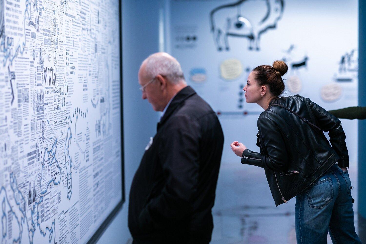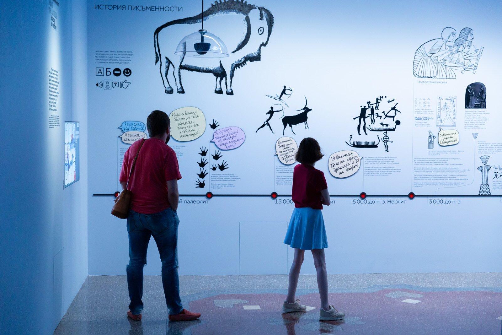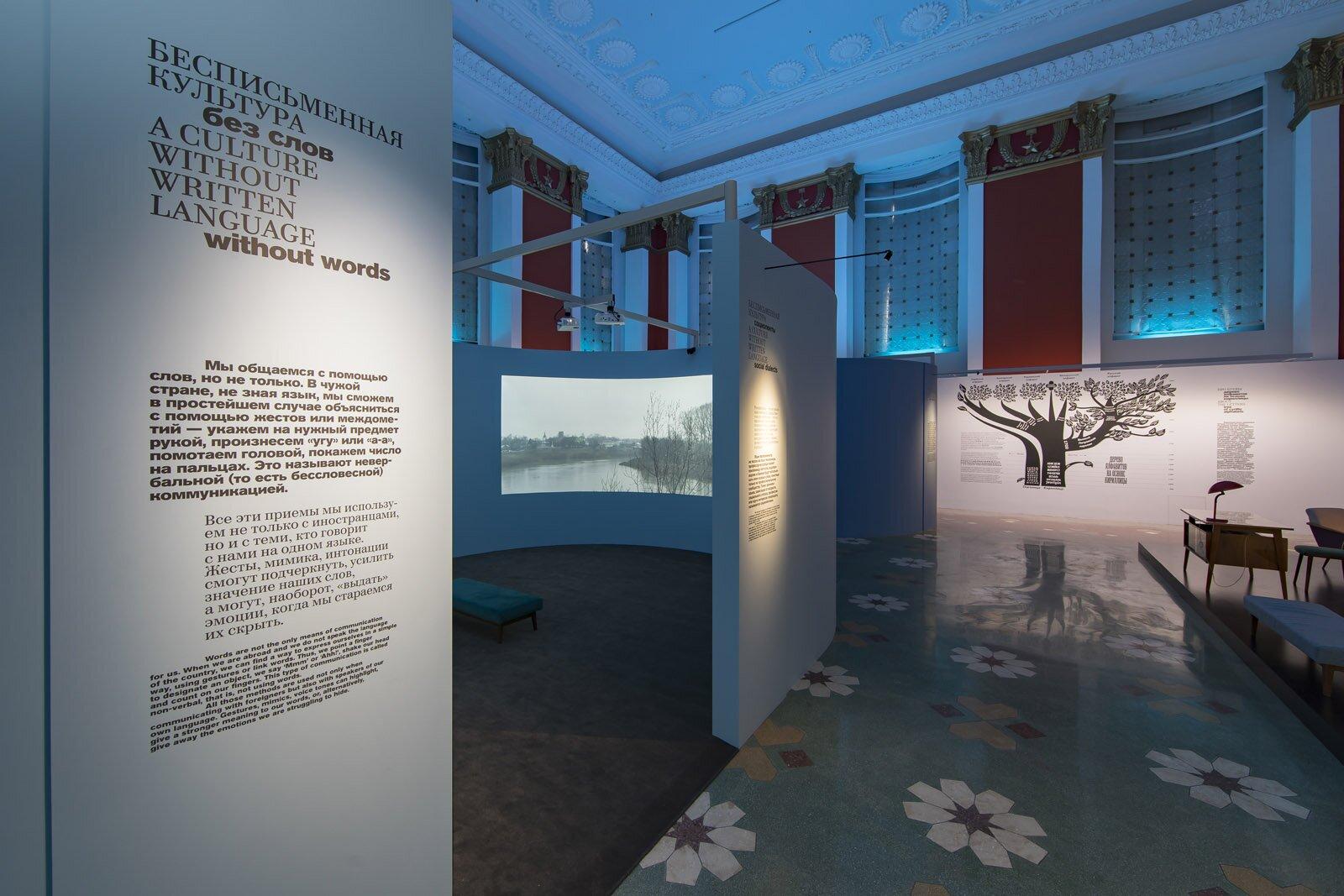 Первая часть экспозиции рассказывает о возникновении и развитии письменности от древности до наших дней, вторая — о том, как тексты связаны с духовной, культурной и политической жизнью общества.