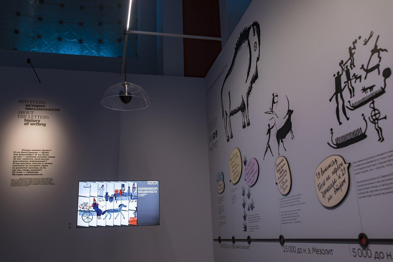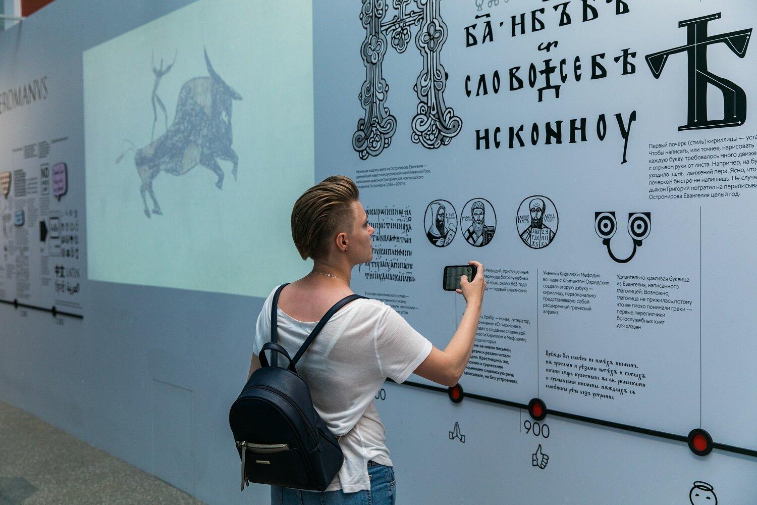 Экспозиция Центра «Слово» посвящена истории, настоящему и будущему кириллицы. Посетители смогут увидеть, как развивалась славянская письменность c IX века до наших дней и как она становилась частью духовной, светской и повседневной культуры России.