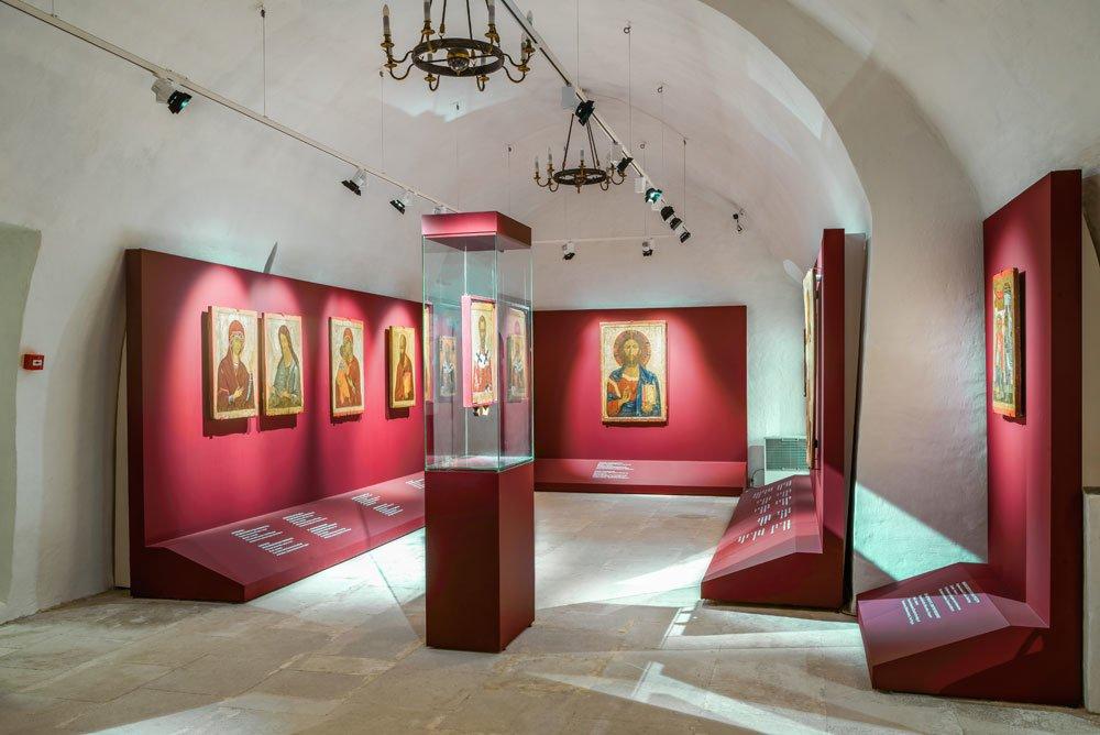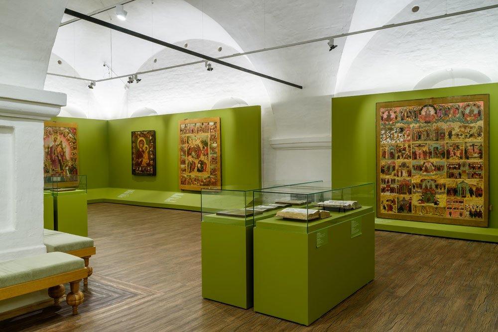 Экспозиция музея развернута в комплексе церкви Михаила Архангела, построенной в конце XVII века по заказу первой жены Петра I Евдокии Лопухиной. Периодические выставки, посвященные церковному искусству разных эпох, проходят в Настоятельском корпусе монастыря.