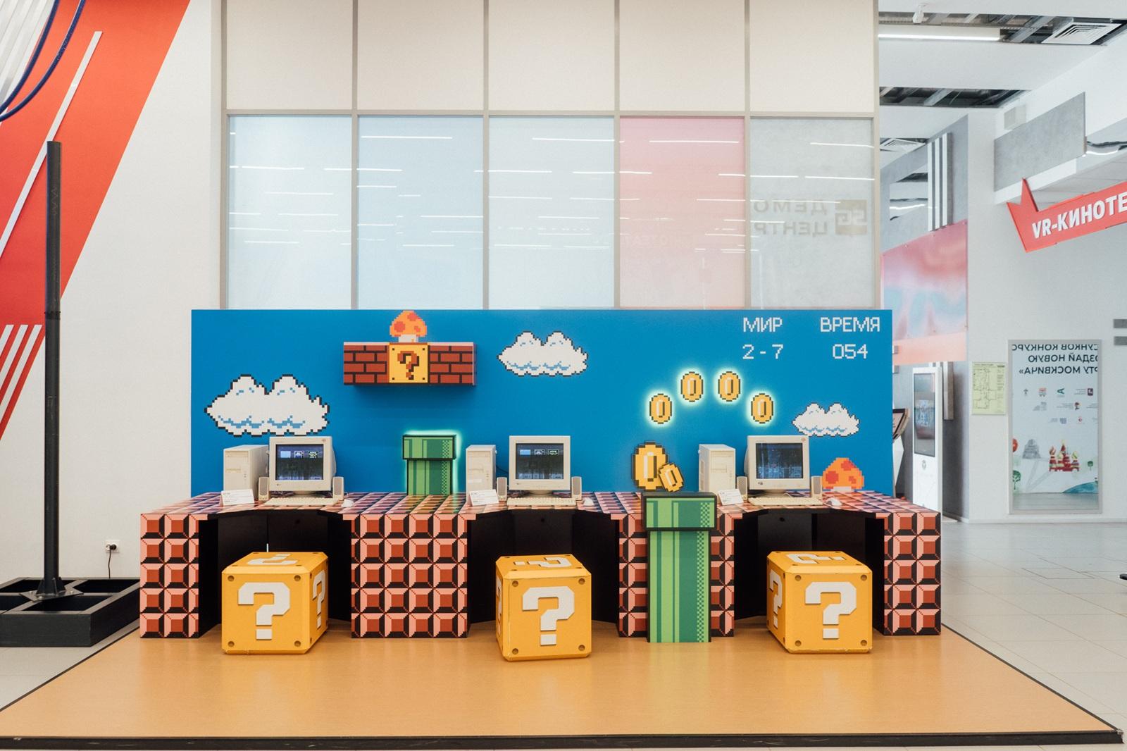 В зоне 5G есть игровая c ретро-компьютерами. Здесь вы после экскурсии можете окунуться в захватывающий мир развлечений и игр 90-ых. Попробуйте свои силы, в таких играх как Супер-Марио, Диггер, Змейка, Арканоид, Пэкман.