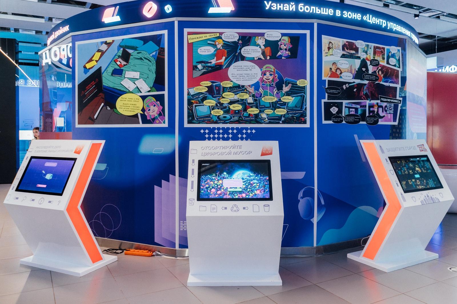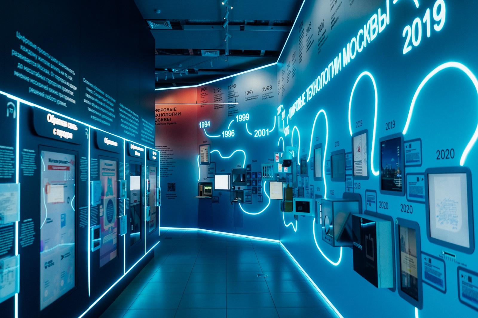 В год 30-летия Рунета – в 2024 году – была обновлена выставка «Цифровые технологии». Это таймлайн с интерактивными экспонатами, которые погружают посетителей в историю развития Рунета и изменений московских сервисов в формате было/стало.