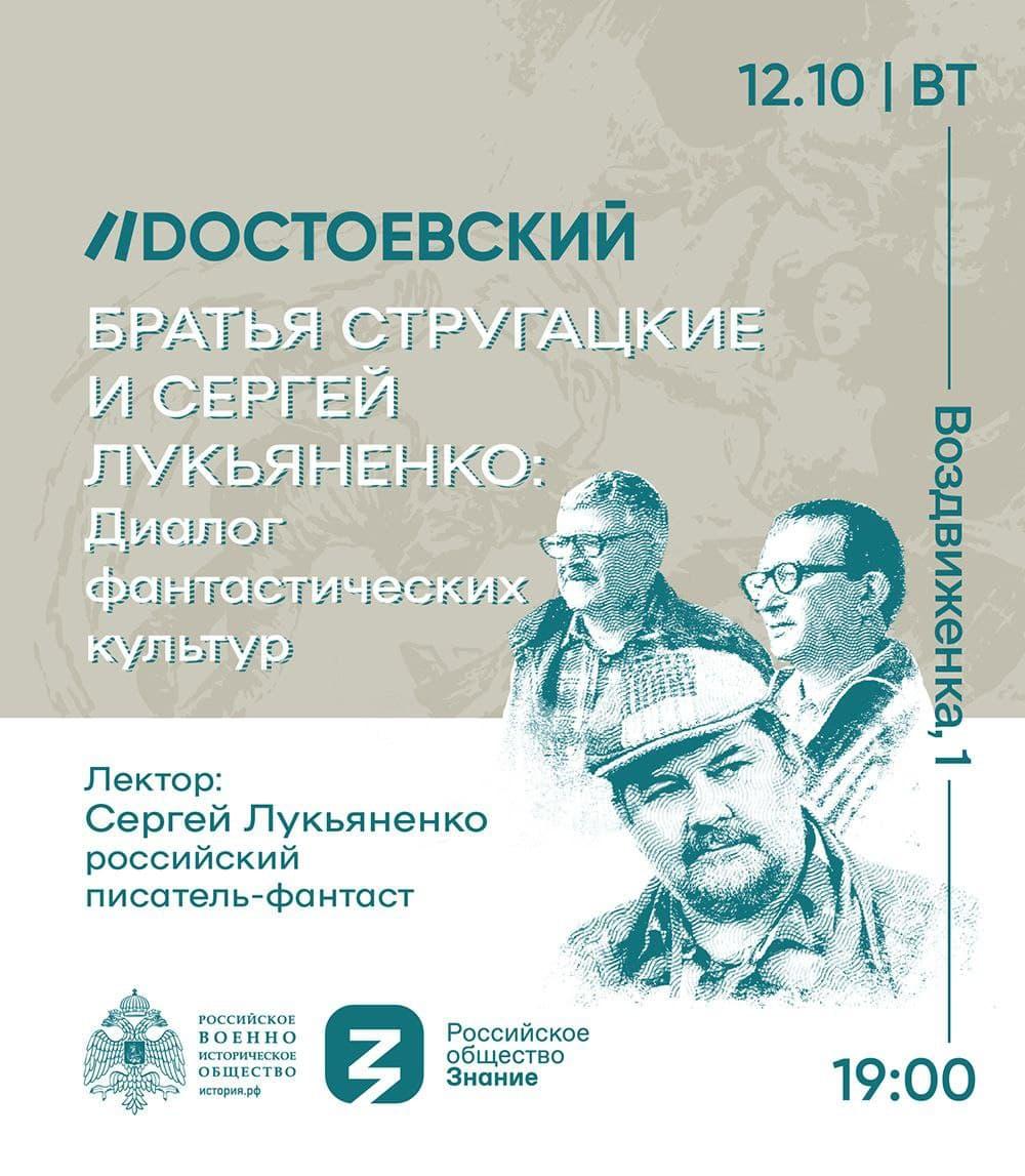 12 октября в 19:00 в Книжном клубе «Достоевский» расскажем о смене исторических эпох в зеркале фантастики и вместе с Сергеем Лукьяненко ответим на вопрос – почему на постсоветском пространстве стали популярны новые жанры «альтернативной истории», «фантастики Пути» или «жëсткого действия»? 30 лет назад, 12 октября 1991 года, ушёл самый знаменитый в мире советский фантаст - «А. и Б. Стругацкий». После смерти Аркадия Борис Натанович Стругацкий продолжал творческую жизнь, но однажды, прочитав «Дозоры», назвал популярнейшим современным писателем-фантастом России Сергея Лукьяненко. Сергей Васильевич расскажет о том, как происходила эволюция политических и творческих взглядов братьев Стругацких, во многом характерная для всех писателей социалистического блока, о своём взгляде на творчество братьев Стругацких и о том, что объединяет литературные миры писателей – темы социальной, но не технической фантастики, путей развития человечества и поиска себя.