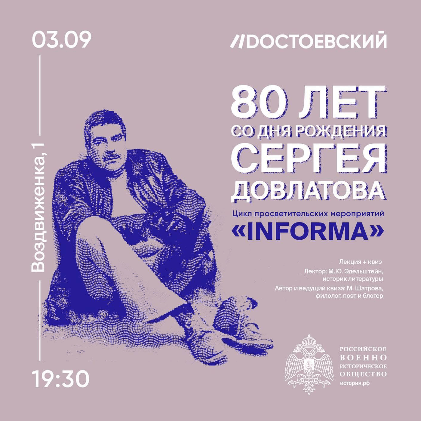 3 сентября в 19:30 в Книжном клубе «Достоевский» поговорим о Сергее Довлатове и его эпохе, о причинах беспрецедентной посмертной популярности автора и о том, как устроен "довлатовский" анекдот. Мы попытаемся понять, почему в прозе Сергея Донатовича нет и не может быть сильных характеров и почему его любимые герои – от Иосифа Бродского до Эрнста Буша – всегда аутсайдеры. Узнаем, что общего между Довлатовым и Борисом Гребенщиковым и почему все дружеские отношения автора заканчивались разрывами.