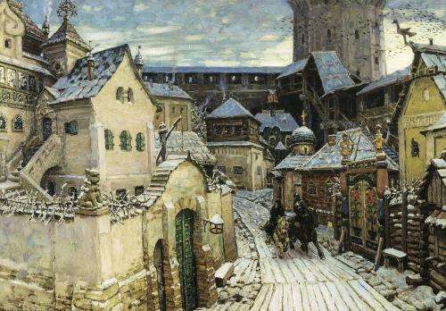 Картина А. Васнецова. Гонцы. Ранним утром в Кремле. Начало XVII века.