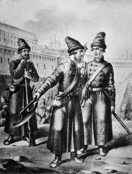 Стрельцы московских полков в 1672 г. Литография. Первая половина XIX в.