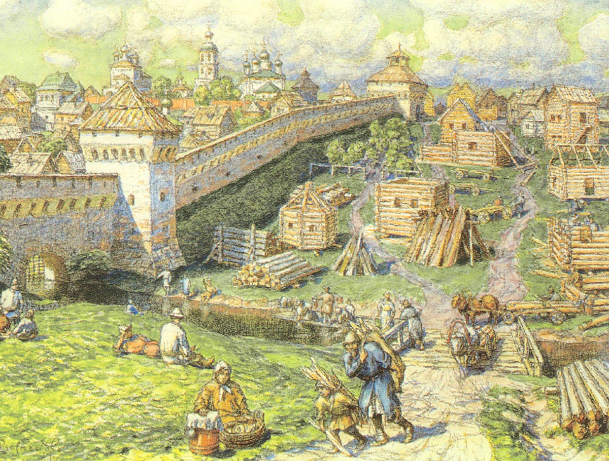 Рисунок А. Васнецова. На рассвете у Воскресенского моста. Конец 17 века